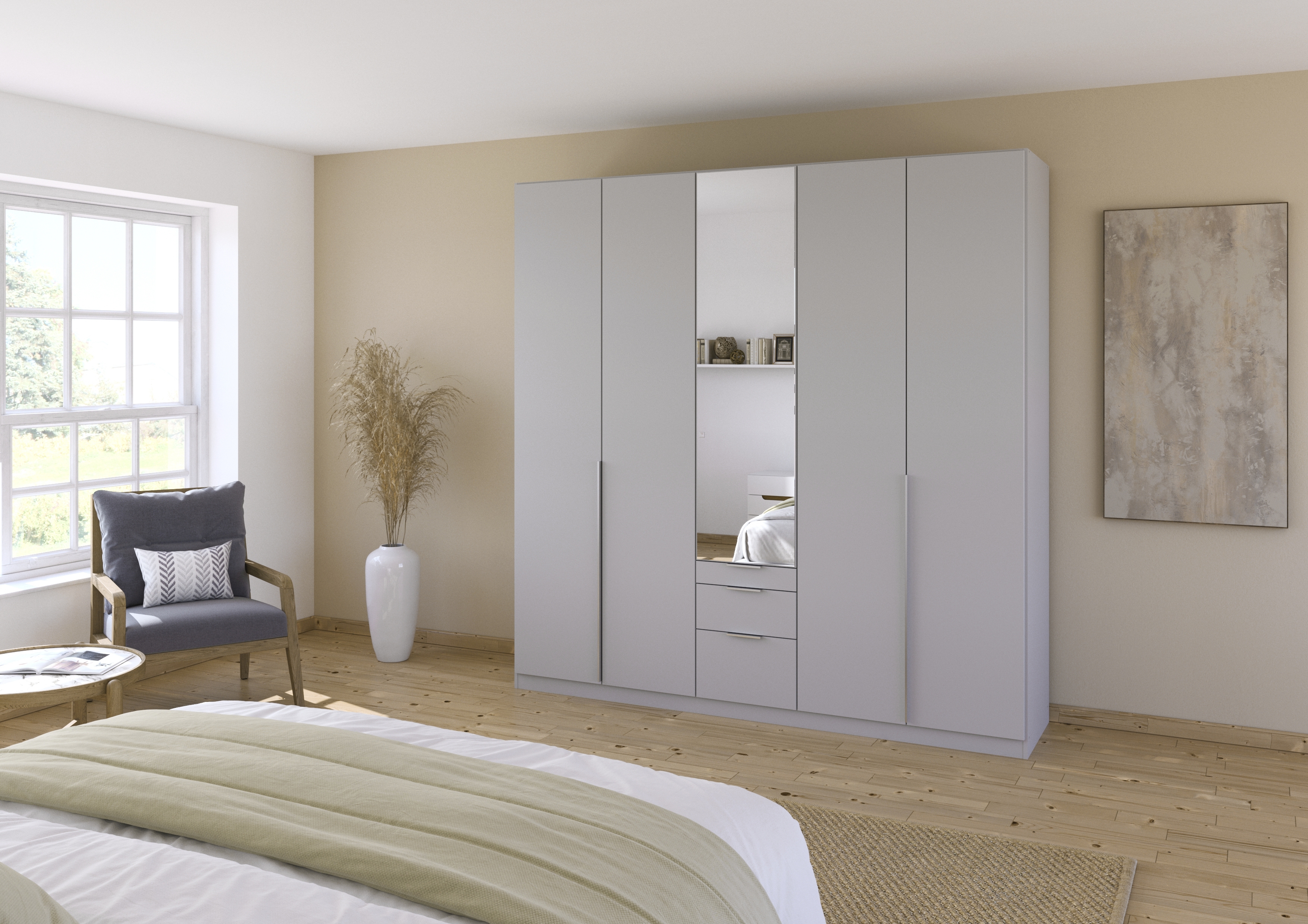 5 Türen, davon mittig 1 Tür mit Spiegel