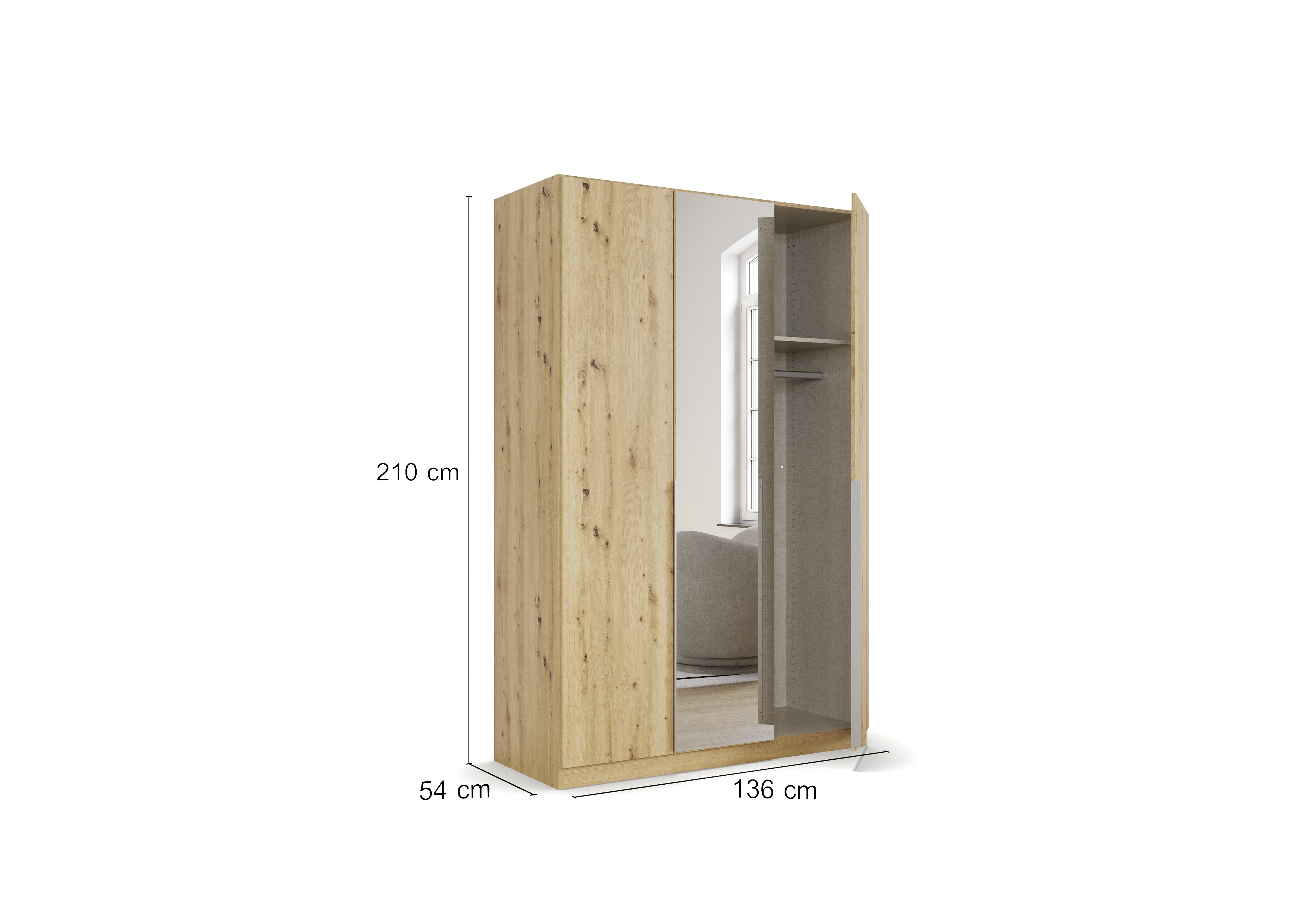 | Kleiderschrank | 136 | 210 | 54 |