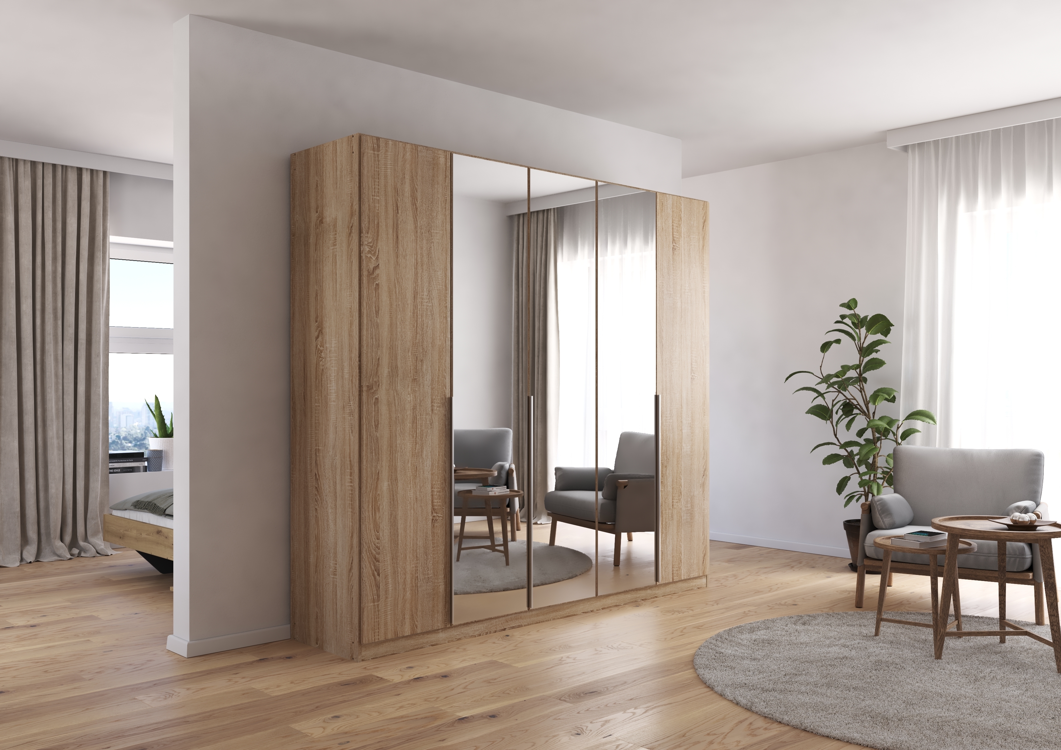 5 Türen, davon mittig 3 Türen mit Spiegel