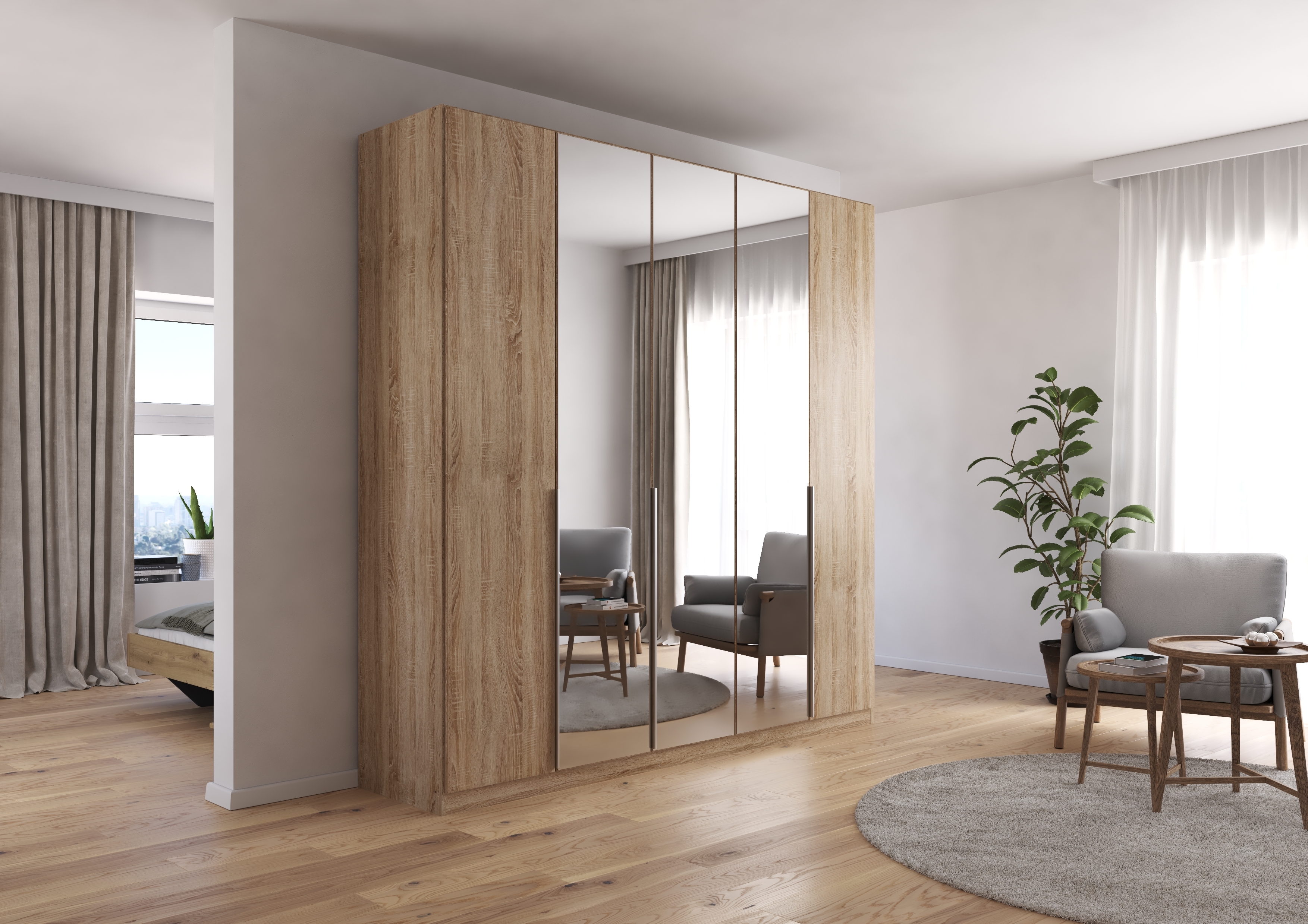 5 Türen, davon mittig 3 Türen mit Spiegel