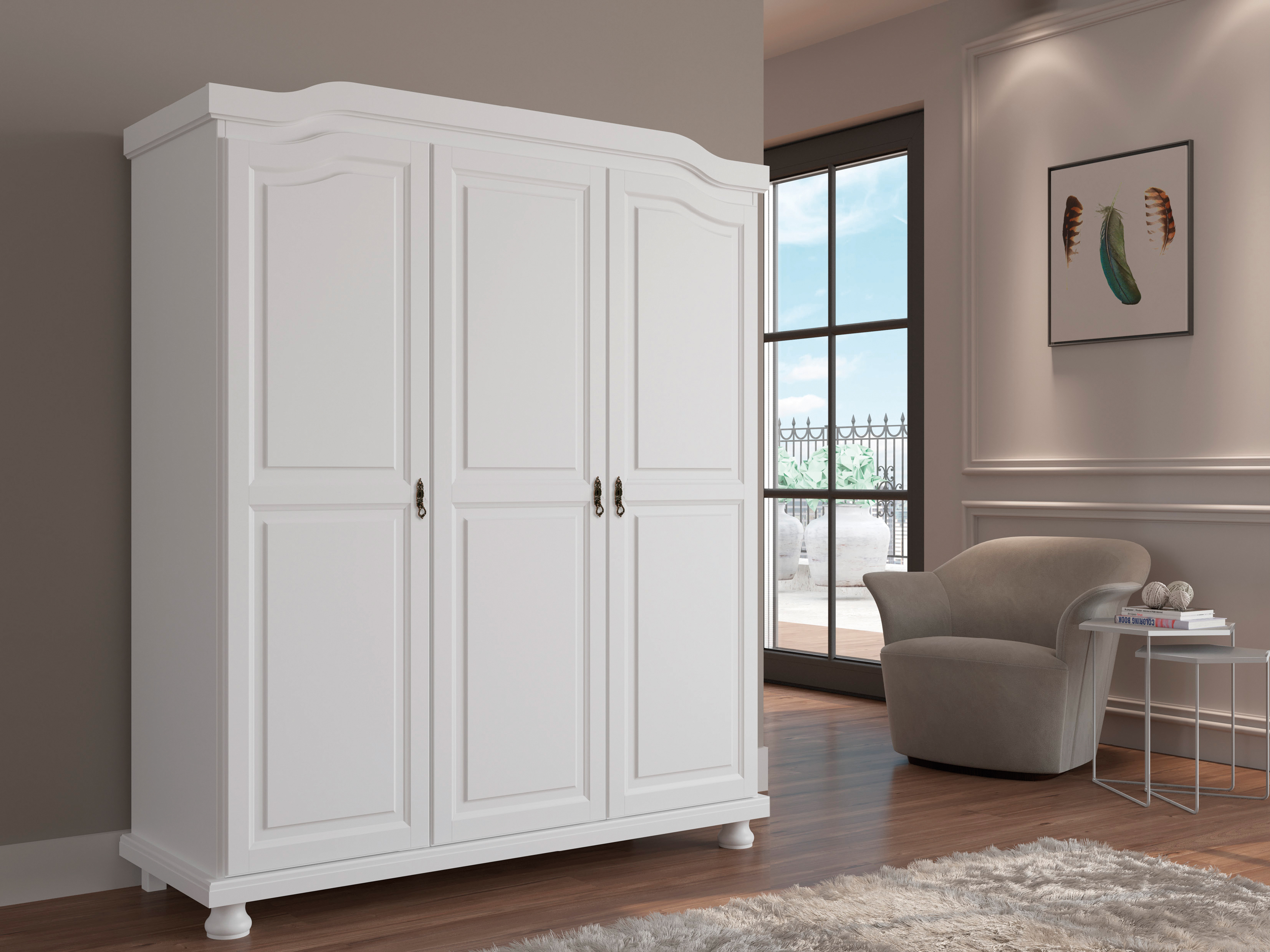 Der Kleiderschrank vermittelt ein heimisches Gefühl und passt dadurch in jedes Schlaf- und Wohnzimmer.