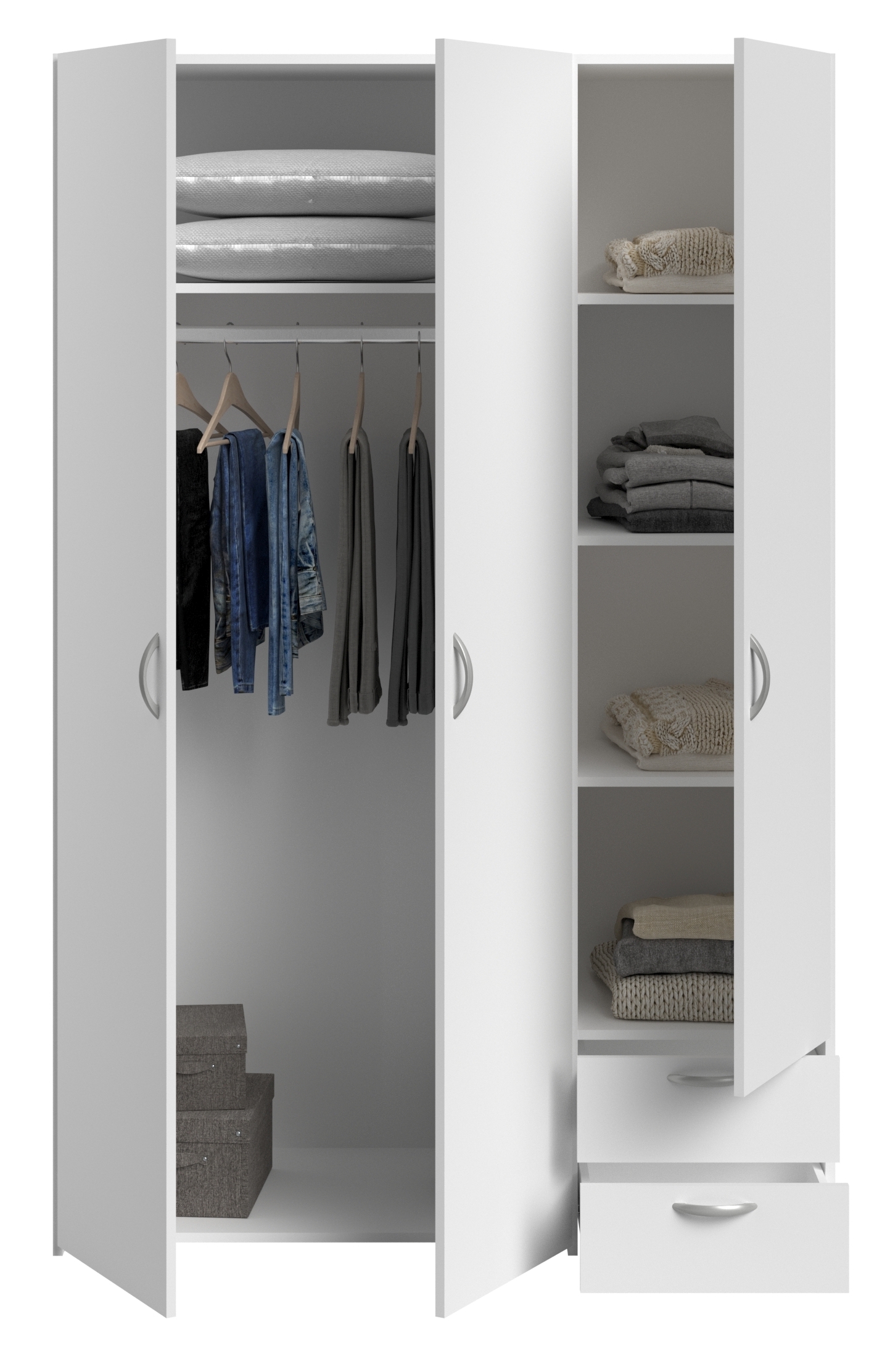 links: 2 große Türen, dahinter 1 Fach und 1 Kleiderstange