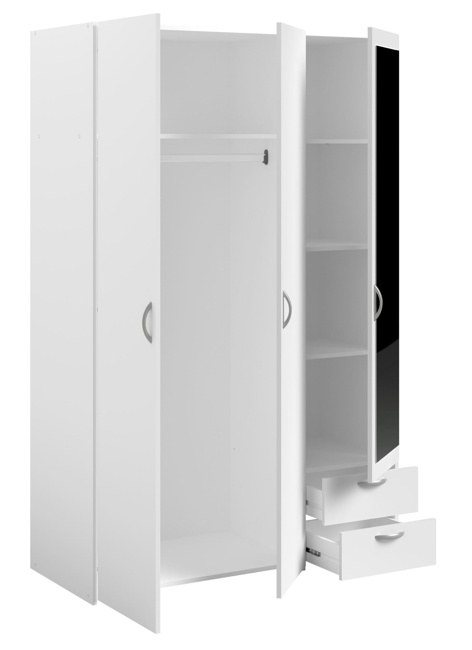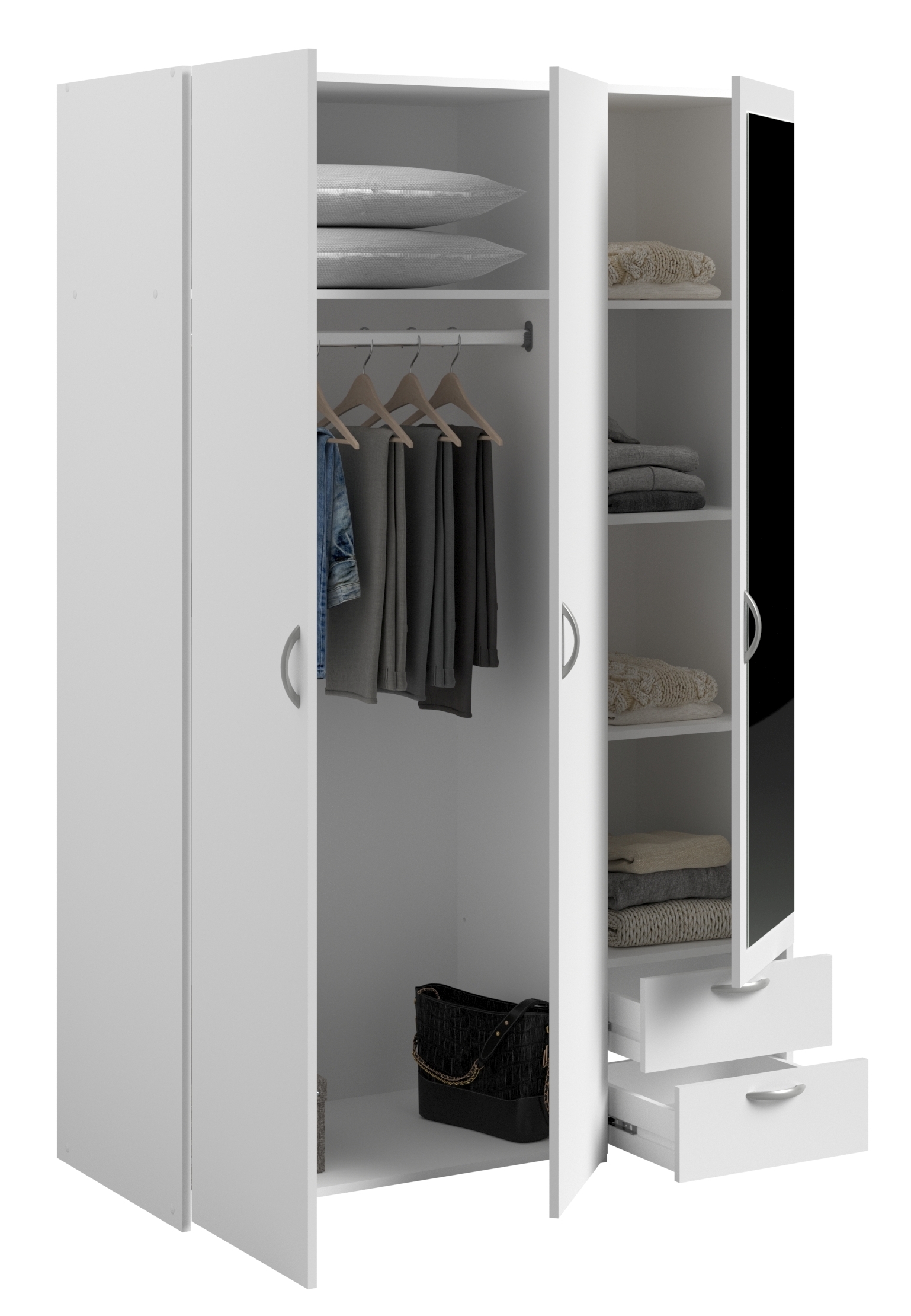 links: 2 große Türen, dahinter 1 Fach und 1 Kleiderstange