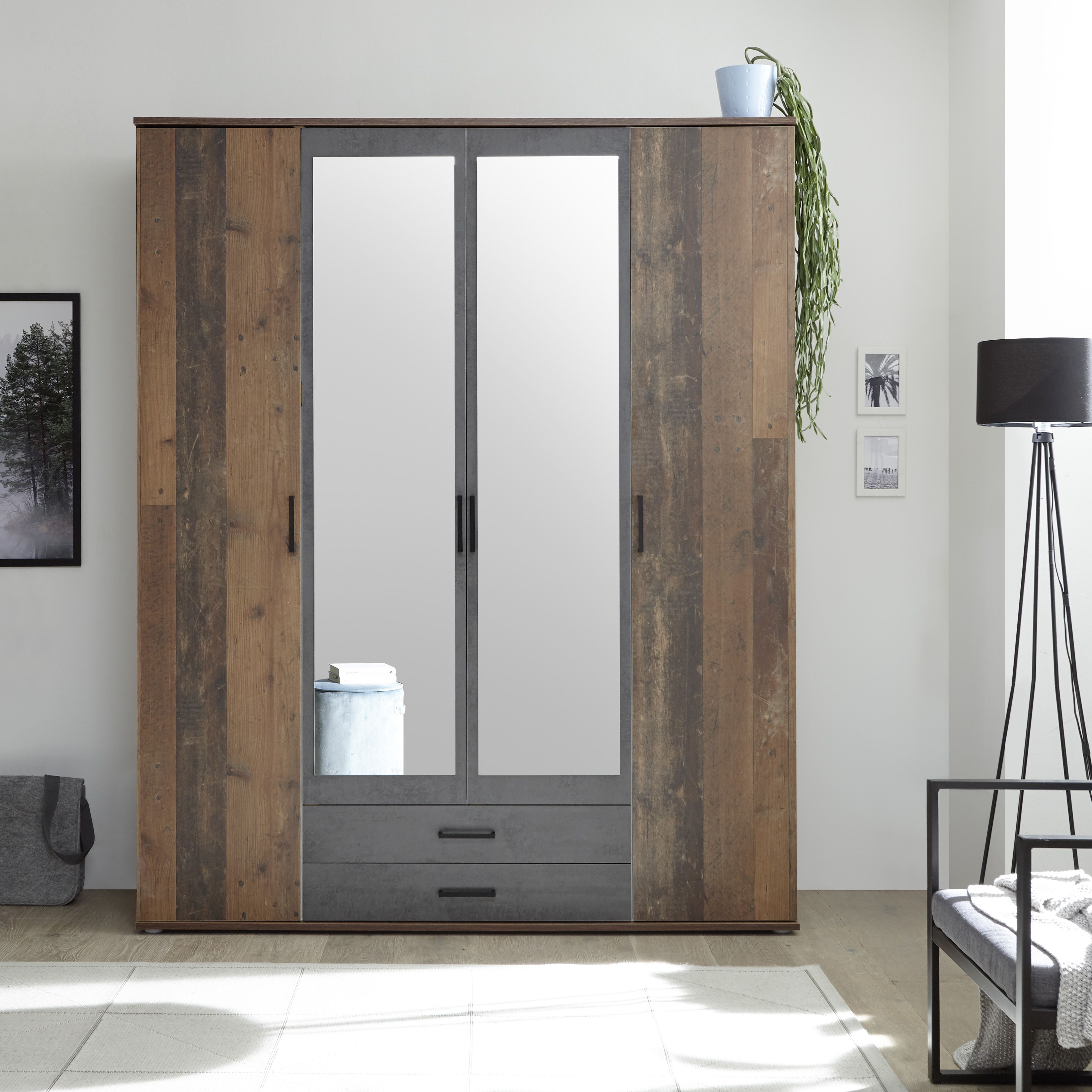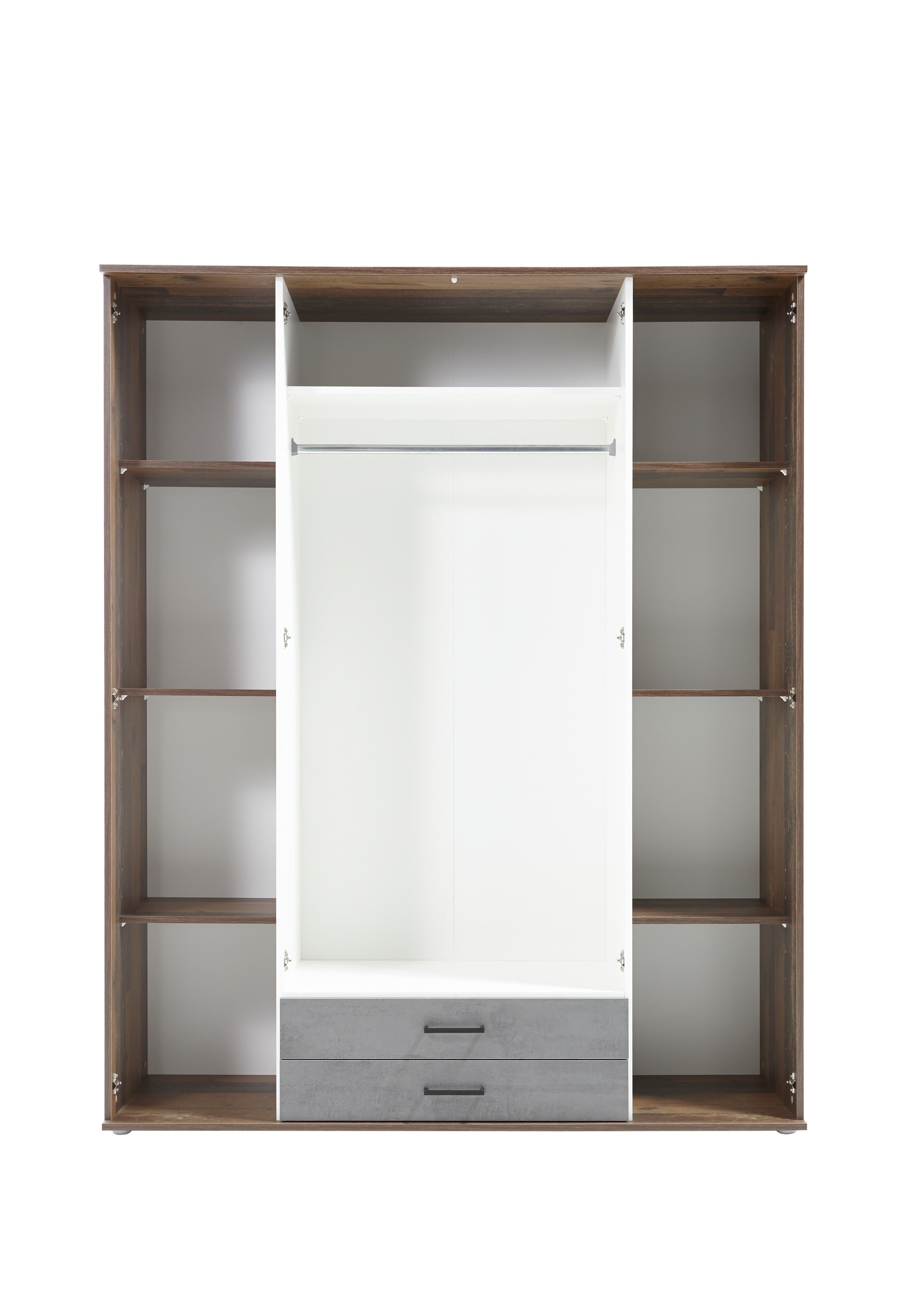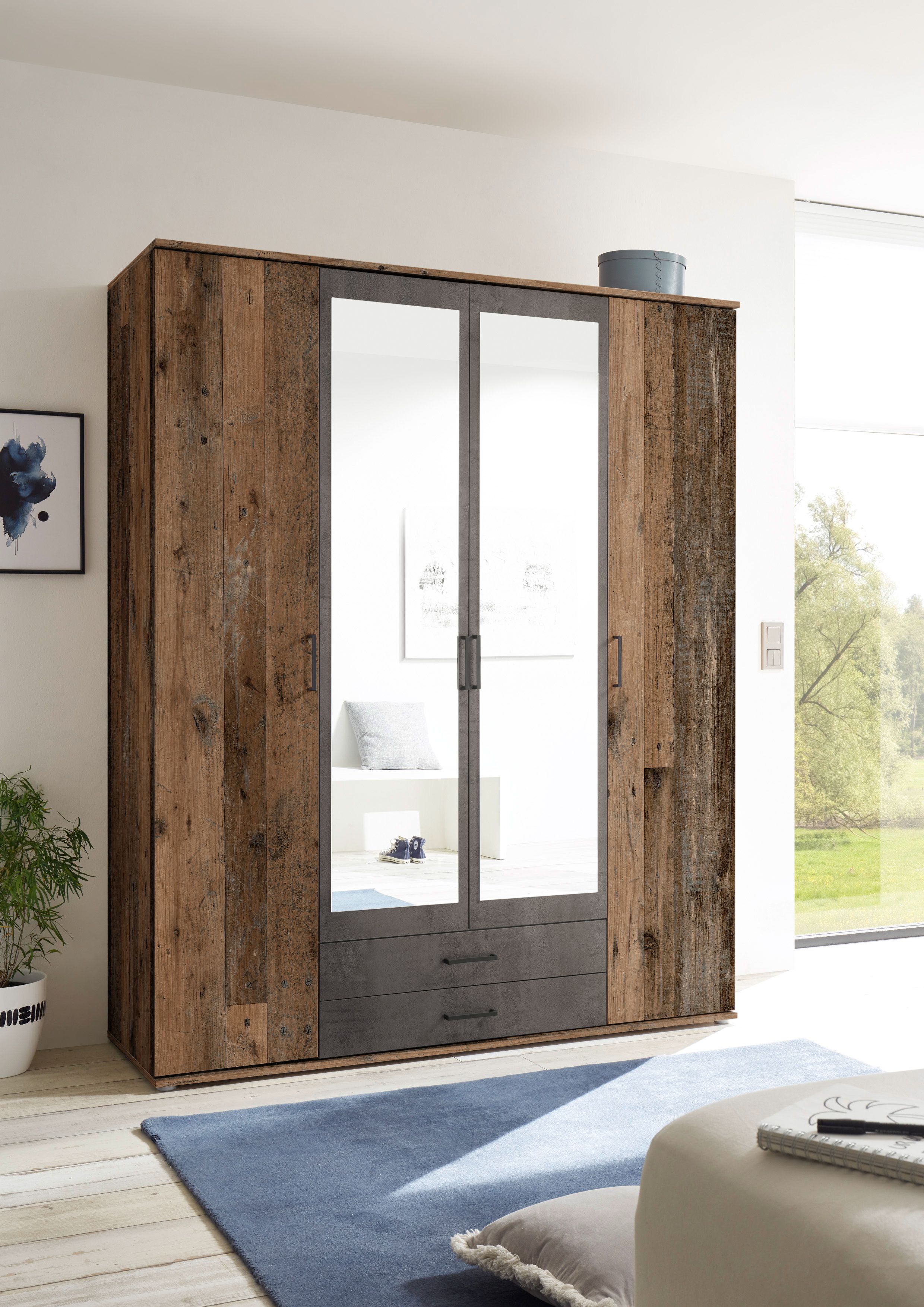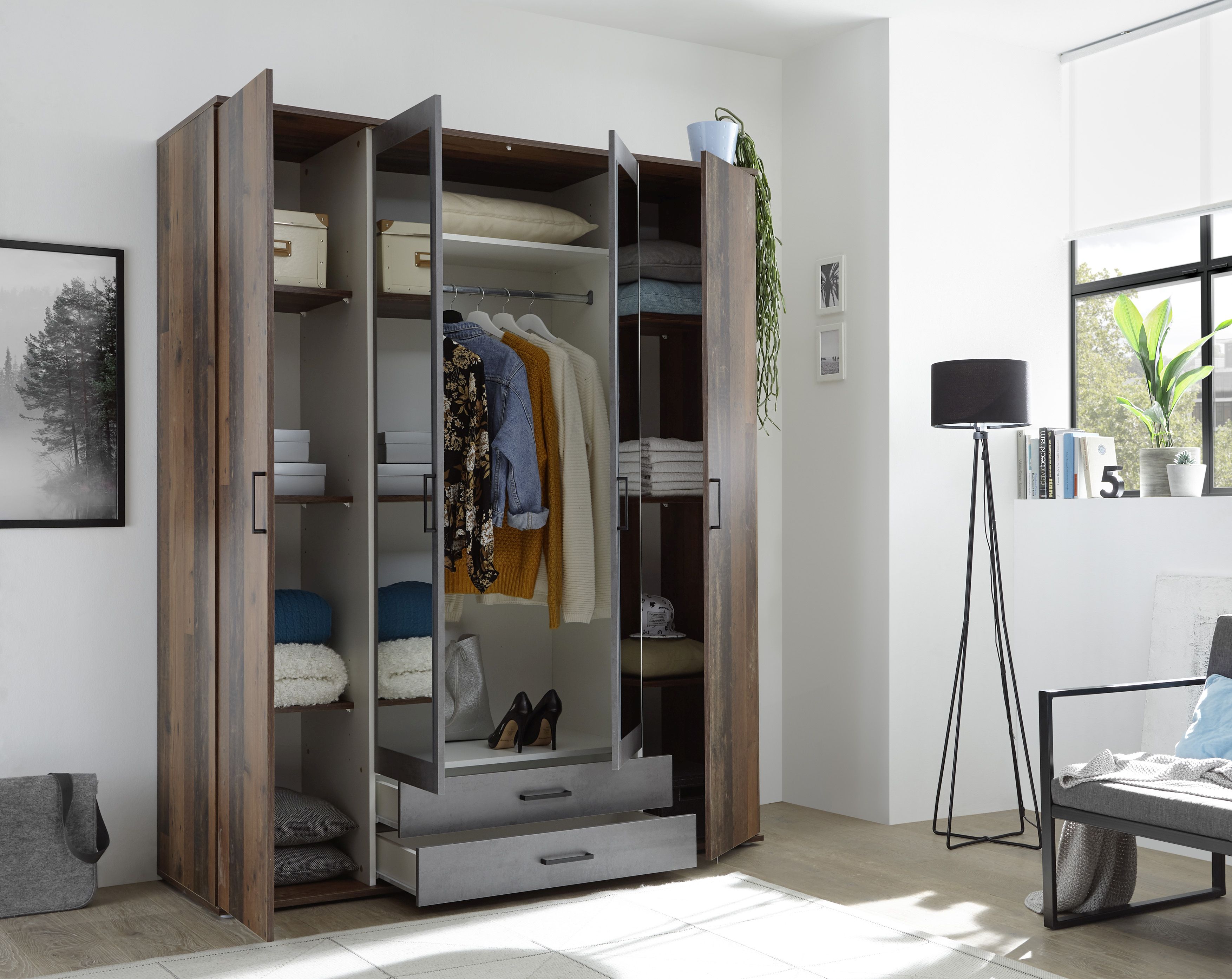 CHICAGO Eleganter Kleiderschrank mit viel Stauraum - Vielseitiger Drehtürenschrank in Old Style & Betonoxid Optik - 159 x 197 x 54 cm (B/H/T)