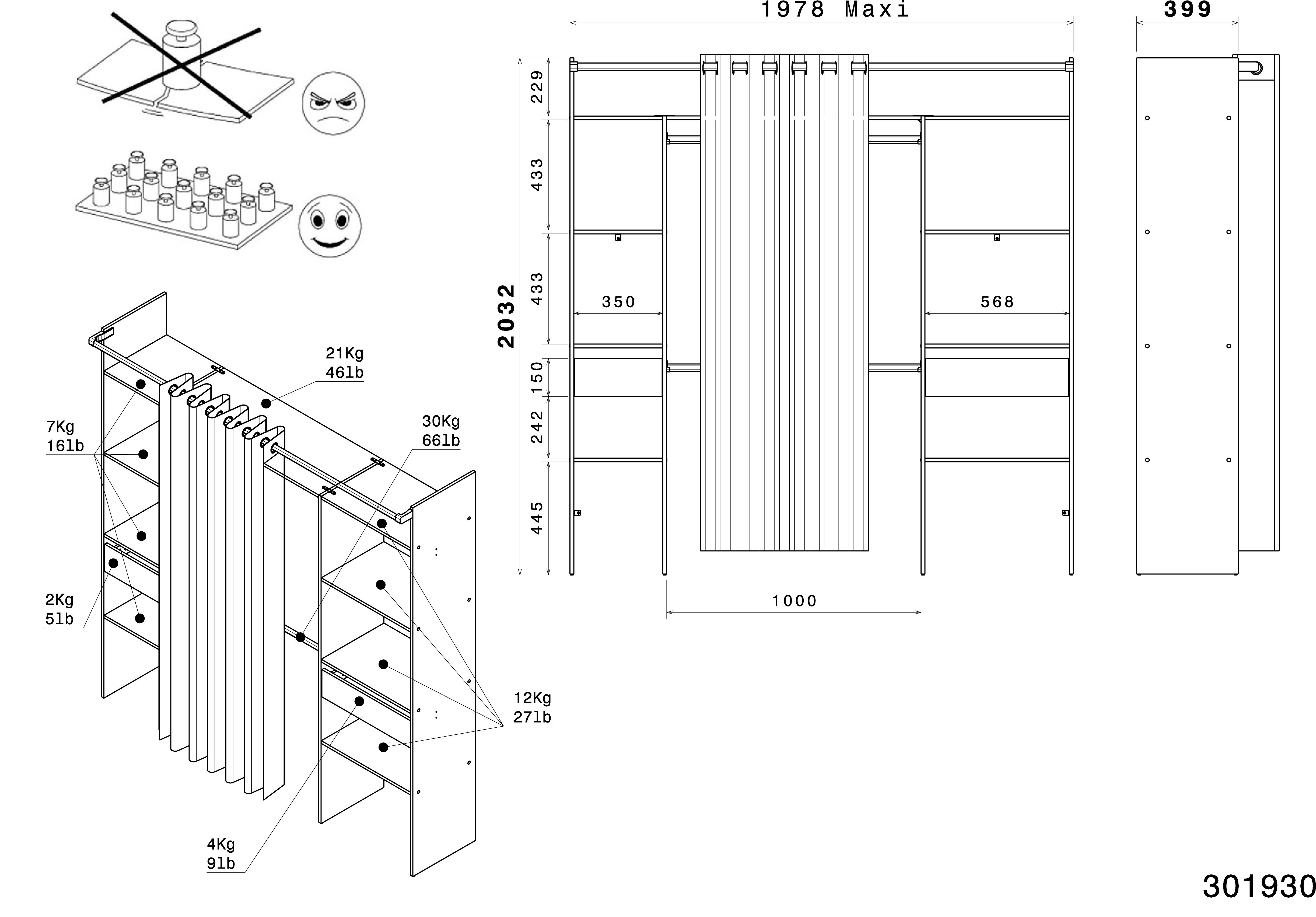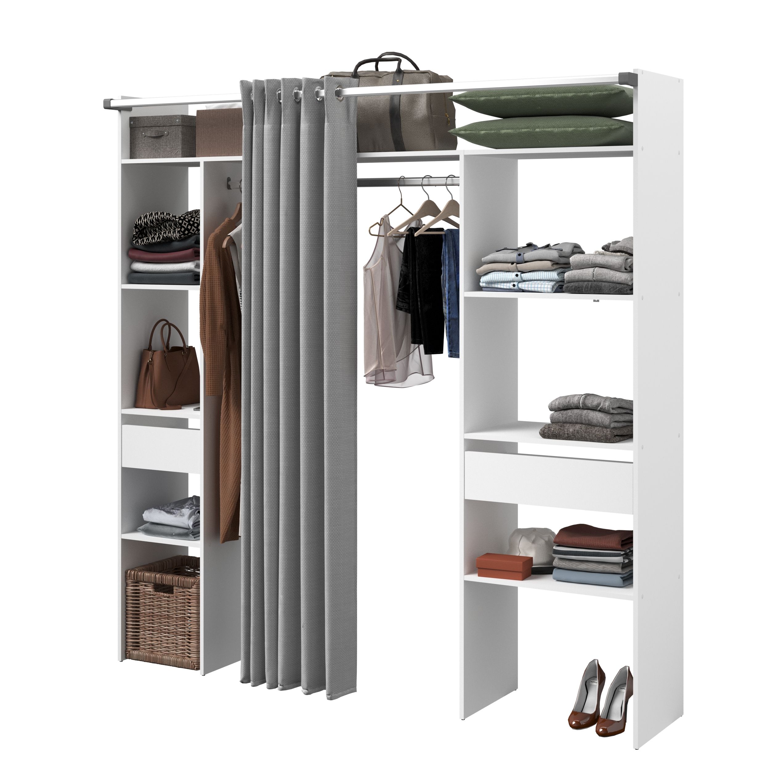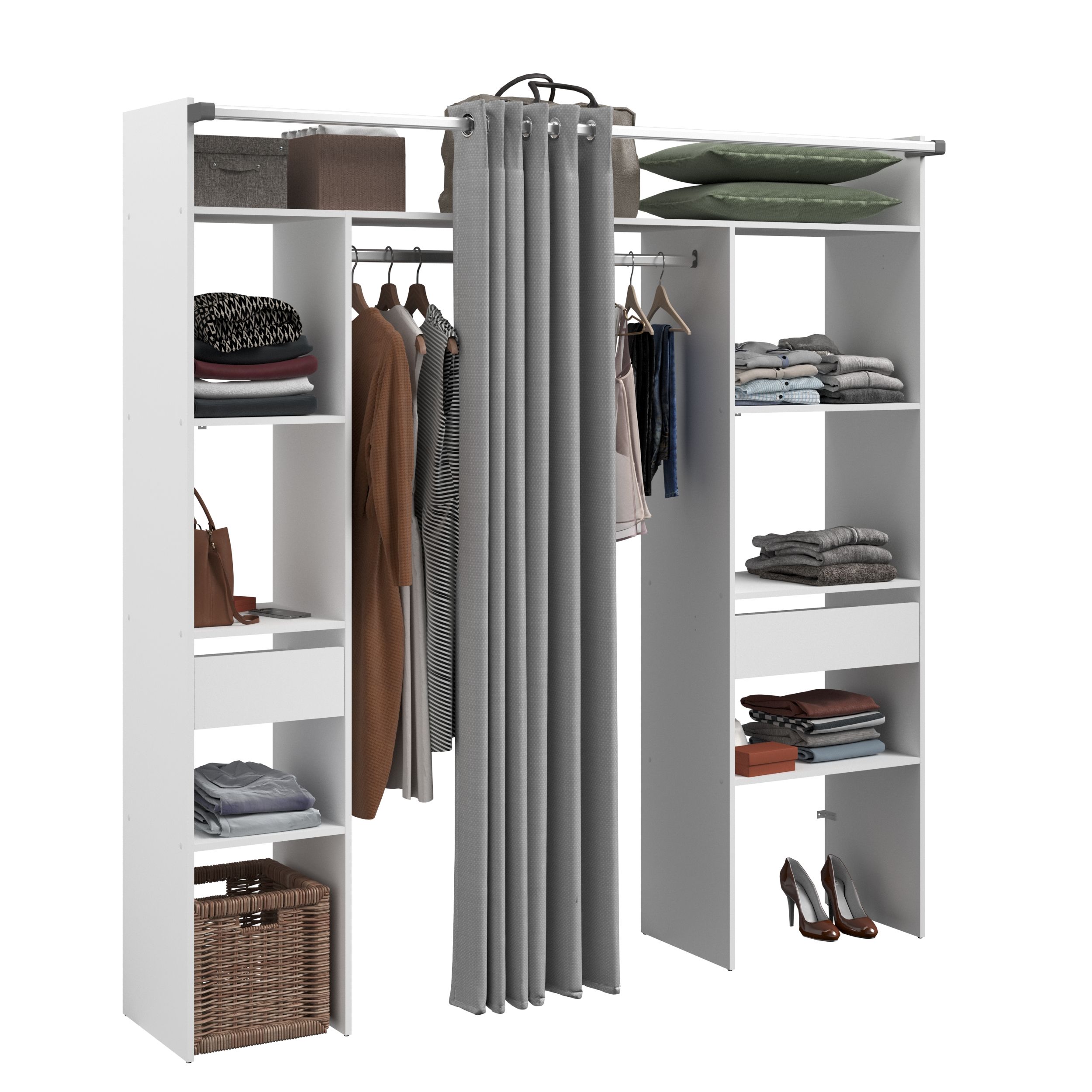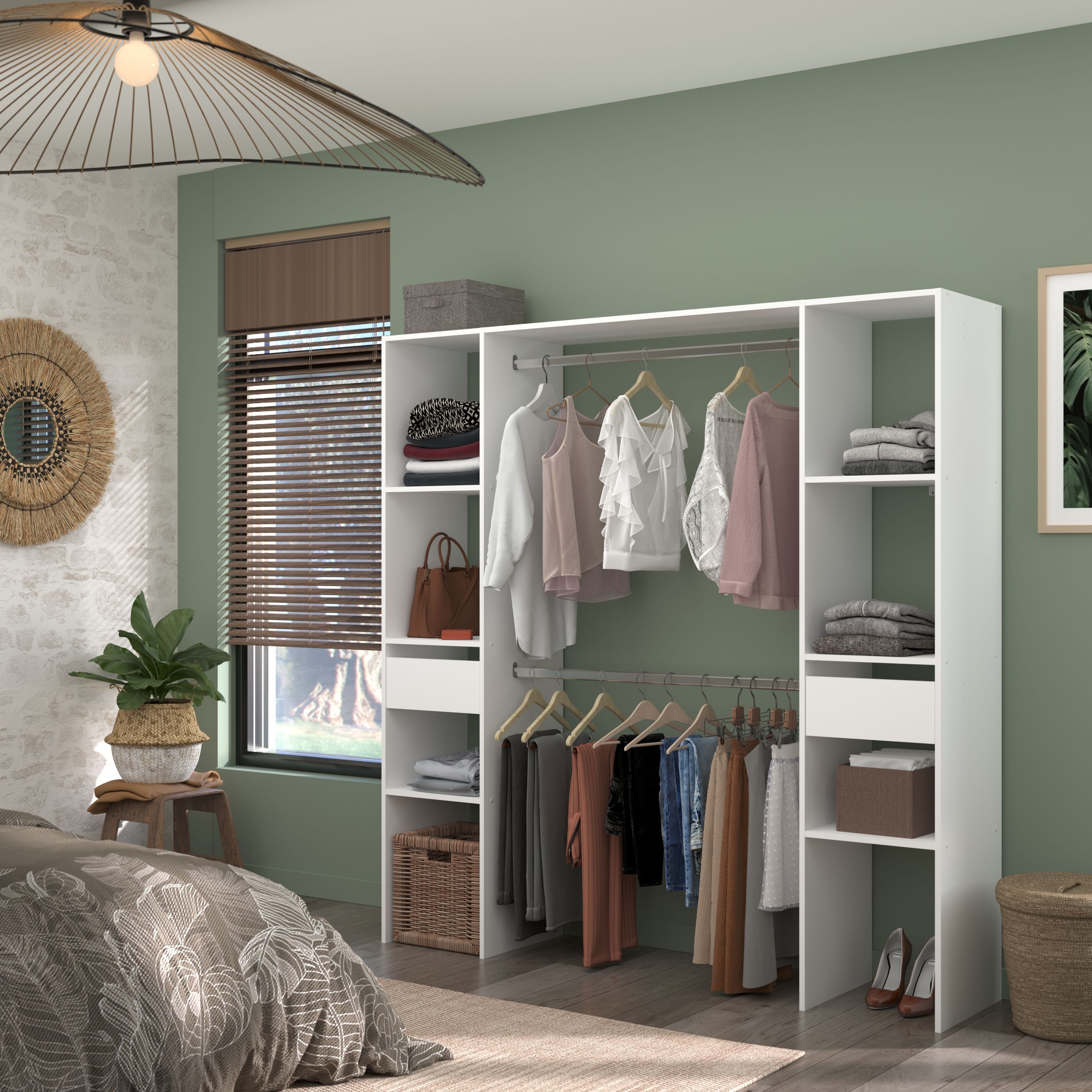 links: 5 Stauraumfächer, 1 Schubkasten, 1 Regalboden und 1 Kleiderstange