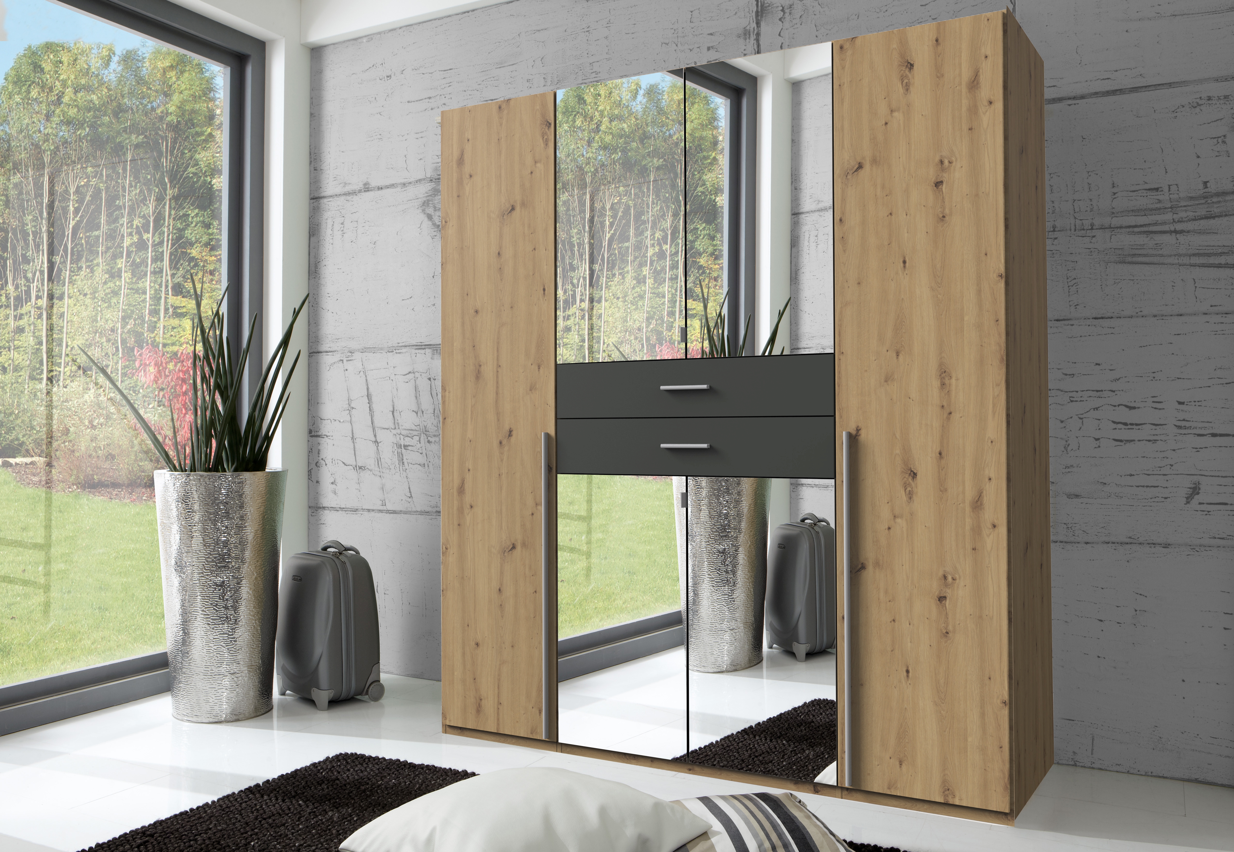 Korpus und Front: Artisan Eiche Holznachbildung mit Schubkästen in Graphit / Spiegel