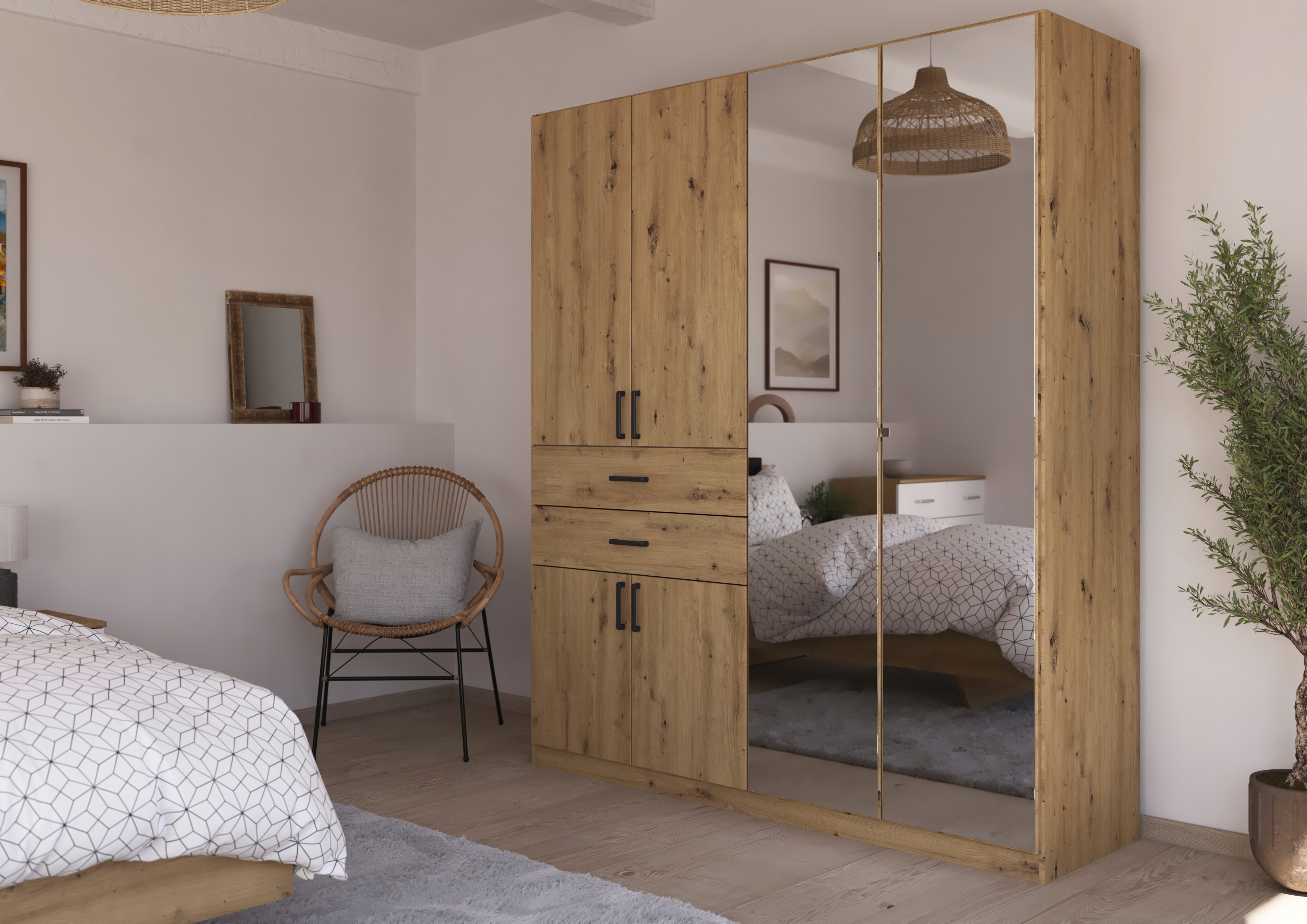 Korpus und Front: Eiche Artisan Holznachbildung / Spiegel
