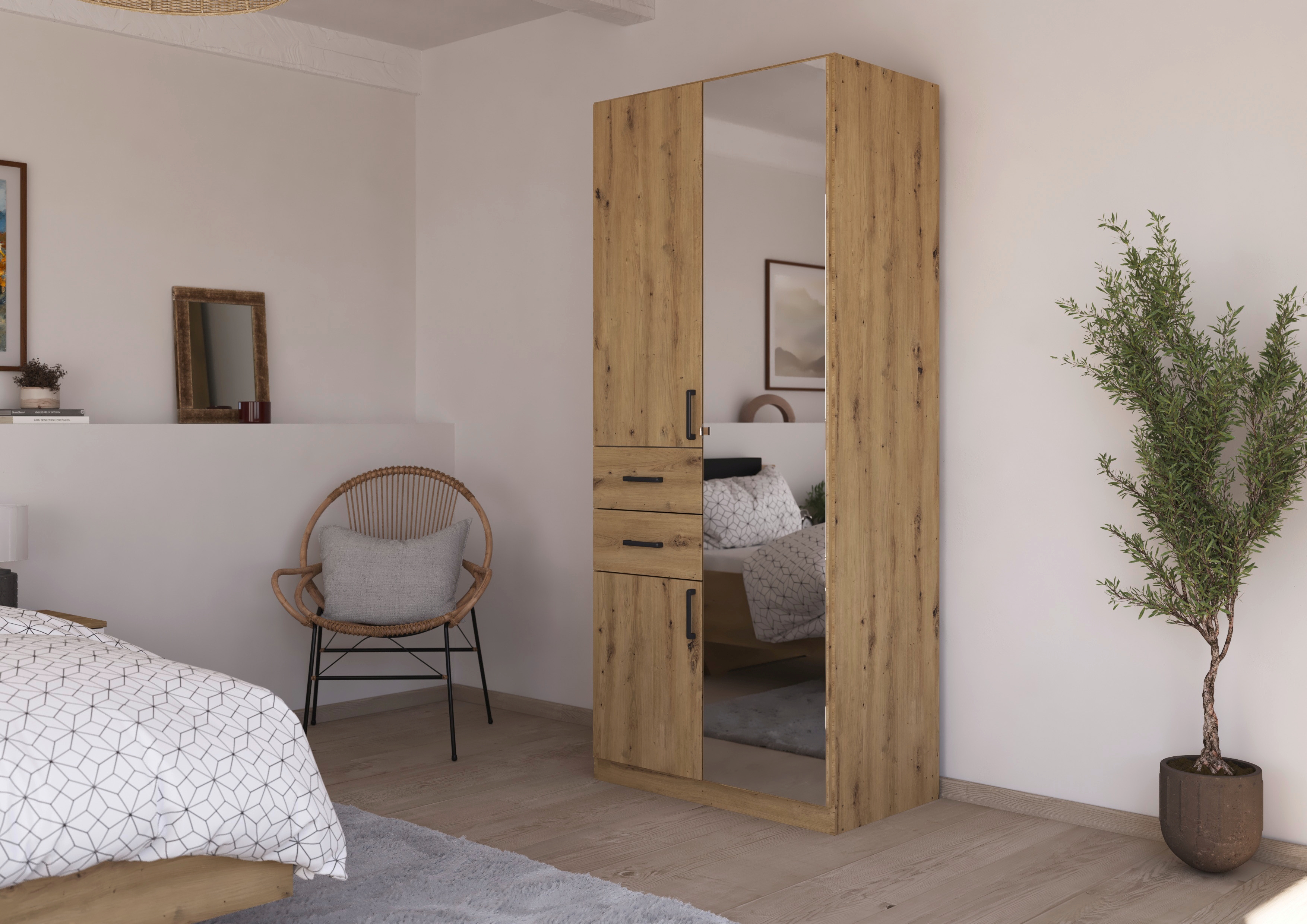 Korpus und Front: Eiche Artisan Holznachbildung / Spiegel