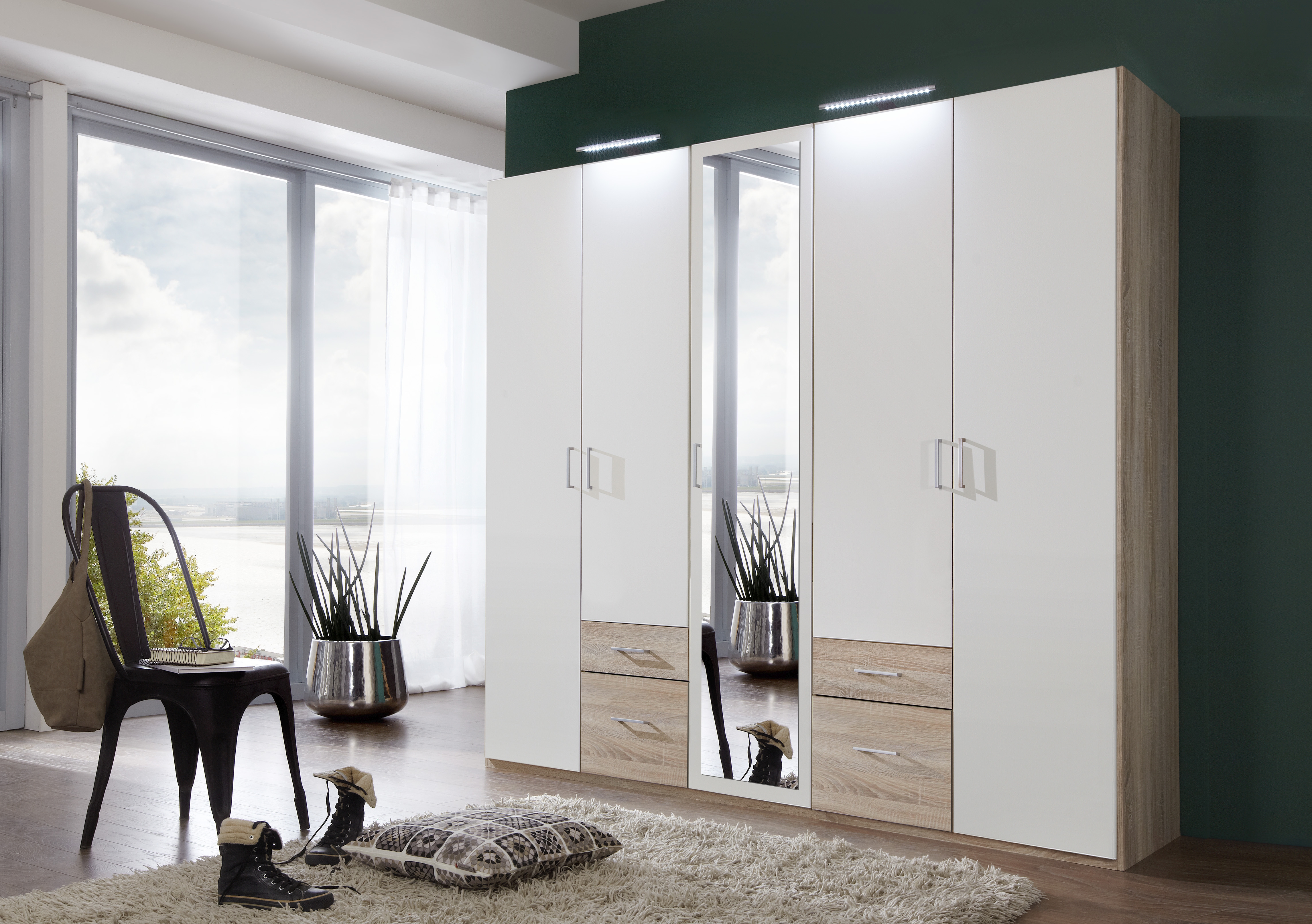 5 Türen, davon mittig 1 Tür mit Spiegel