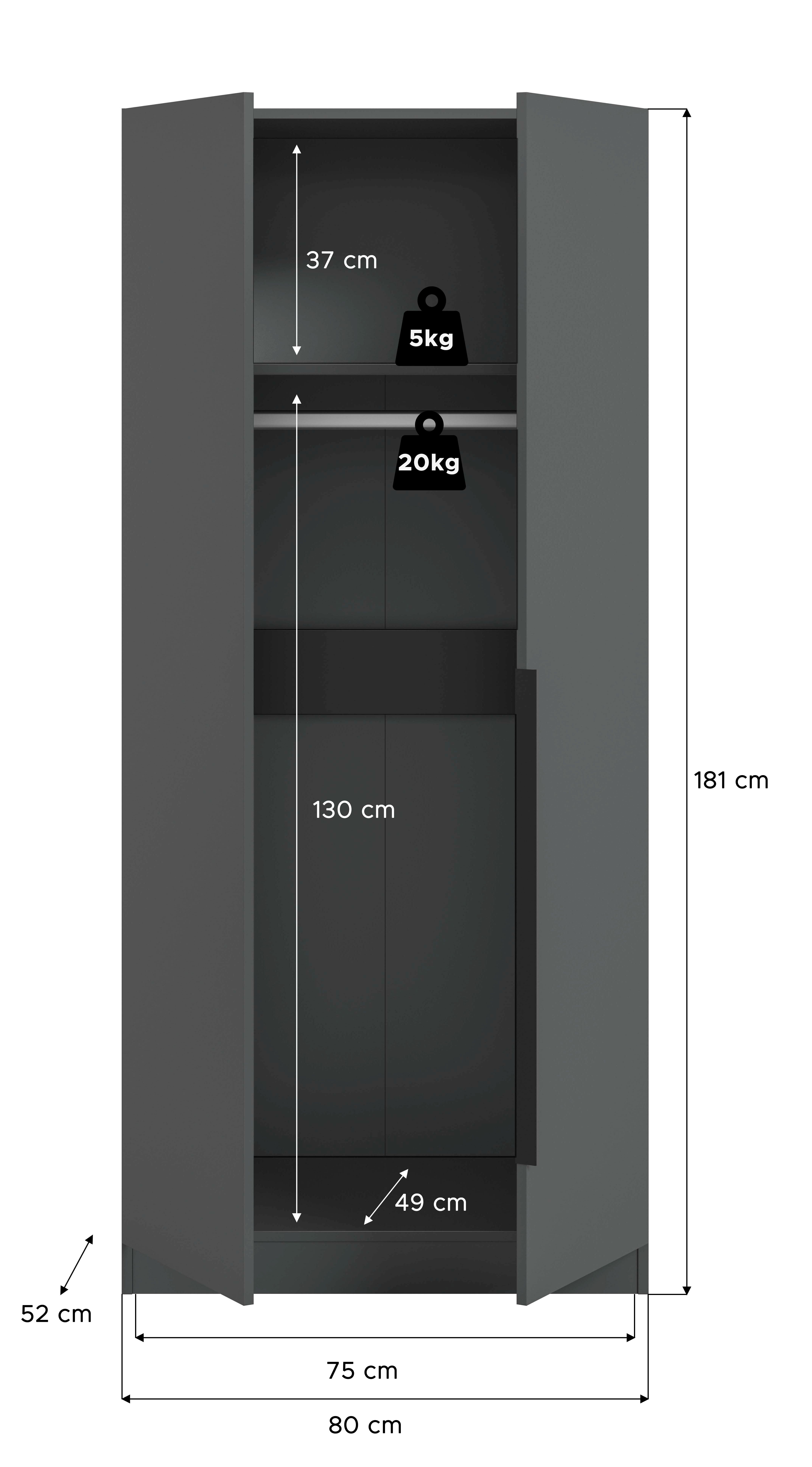 | Kleiderschrank | 80 | 180 | 52 |