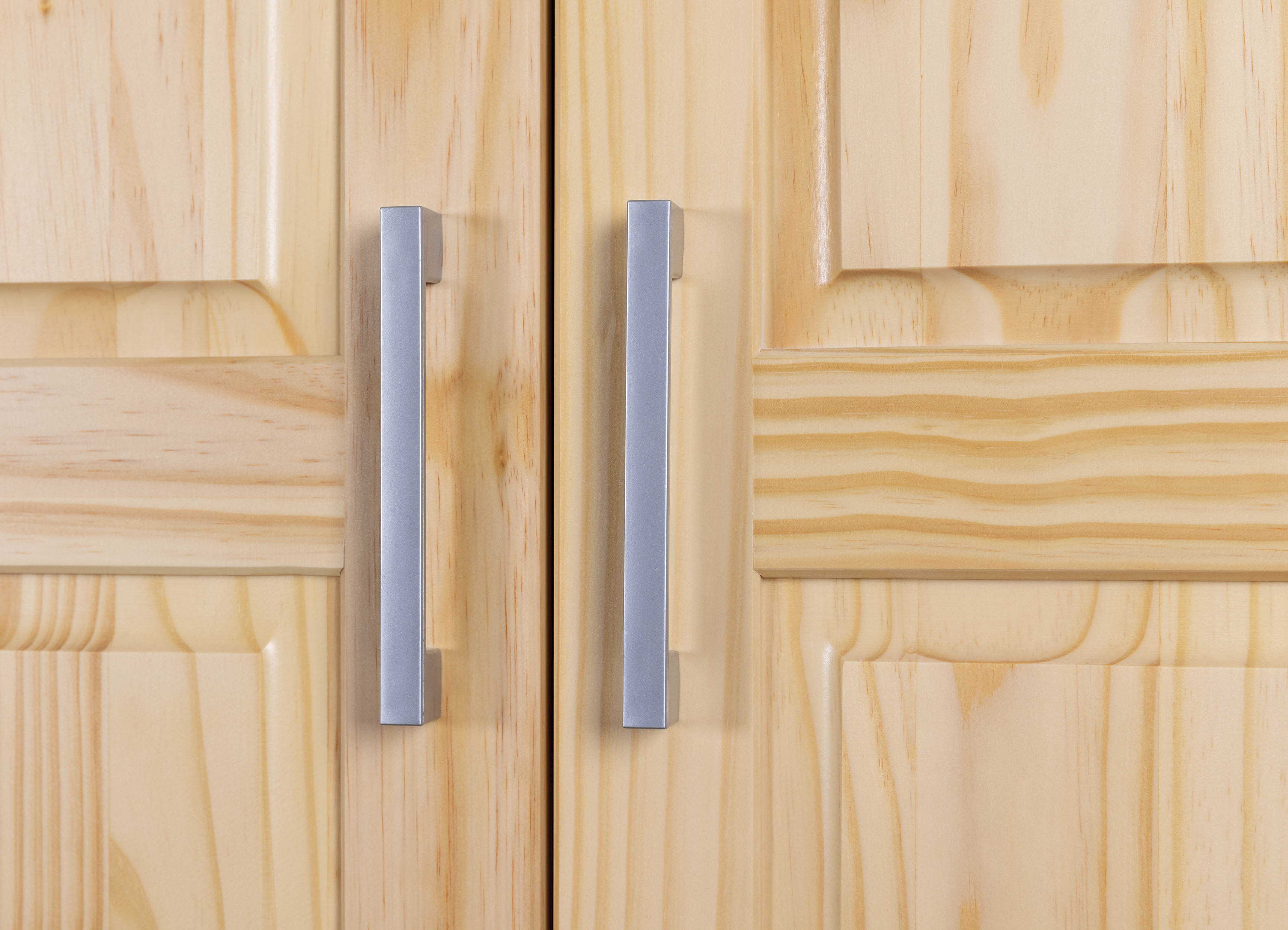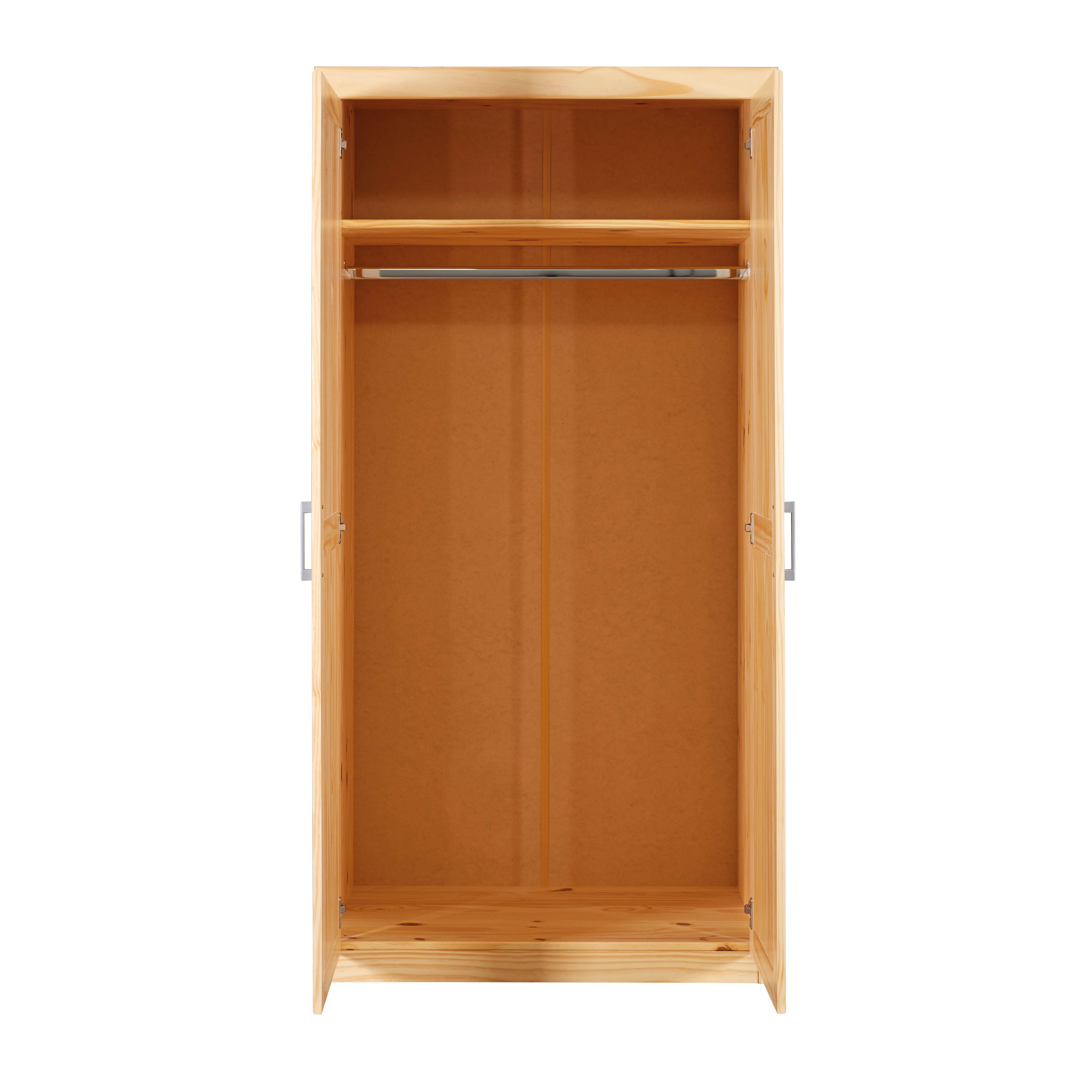 Eine transparente Oberfläche unterstreicht den Naturholzcharakter des 2-türigen Kleiderschranks.