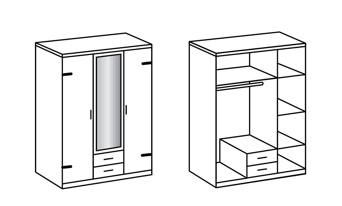 | Ausstattung Schränke: | Schublade(n), Spiegel | ||