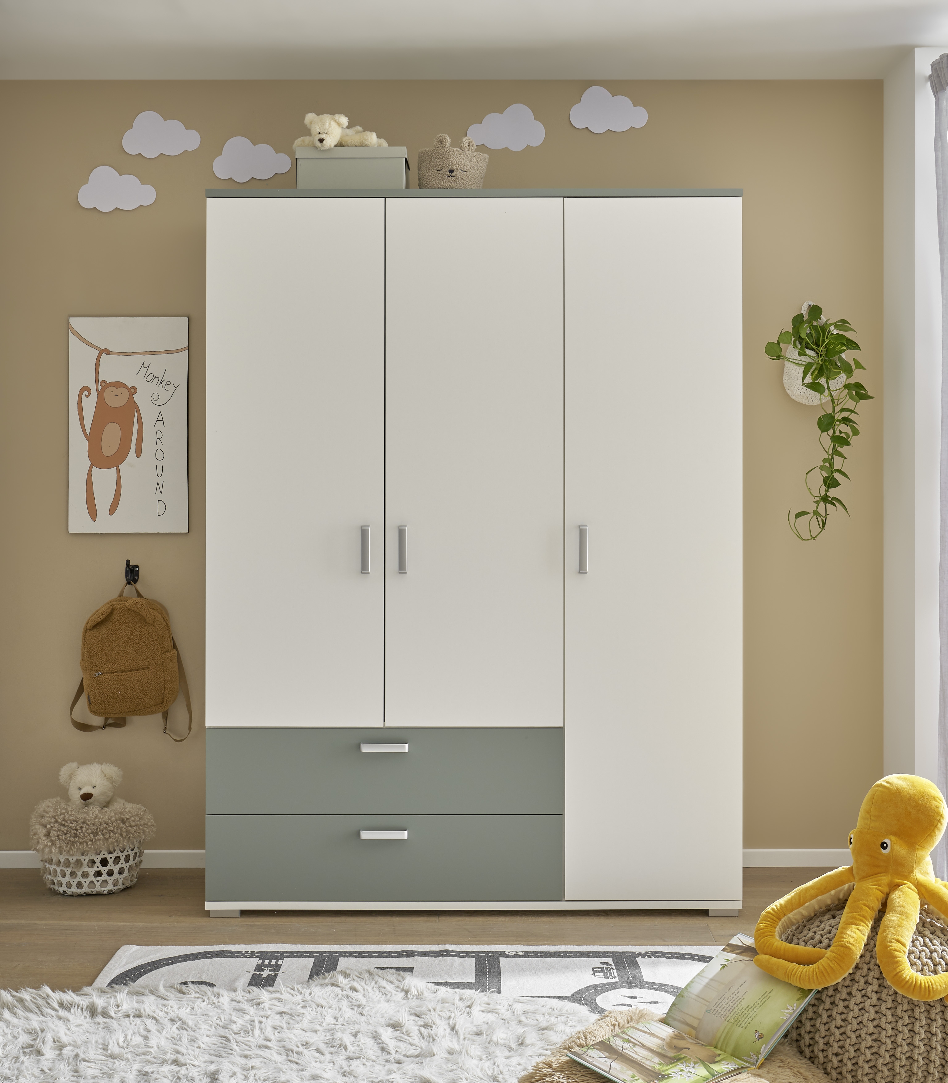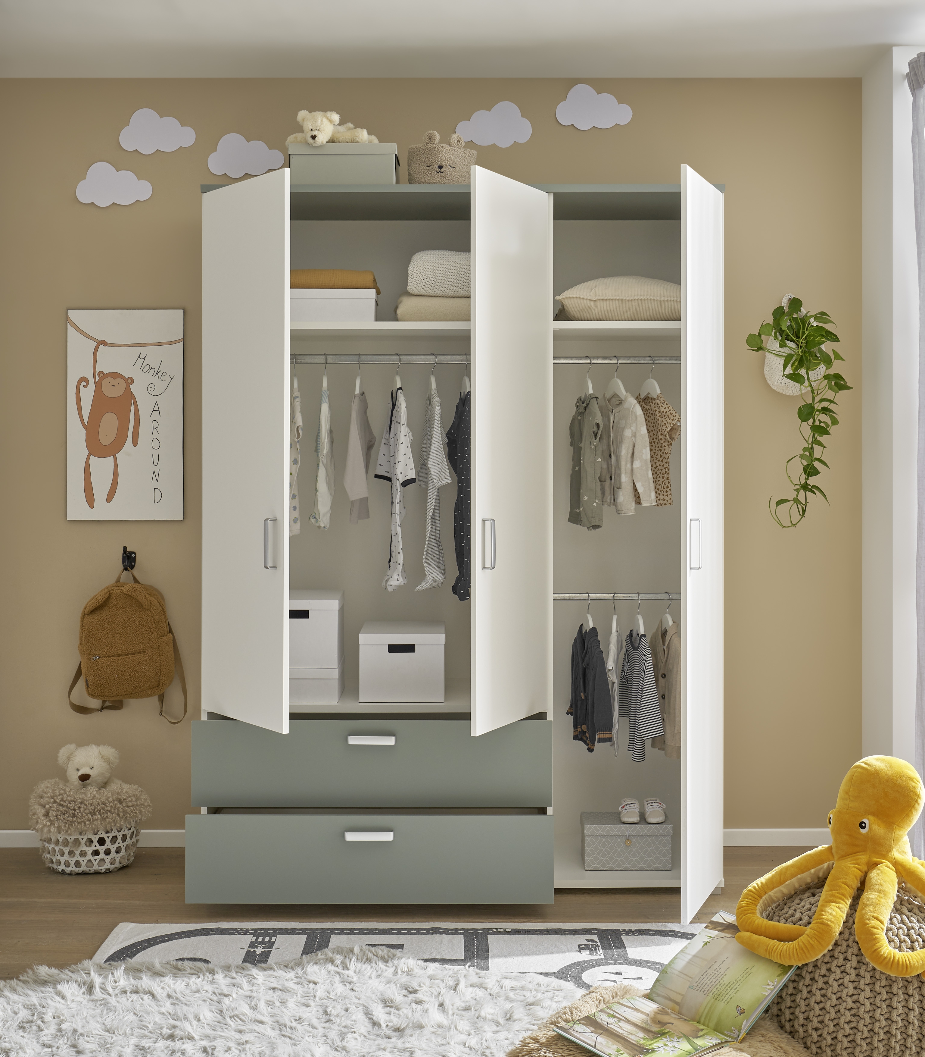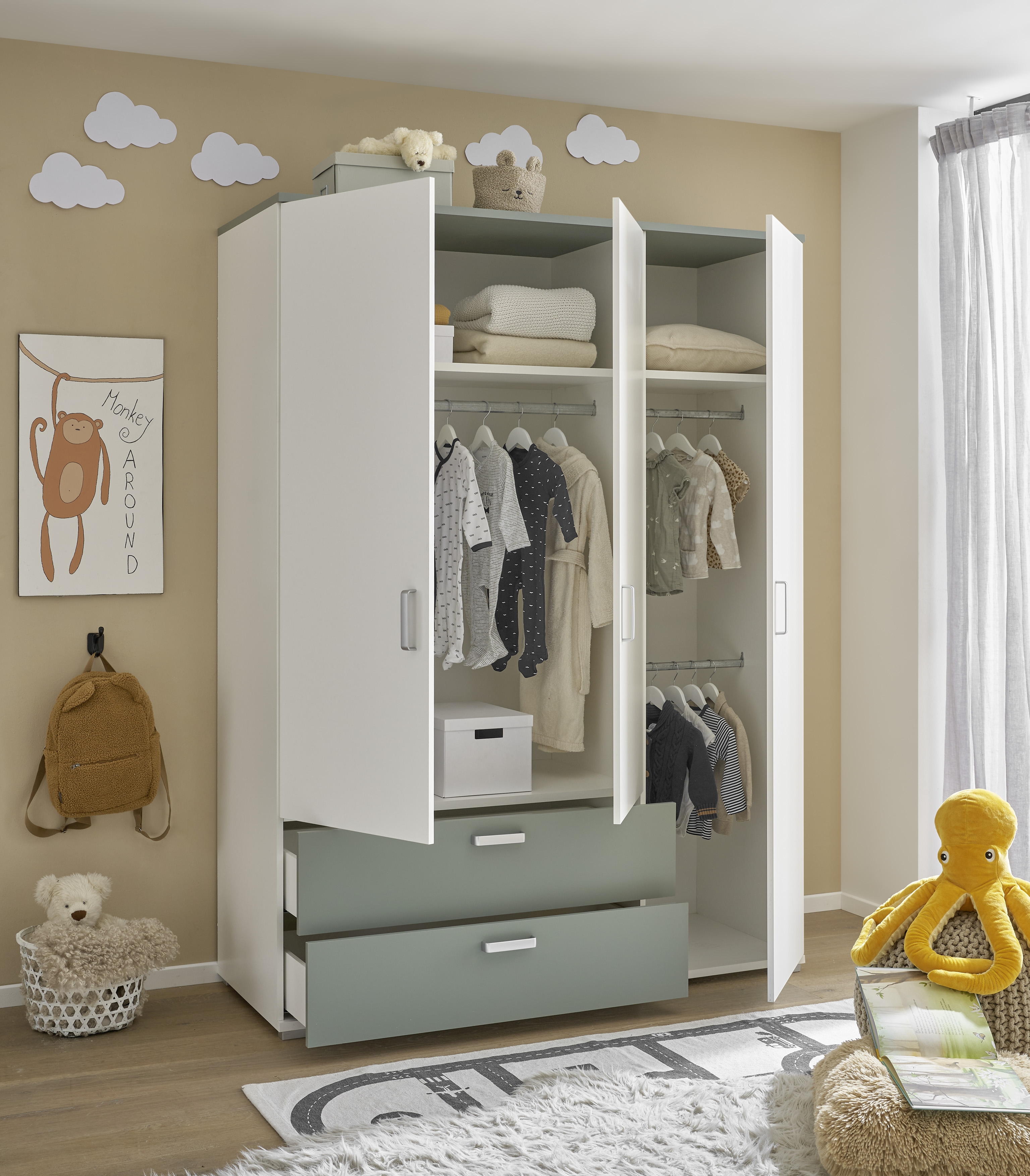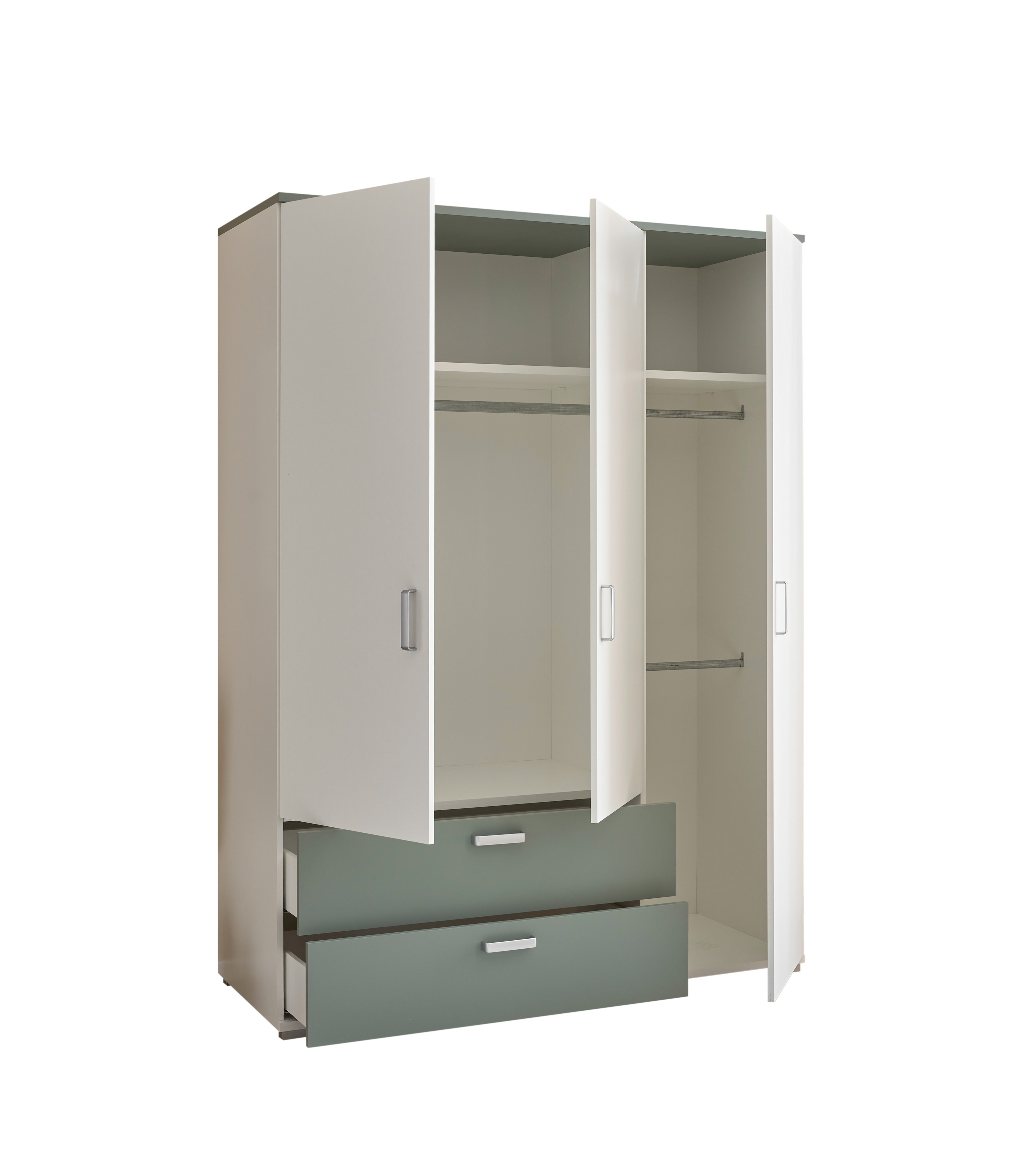 Inneneinteilung: links 1 Boden und 1 Kleiderstange; rechts 1 Boden und 2 Kleiderstangen