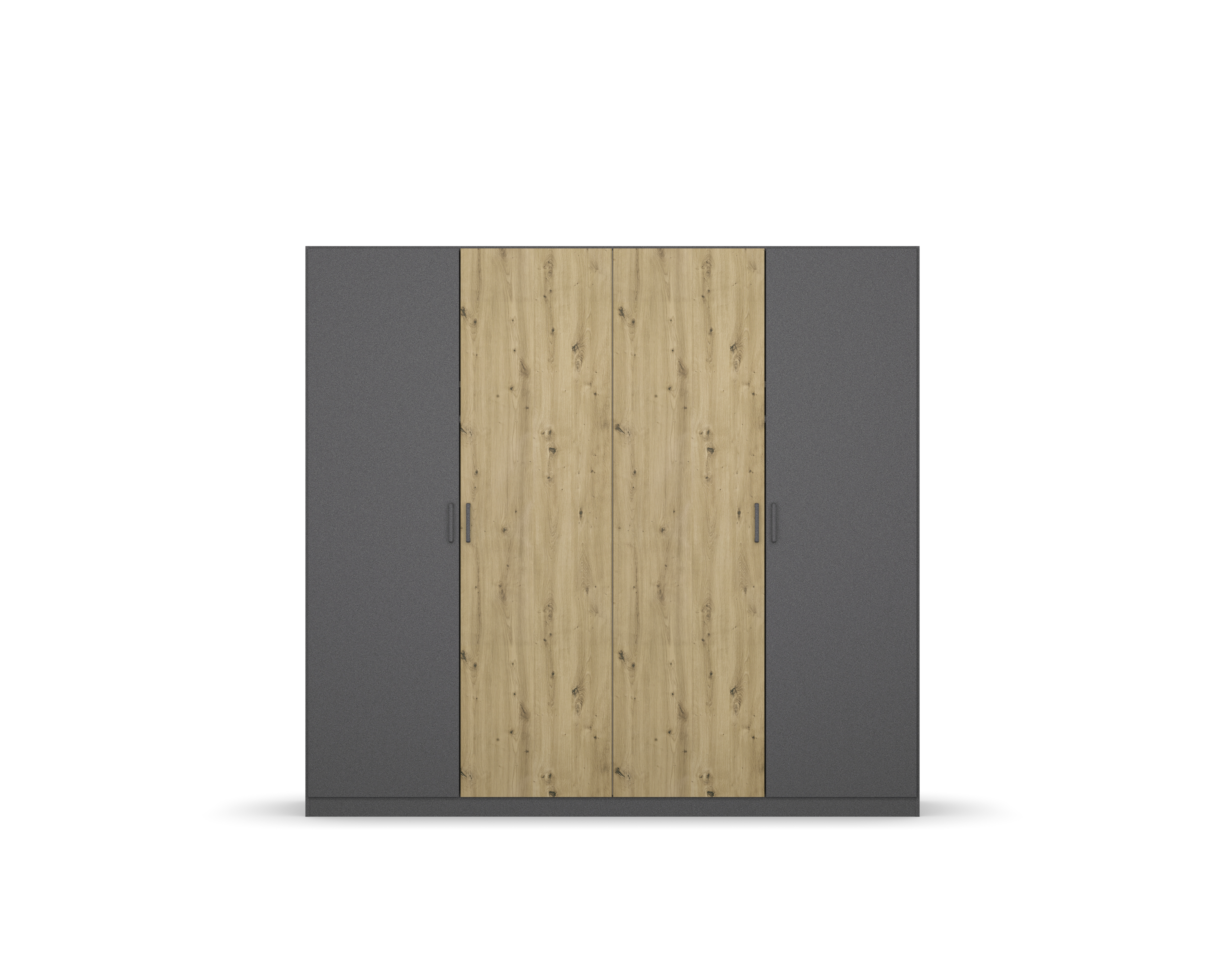 Front und Korpus: Grau-Metallic kombiniert mit Absetzungen in Artisan Eiche Holznachbildung