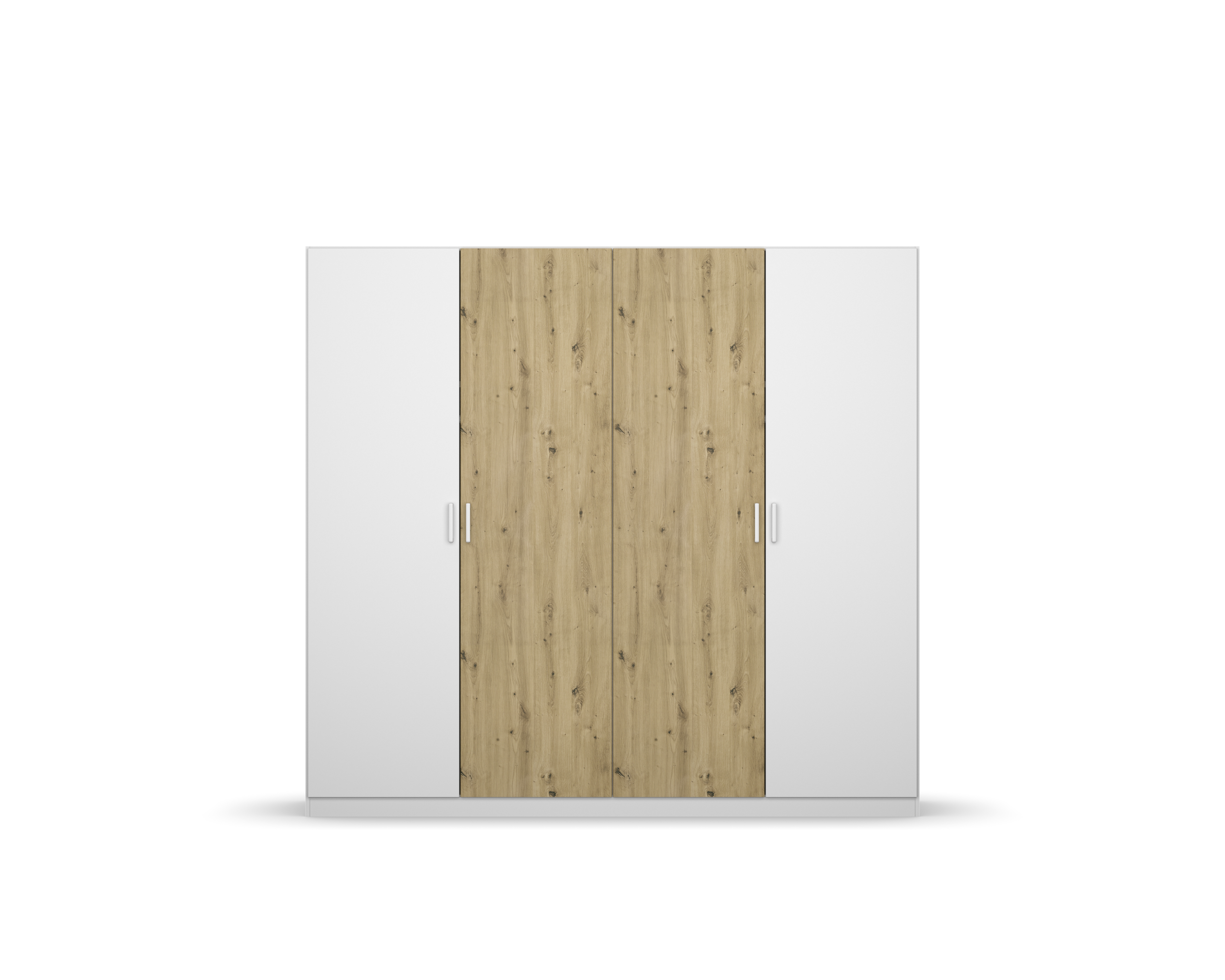 Front und Korpus: Alpinweiß kombiniert mit Absetzungen in Artisan Eiche Holznachbildung