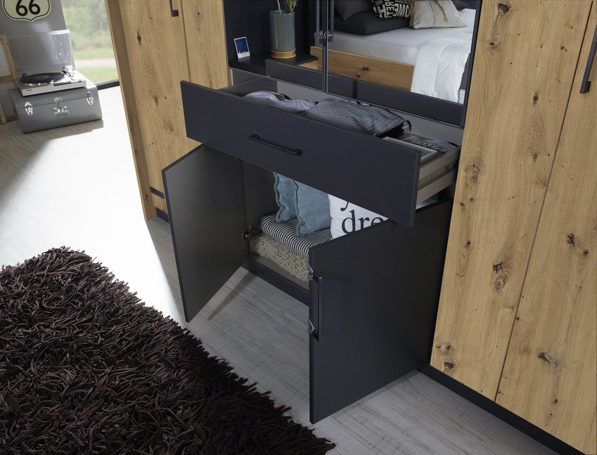 | Ausstattung Schränke: | Schublade(n), Spiegel | ||