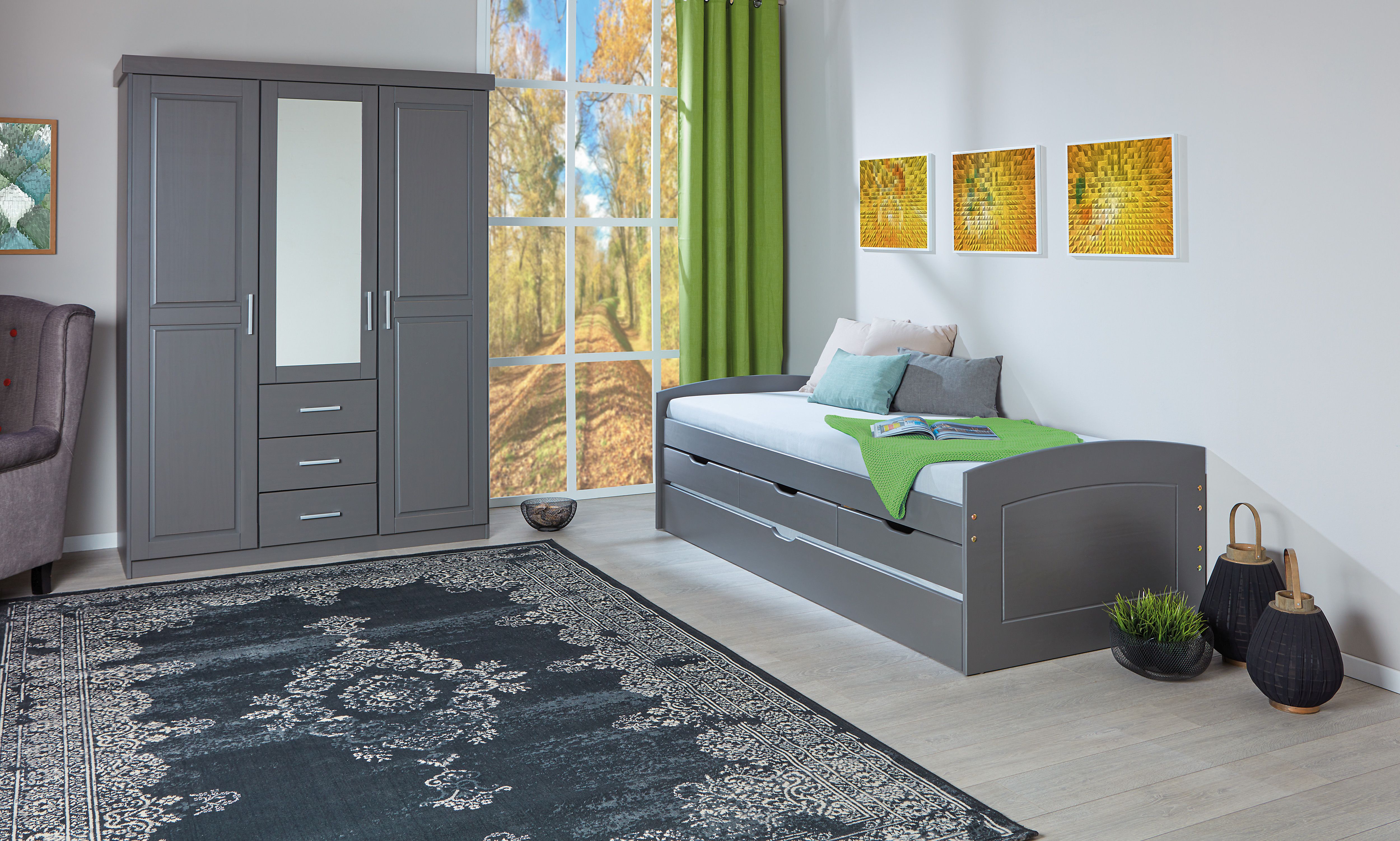 Kiefer massiv (Brasilien), grau lackiert / Spiegel