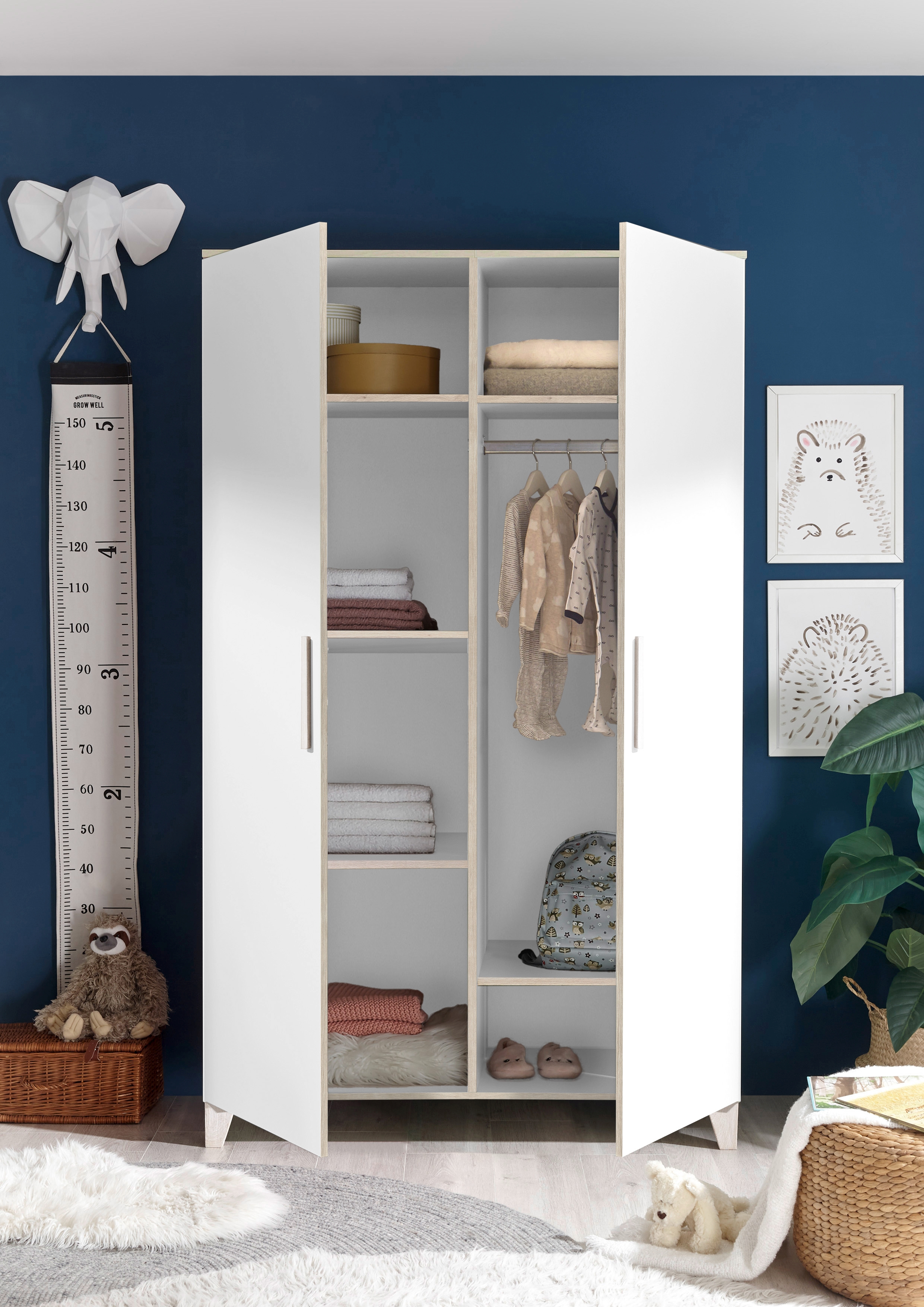 Inneneinteilung: links 3 Böden; rechts 2 Böden und 1 Kleiderstange