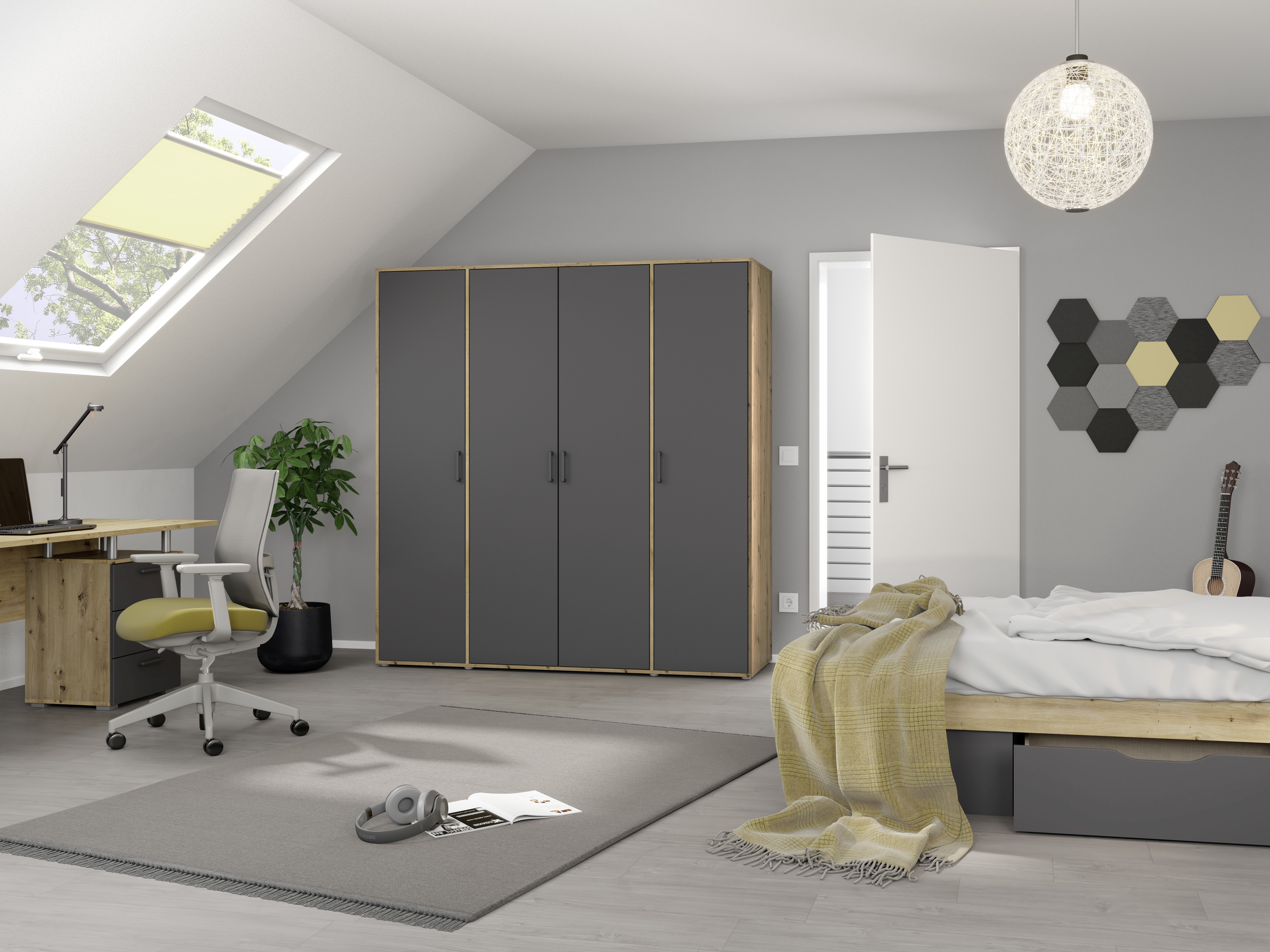 | Farbton: | Eiche Artisan - Grau-Metallic | ||
