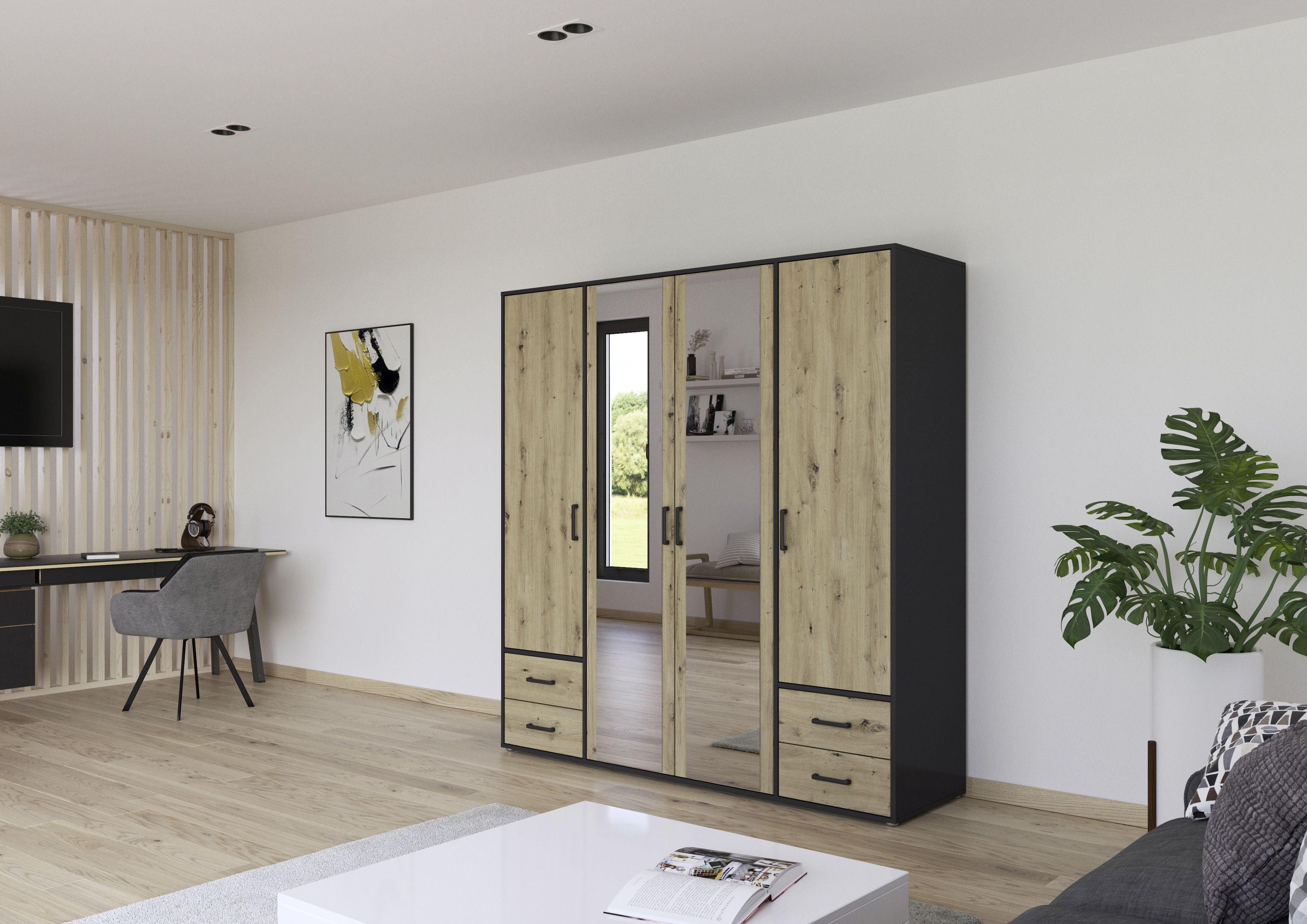 4 Türen, davon mittig 2 Spiegeltüren