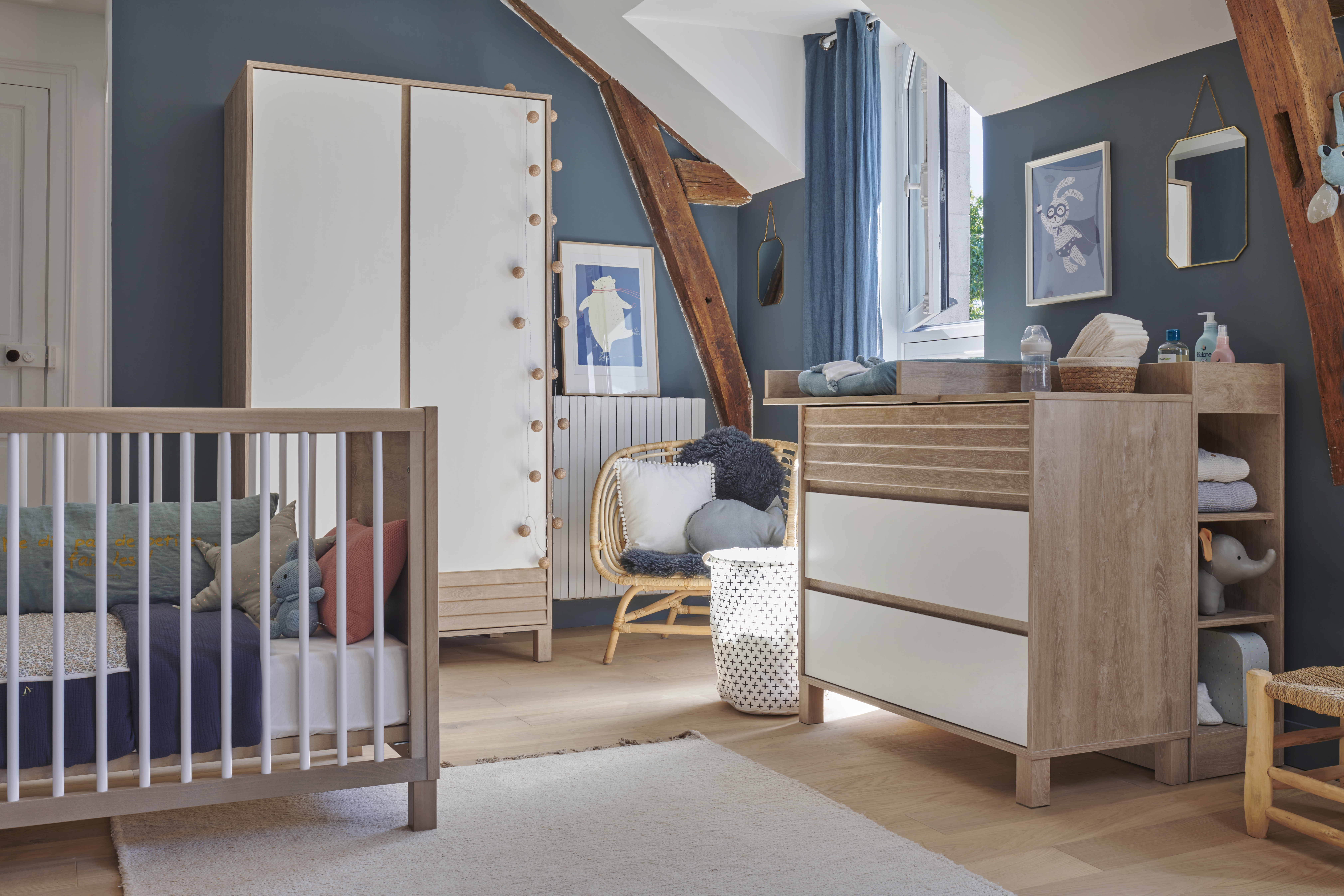 - Die Schubfächer der Kommode sind mit gebremstem Sanfteinzug ausgestattet, damit das Baby nicht von lauten Geräuschen gestört wird.