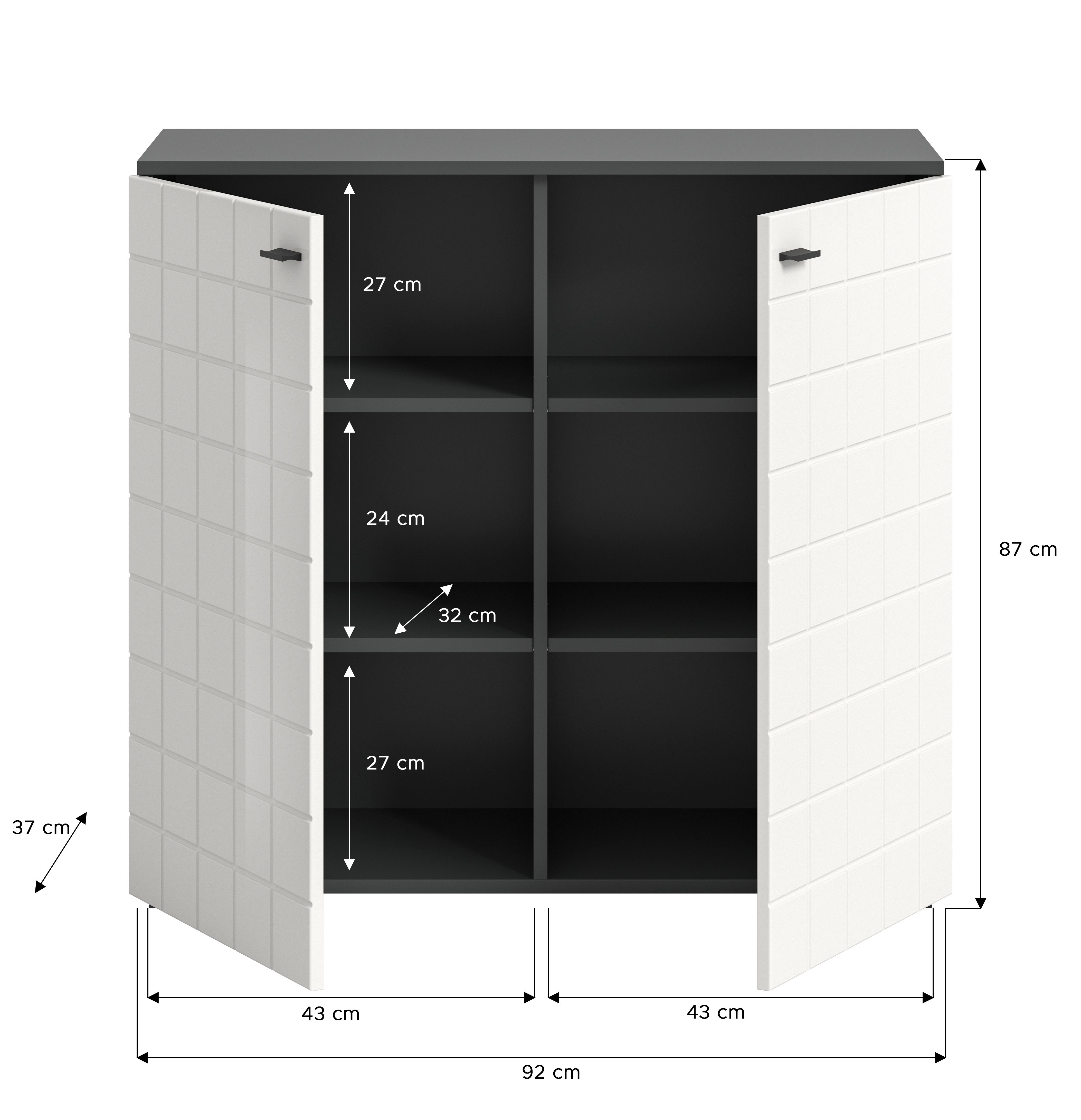 Eine Kommode mit den Maßen 92x86x37 cm in weißem Hochglanz und anthrazit klingt nach einem eleganten und funktionalen Möbelstück für dein Zuhause. Diese Größe bietet ausreichend Stauraum und die Kombination von weißem Hochglanz MDF und anthrazit Nachbildung verleiht der Kommode ein modernes und stilvolles Aussehen, das zu verschiedenen Einrichtungsstilen passt. Der Hochglanzeffekt kann einen Hauch von Eleganz hinzufügen, während die anthrazitfarbene Nachbildung für Kontrast sorgt.