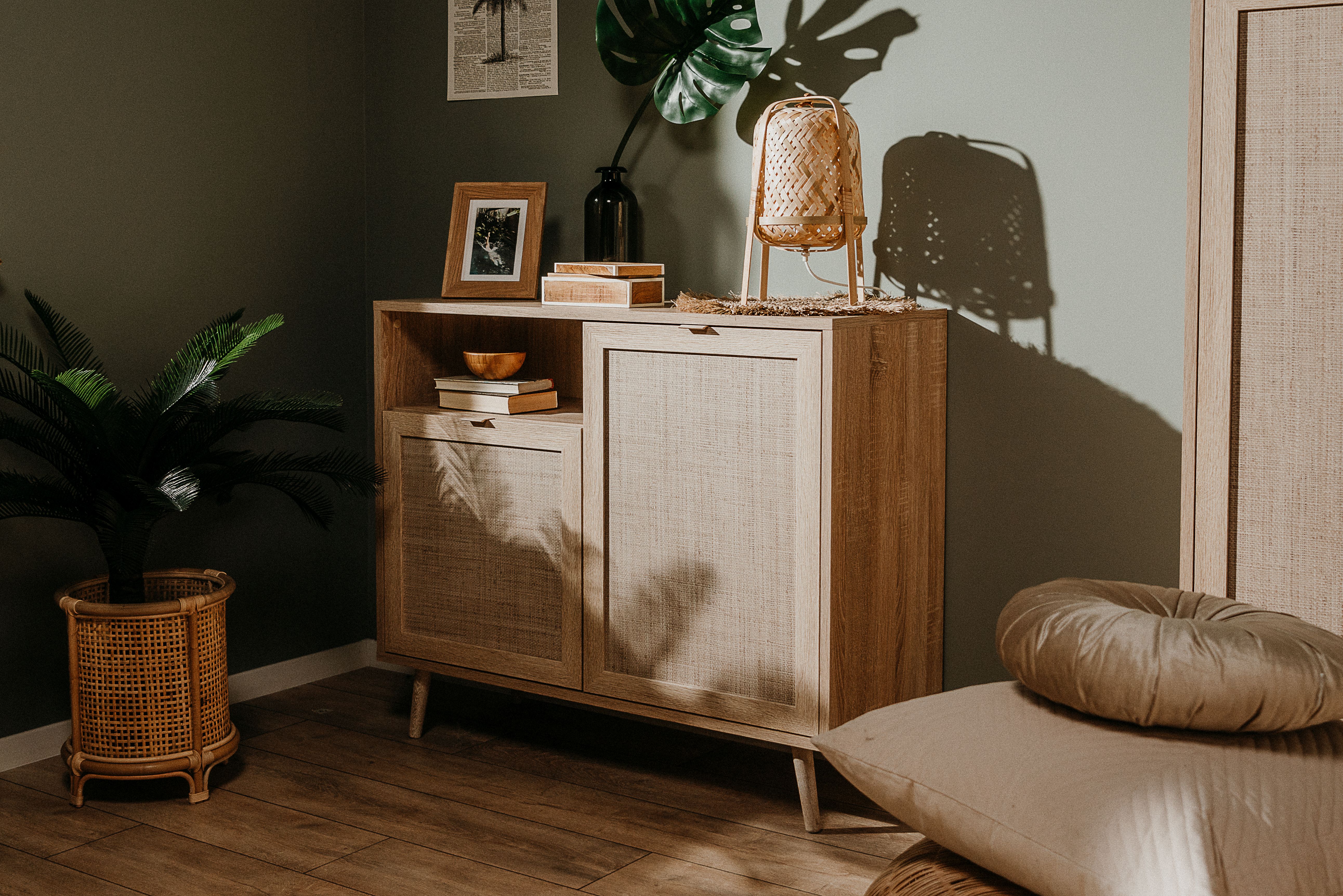 Sonoma Eiche Holznachbildung / Rafia-Geflecht-Druck