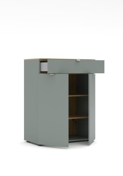 Die durchdachte Aufteilung durch Türen und eine Schublade macht das Verstauen einfach und effizient. Perfekt für alle, die Wert auf Ordnung und Stil legen.