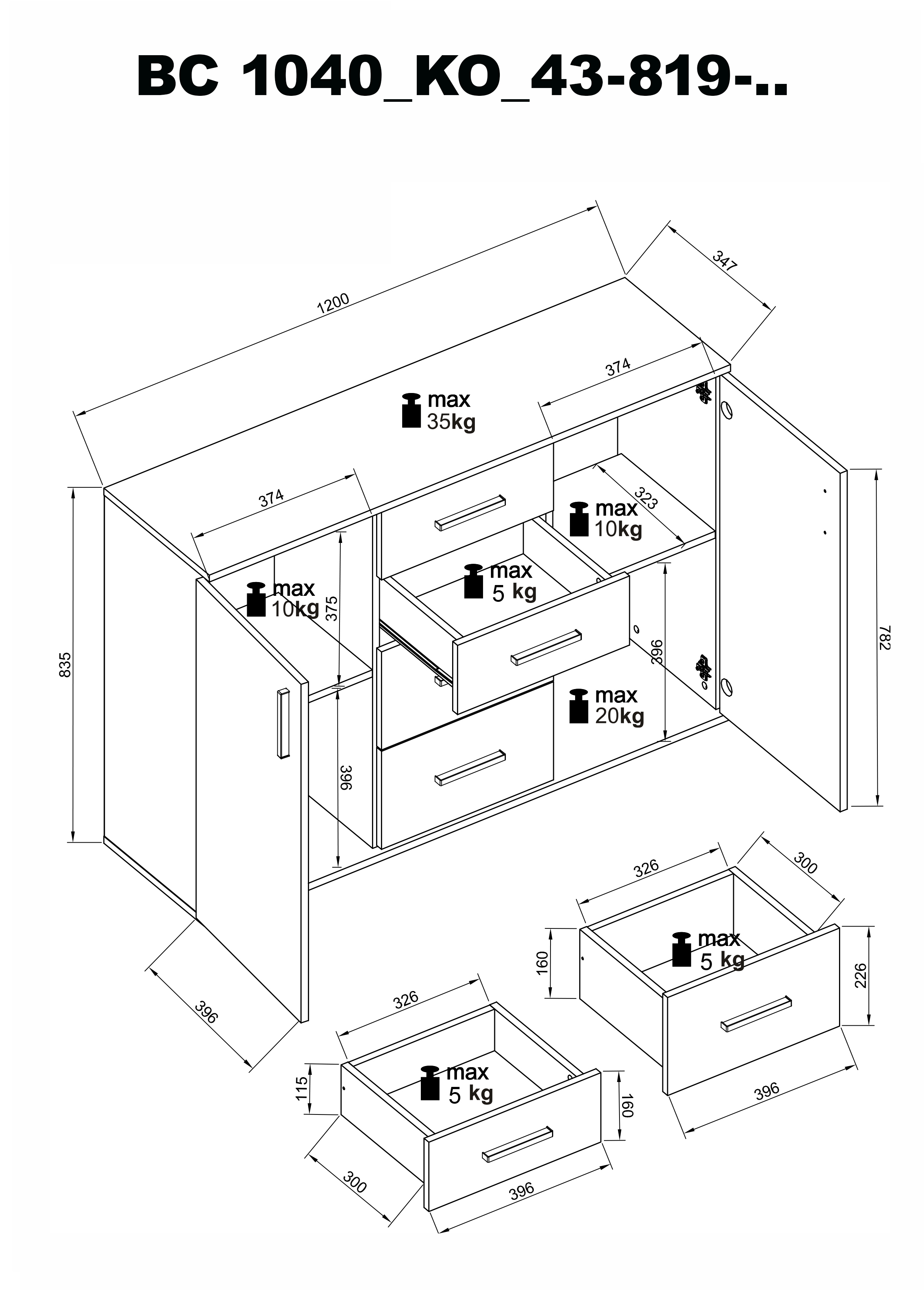 | Ausstattung Kommoden Phono Büro Regal: | Schublade(n), Türe(n) | ||
