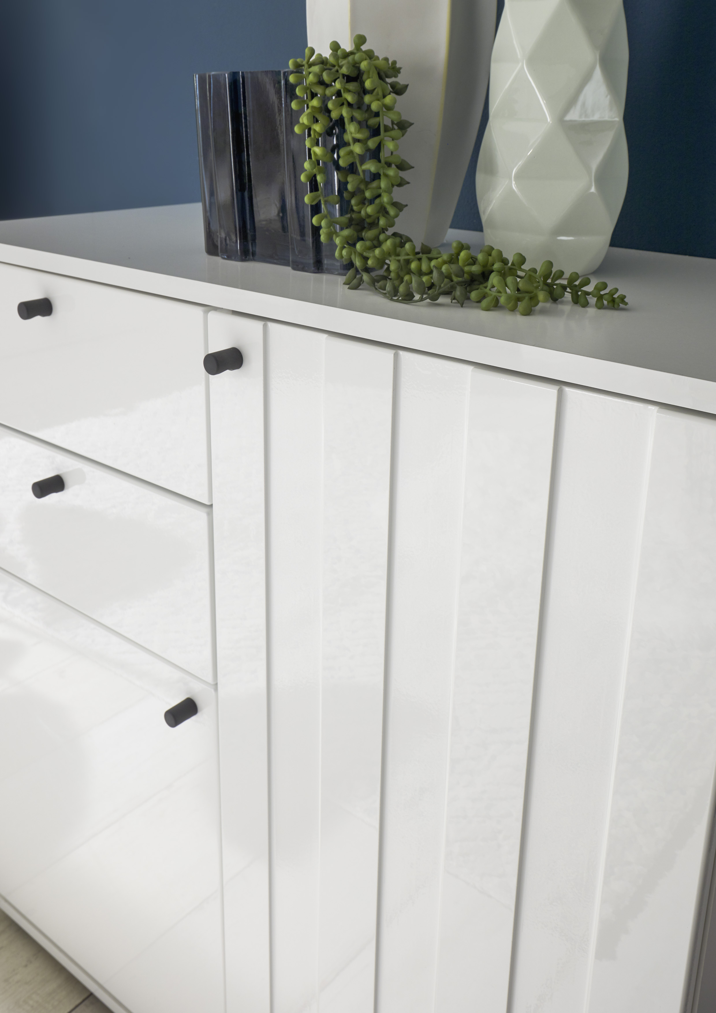 Front: Weiß Hochglanz Tiefzieh / MDF (Mitteldichte Holzfaserplatte)