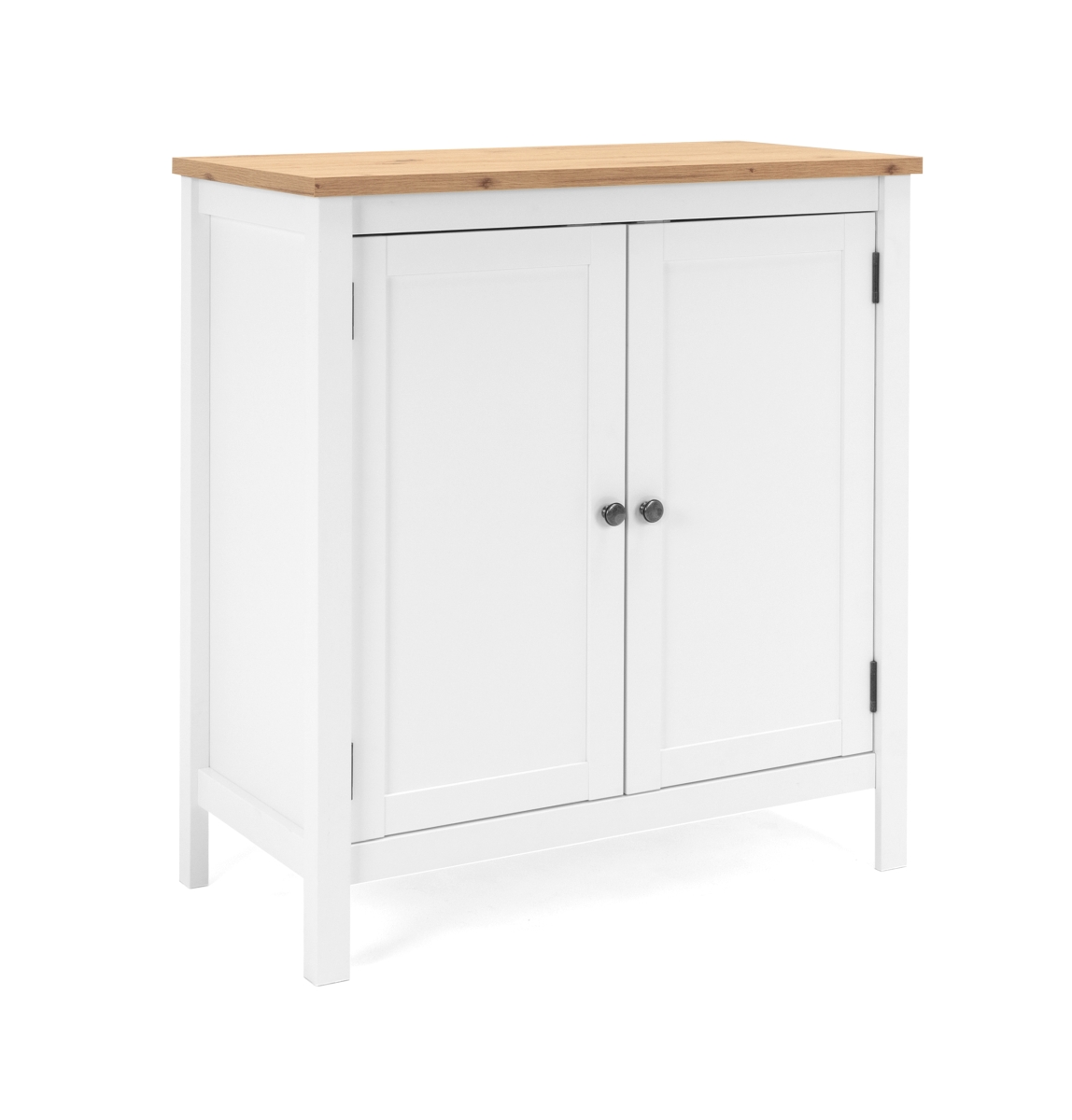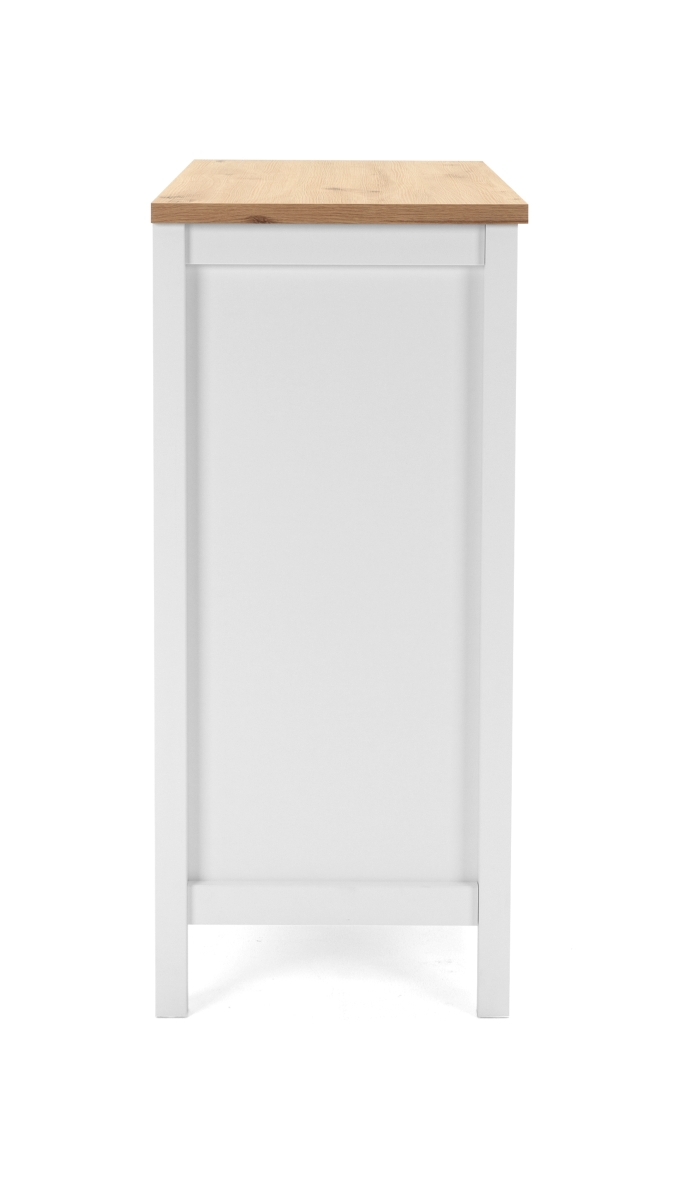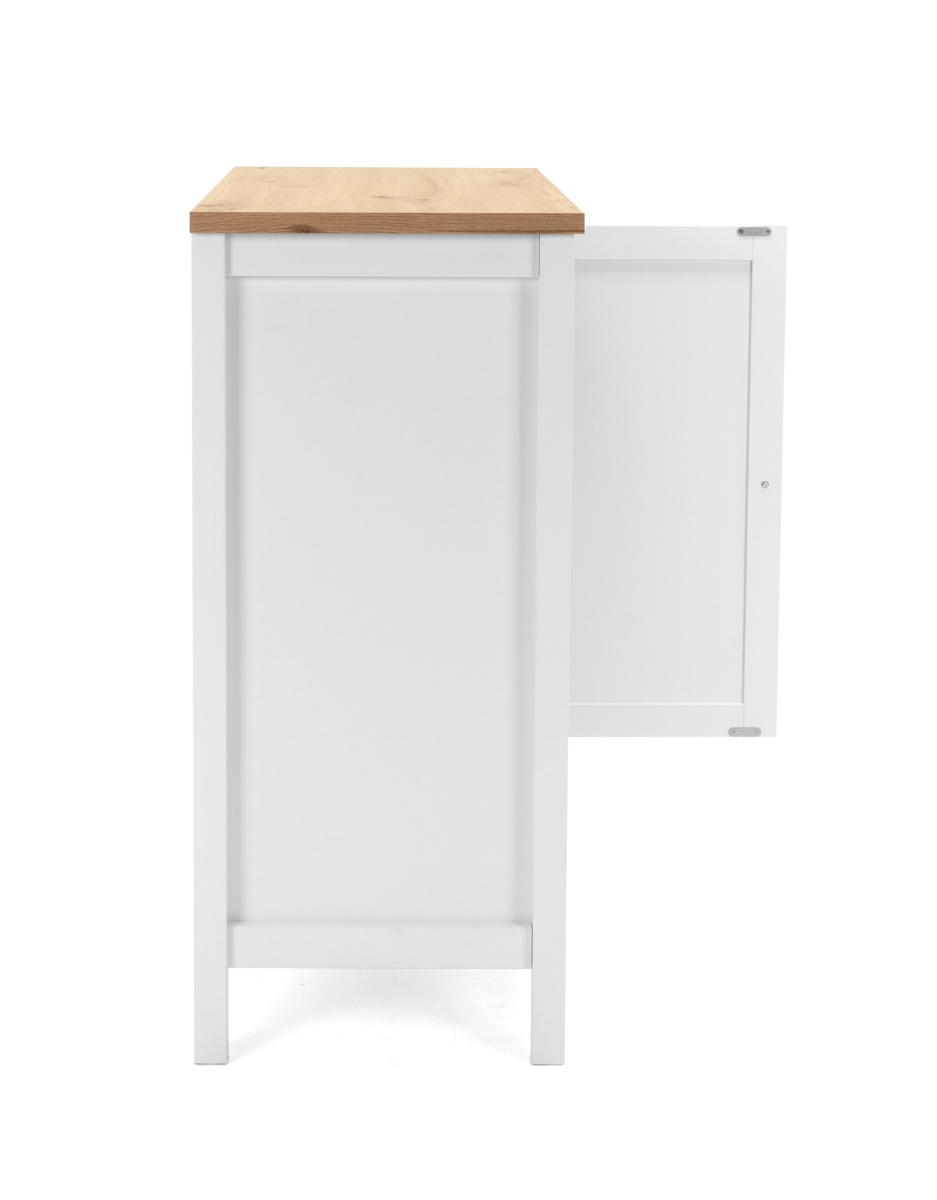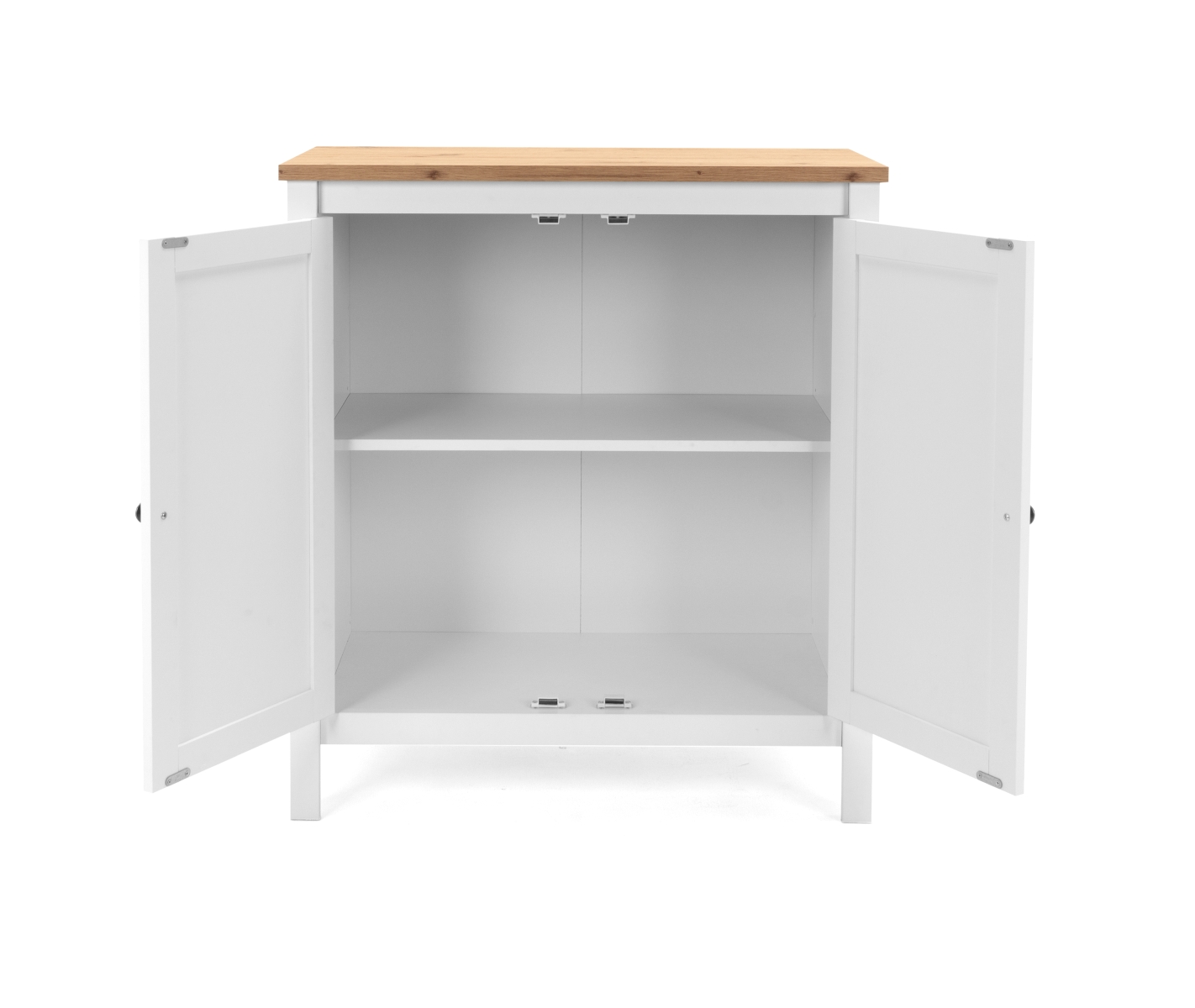 Weiß kombiniert mit einer Oberplatte aus Artisan Eiche Holznachbildung