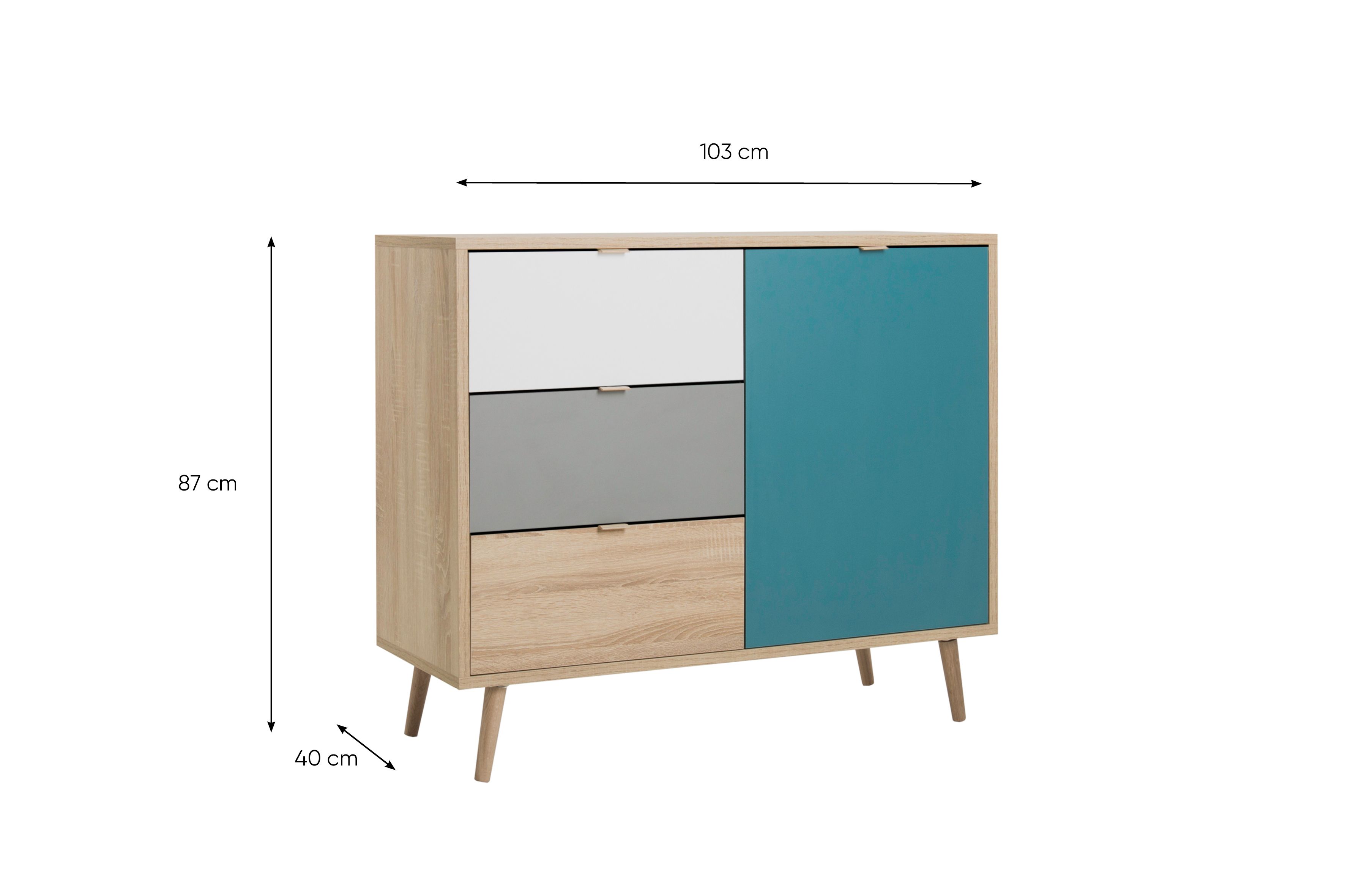 | Farbton: | Eiche Sonoma-Weiß-Petrol-Grau | ||
