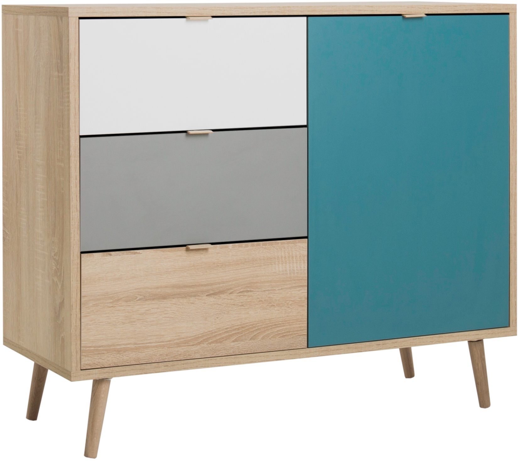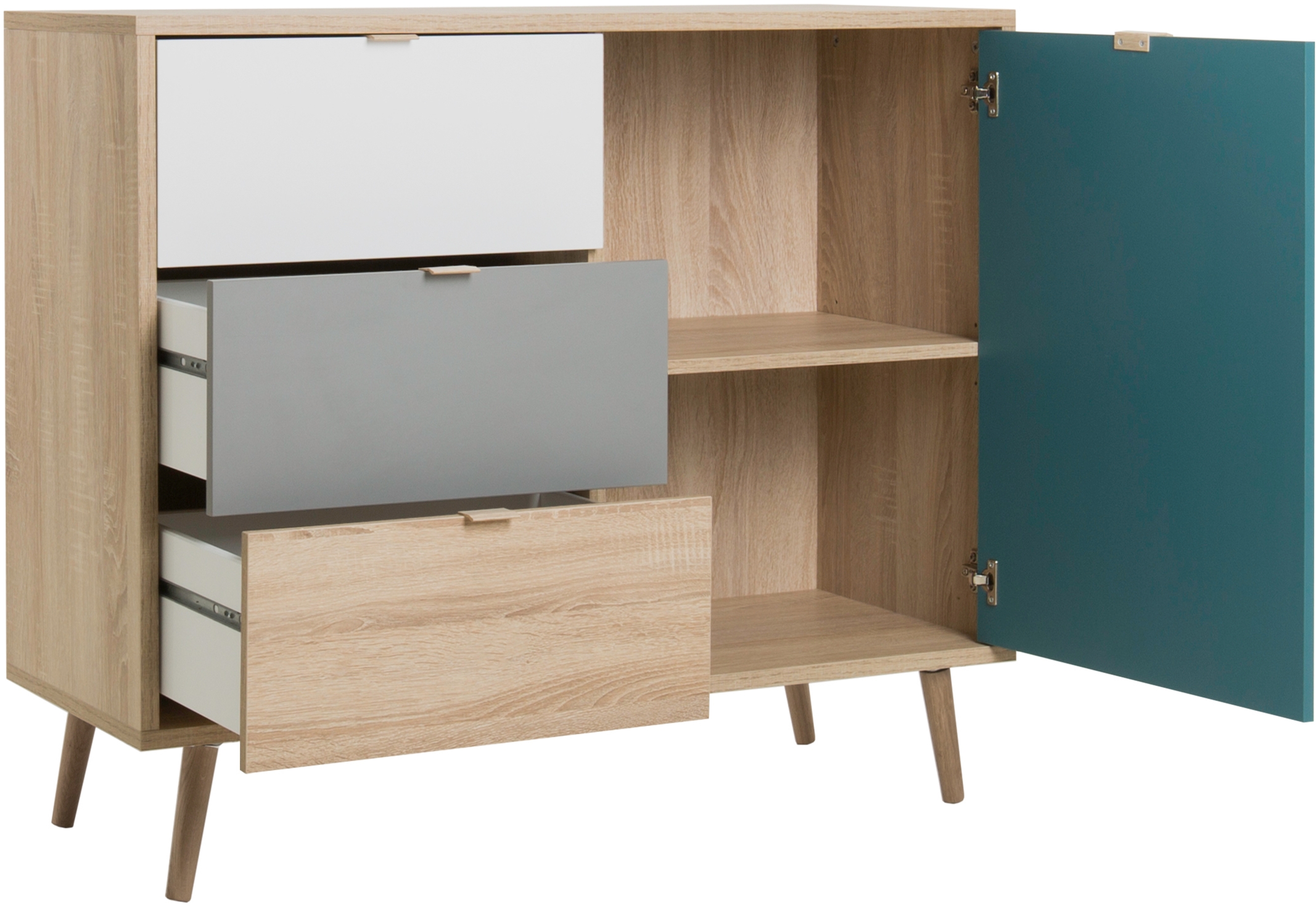 Front: Eiche Sonoma Holznachbildung / Weiß / Petrol / Grau