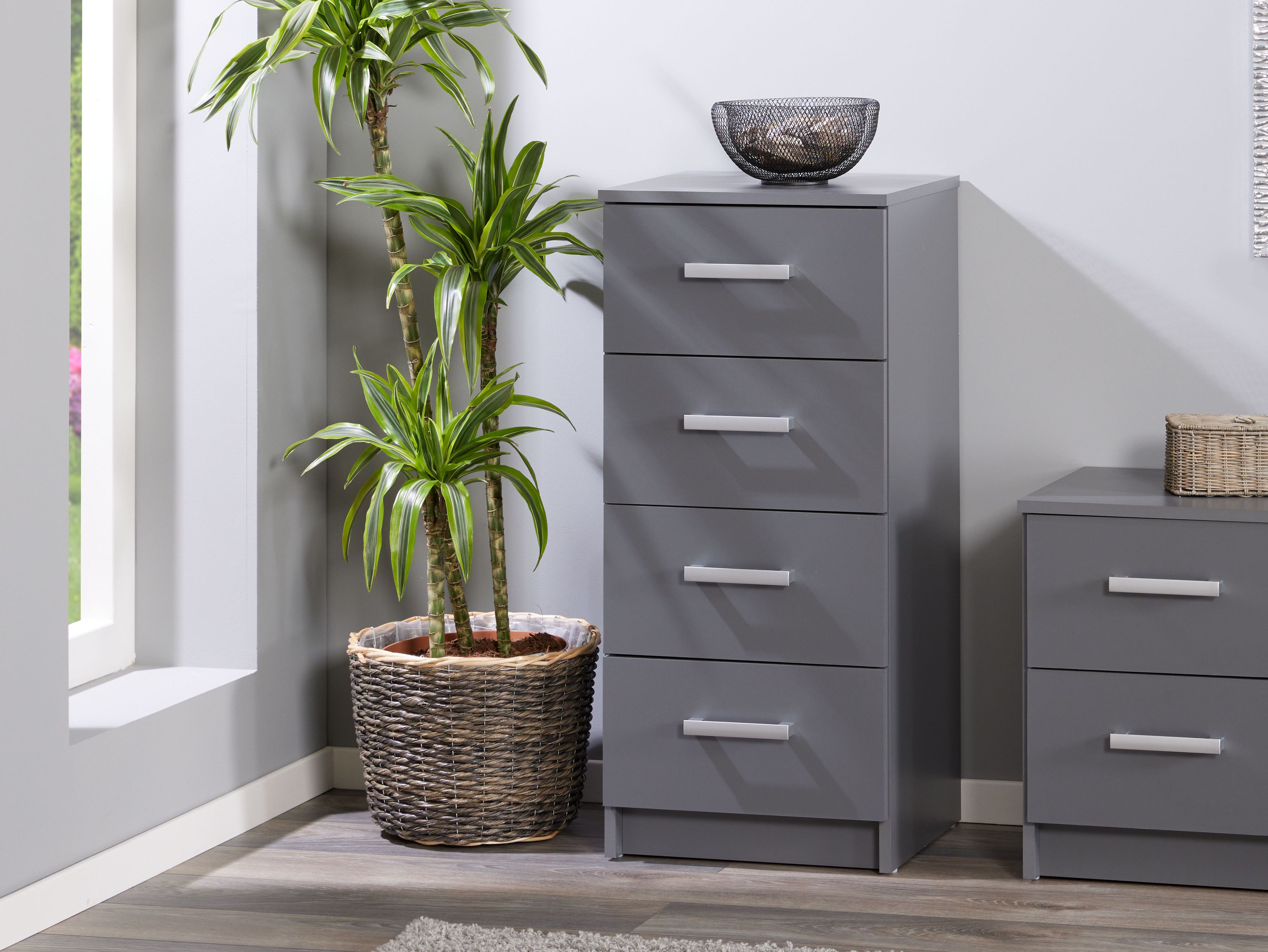 Die robuste Verarbeitung macht diesen Schrank zu einem dauerhaften Begleiter in Ihrem Zuhause. Mit vier Schubladen bietet die Kommode ausreichend Platz, um Ihre liebsten Dinge ordentlich und organisiert zu verstauen.