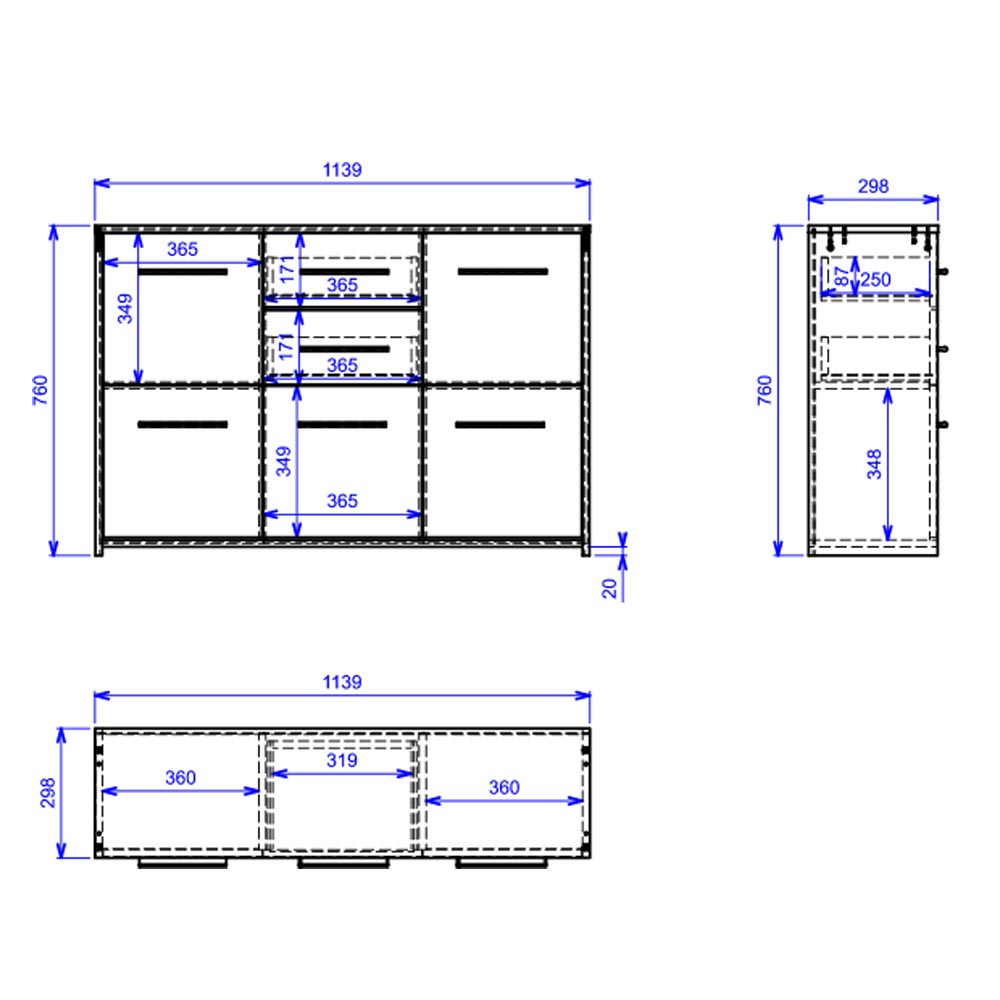 Das Sideboard bietet durch 2 Schubladen auf Metallschienen und insgesamt 5 Türen reichlich Platz, um Ihre Sachen sicher und ordentlich zu verstauen.