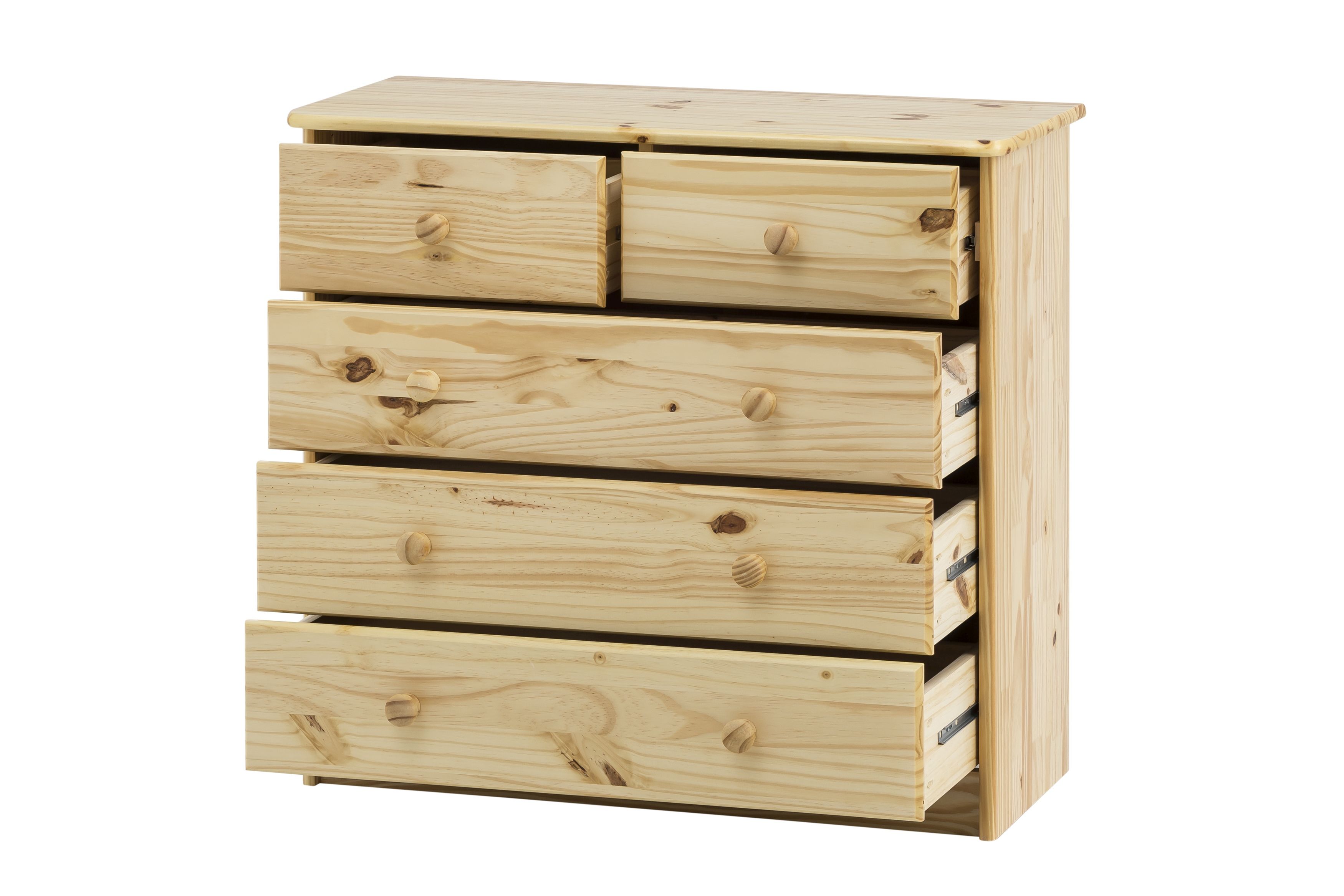2 kleine und 3 große Schubladen mit Metallauszügen