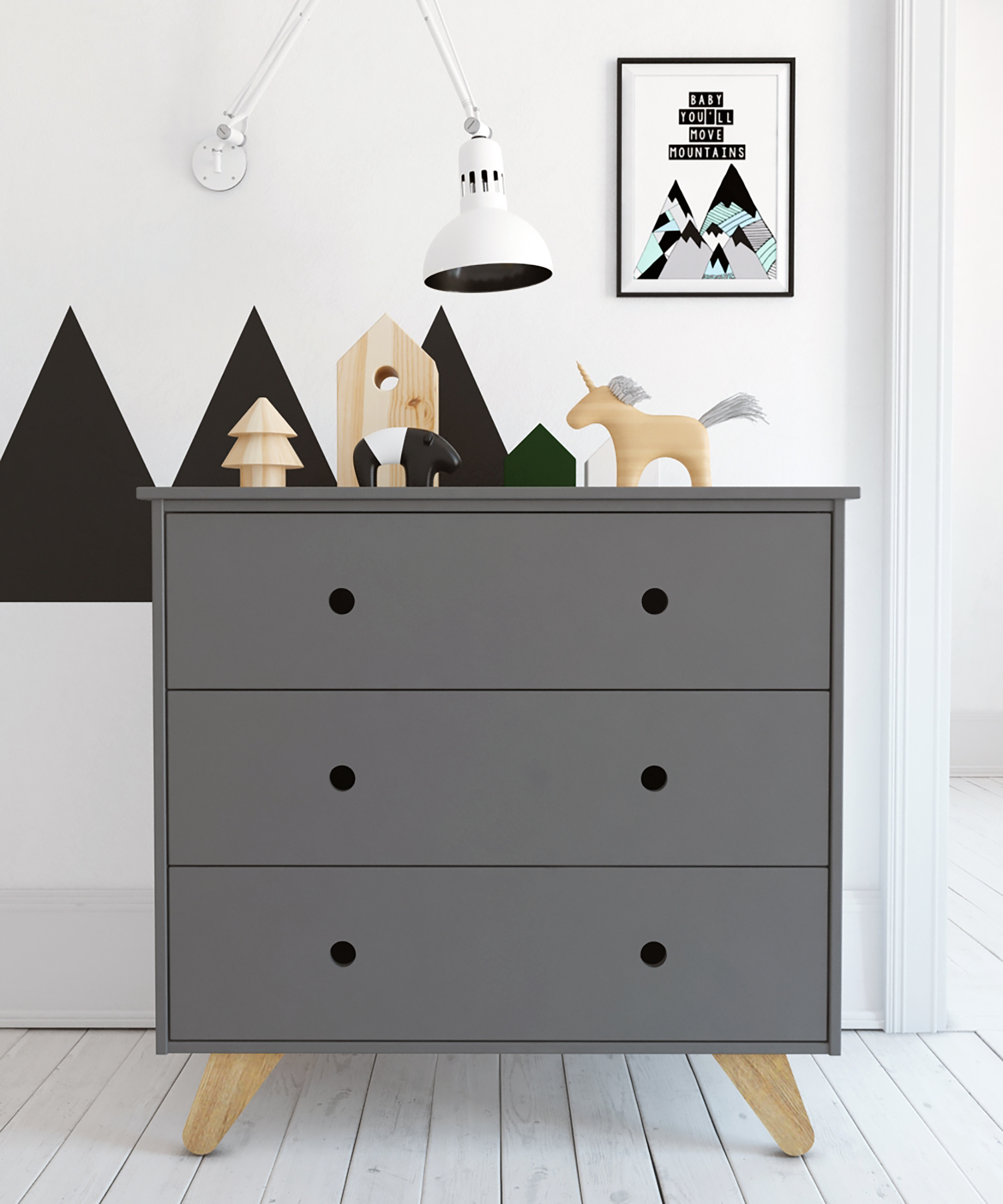 Kommode: MDF (Mitteldichte Holzfaserplatte) grau mit Acryllack lackiert