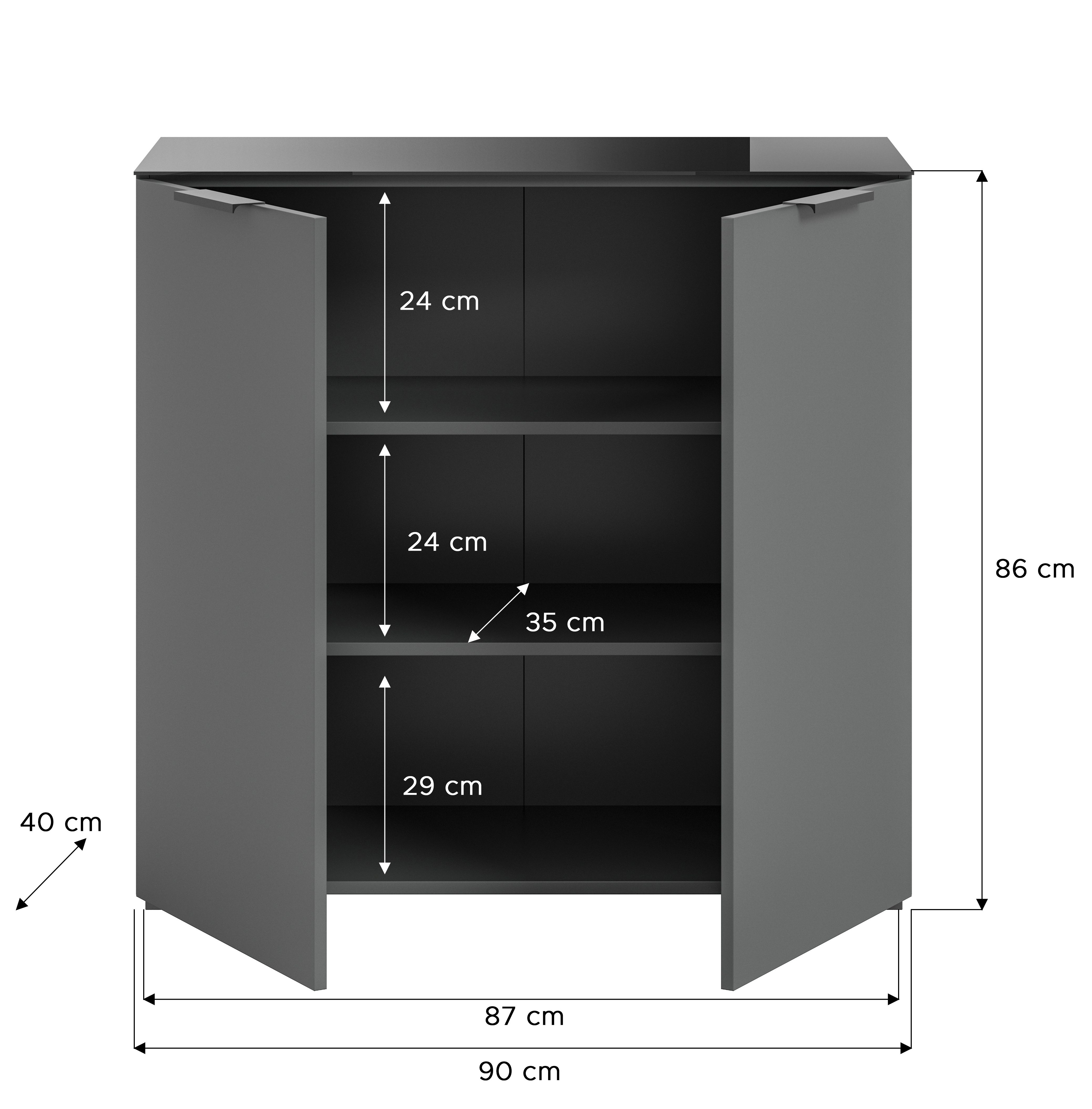 Bringe mit unserer eleganten Kommode in Anthrazit-Nachbildung mit Glasabsetzung Stil und Organisation in dein Zuhause. Mit den großzügigen Maßen bietet sie nicht nur ausreichend Stauraum für deine persönlichen Gegenstände, sondern verleiht auch deinem Raum eine moderne Note. Erlebe Funktionalität und Ästhetik vereint in dieser hochwertigen Kommode für dein Zuhause.