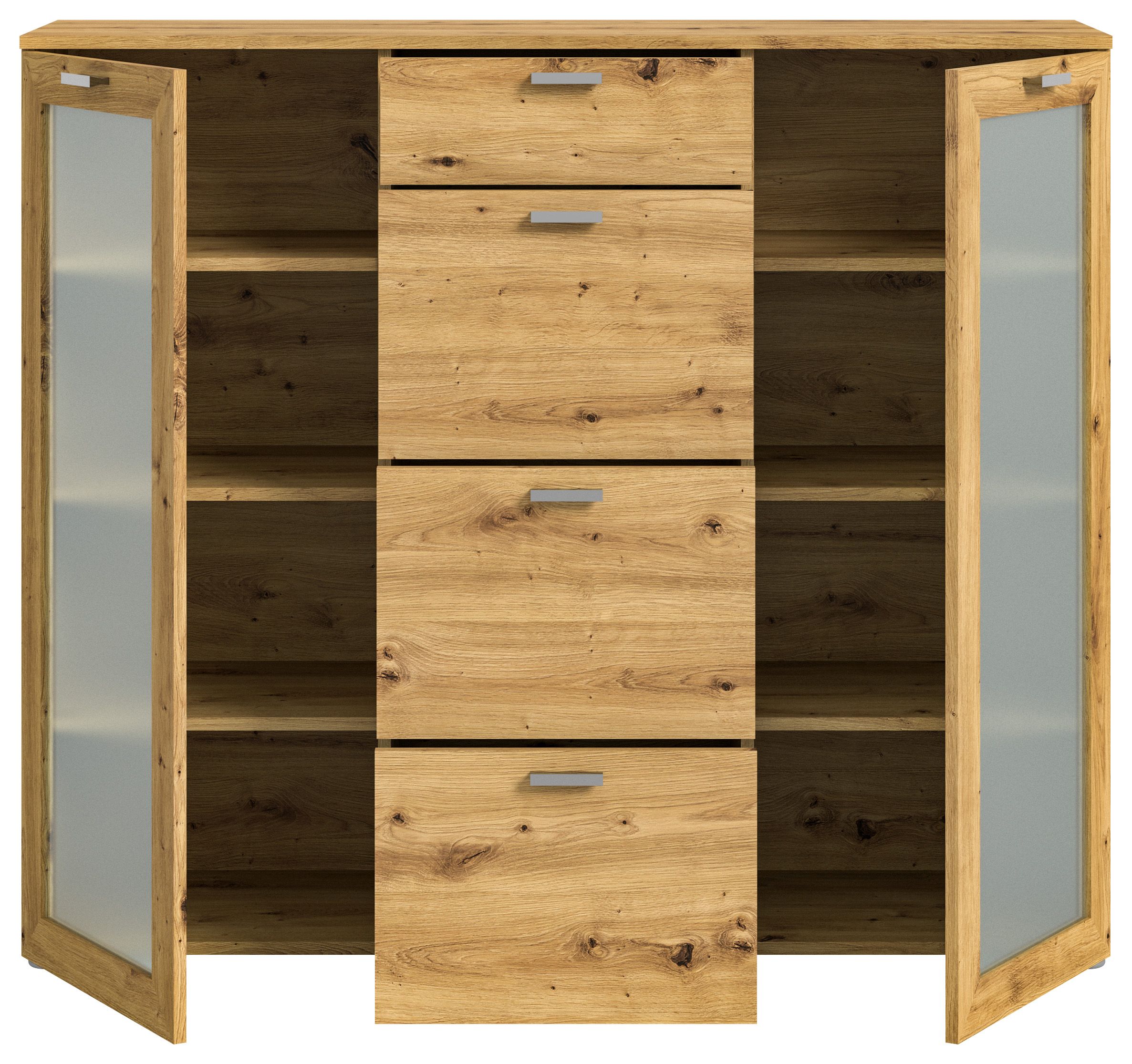 - Design/Stil: Die Kommode in Artisan Eiche Nachbildung besticht durch ein modernes und zeitloses Design mit warmen Holzfarben und natürlicher Maserung, das sich nahtlos in verschiedene Einrichtungsstile einfügt.