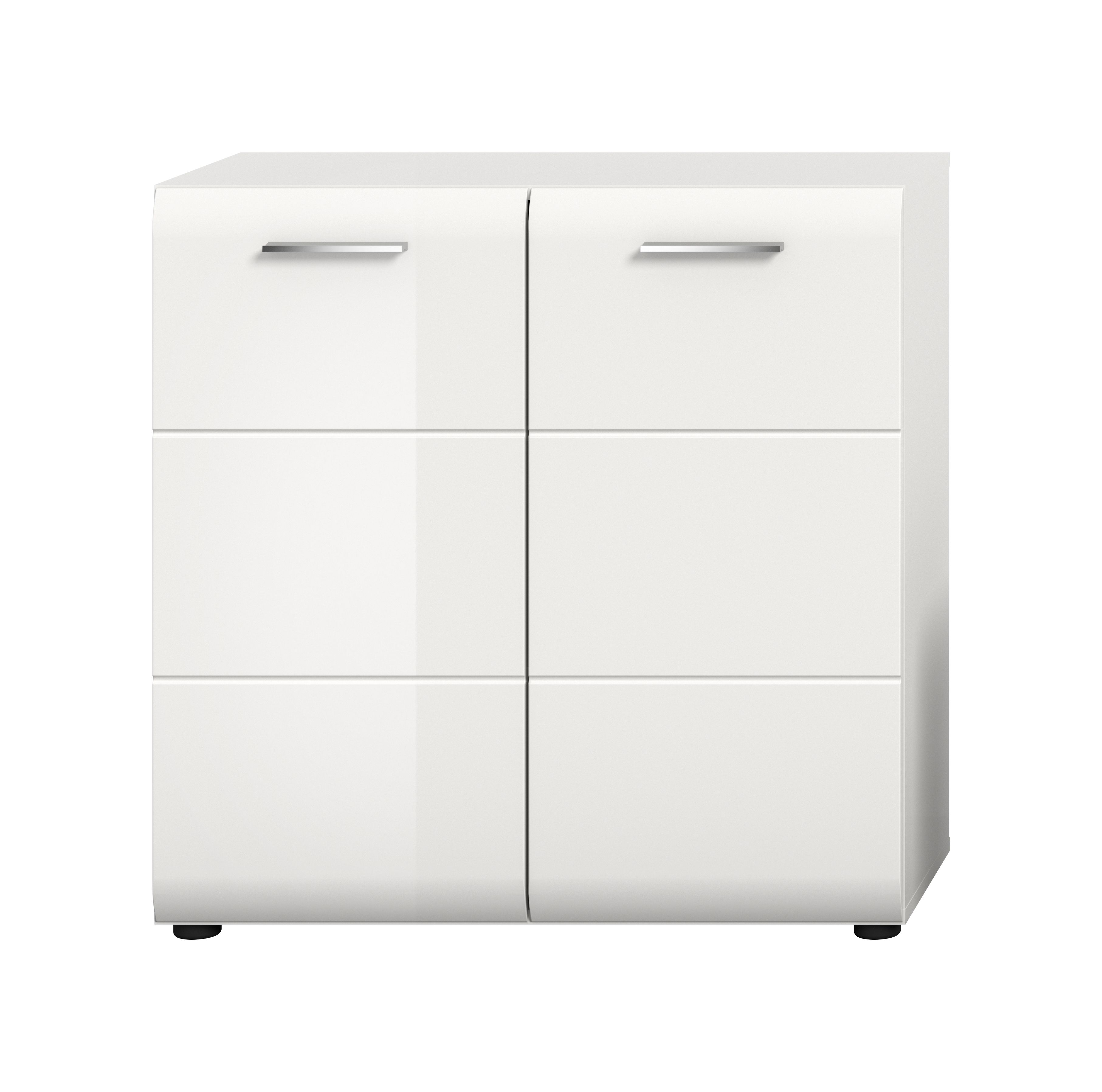 Schaffen Sie Ordnung und Stil in Ihrem Wohnraum mit unserer eleganten Kommode! Mit den Maßen von 80 x 81 x 34 cm verfügt sie über zwei Türen, zwei herausnehmbare, höhenverstellbare Einlegeböden und drei Fächer für eine individuelle Anordnung. Die hochwertige MDF-Front mit Rillenfräsung sorgt nicht nur für eine ansprechende Optik, sondern bietet auch die nötige Langlebigkeit. Ideal für Flur, Schlafzimmer oder Wohnzimmer!