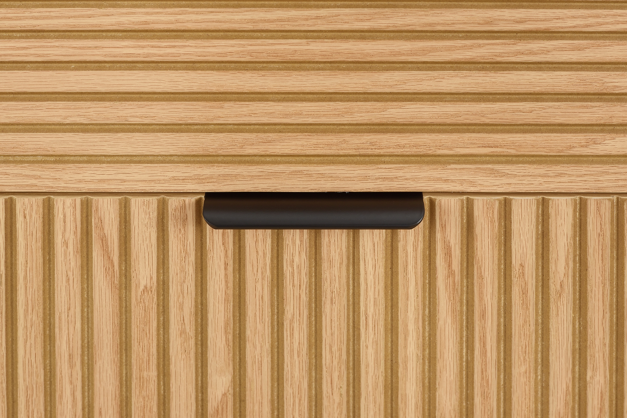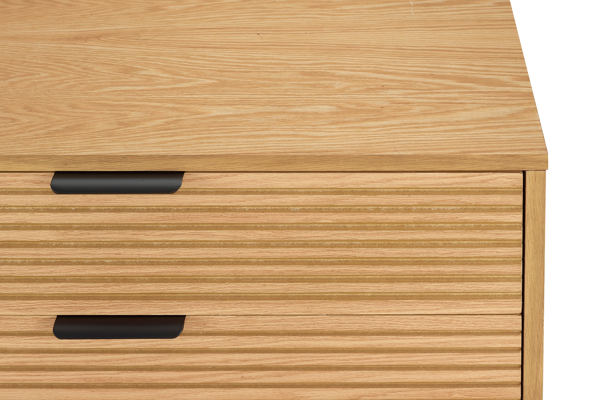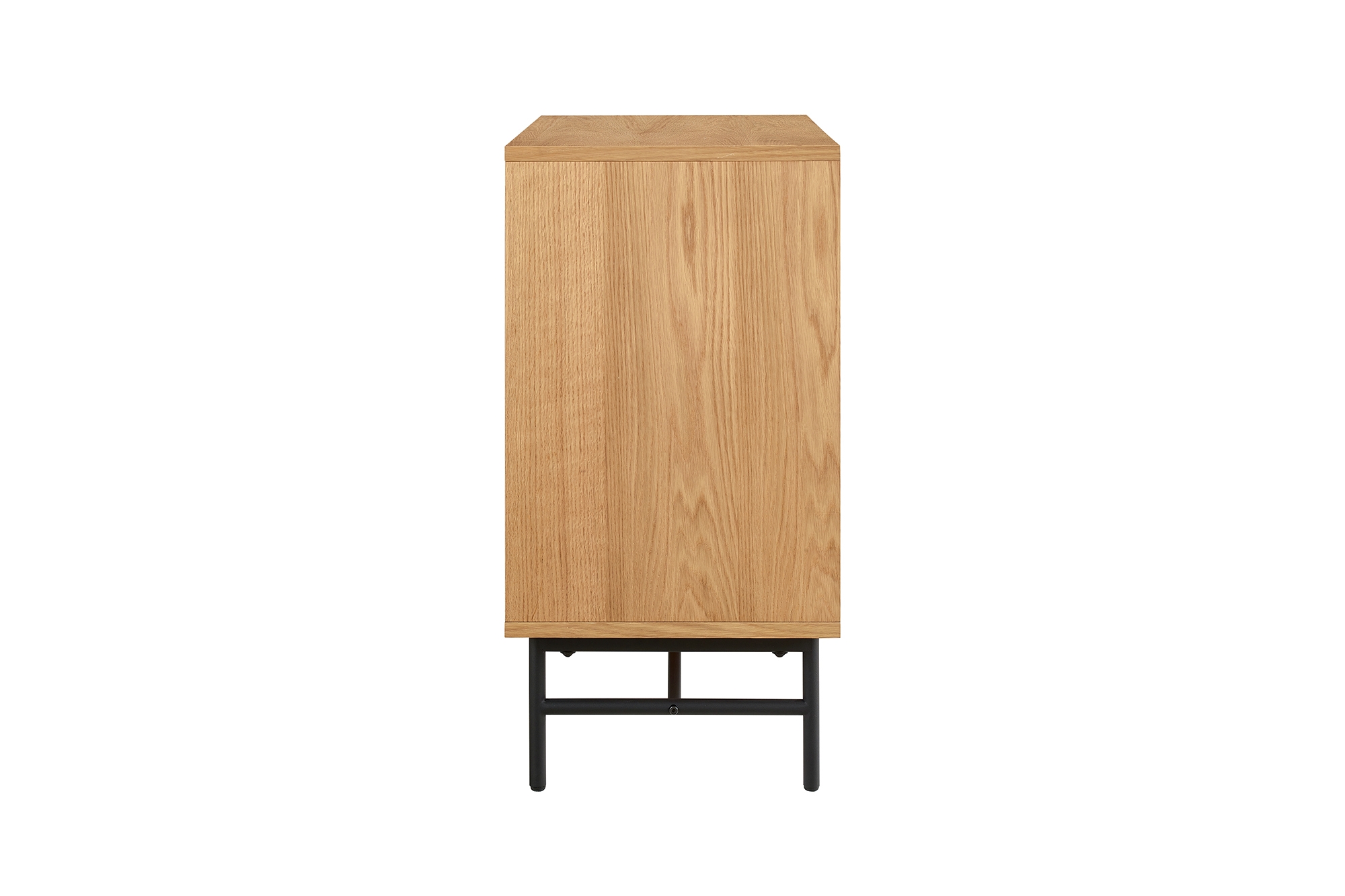 Helles Eiche Echtholzfurnier und hohe, schwarz lackierte Füße sorgen nicht nur für moderne Kontraste, sondern bringen auch den angesagten Scandi Style ins Eigenheim. Die kratzfeste PU-Lackierung auf dem Korpus des Möbels macht dieses besonders widerstandsfähig und langlebig, so dass Sie lange Freude an Ihrem Möbelstück haben. Das Gestell mit den filigranen Beinen sorgt für luftig-leichte Optik und einen modernen Loft-Charakter. Die Paneel-Optik des Eichenfurniers sorgt optisch für das gewisse Etwas. In dieser Kommode bieten 3 Schubladen geschlossenen Stauraum – für spielend leicht mehr Ordnung im Wohnbereich.