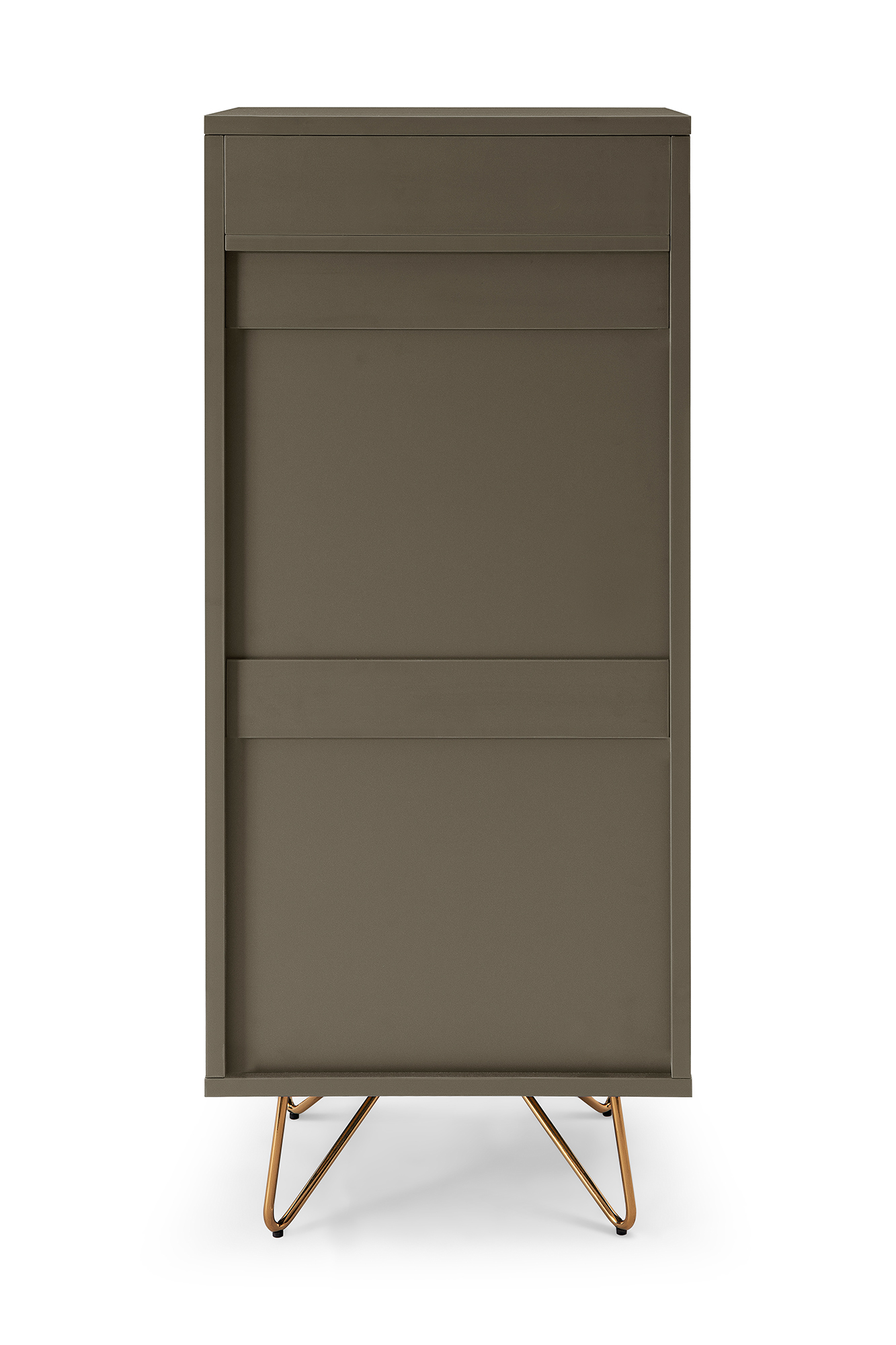 Korpus und Front: MDF (Mitteldichte Holzfaserplatte) in Grau matt lackiert