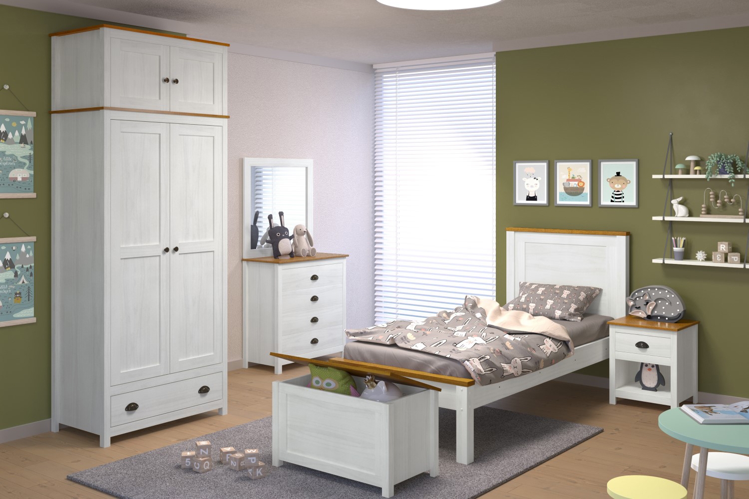 Diese funktionale Kommode im zeitlosen Landhausstil bietet mit 4 Schubladen mit Metallauszügen jede Menge Stauraum. So schaffen Sie spielend leicht Ordnung in Wohn- und Schlafzimmer oder dem Eingangsbereich. Die rustikale weiße Lackierung des Korpus verleiht der Kommode einen besonders charakteristischen Look. Gefertigt aus massivem Kiefernholz ist die Kommode besonders robust. Optisch abgerundet wird das Kastenmöbel mit einer braunen Deckplatte und messingfarbenen Muschelgriffen. Wer den urig gemütlichen Landhausstil mag und sein Hab und gut gerne gut verstaut weiß, der trifft mit dieser praktischen Kommode die richtige Wahl.