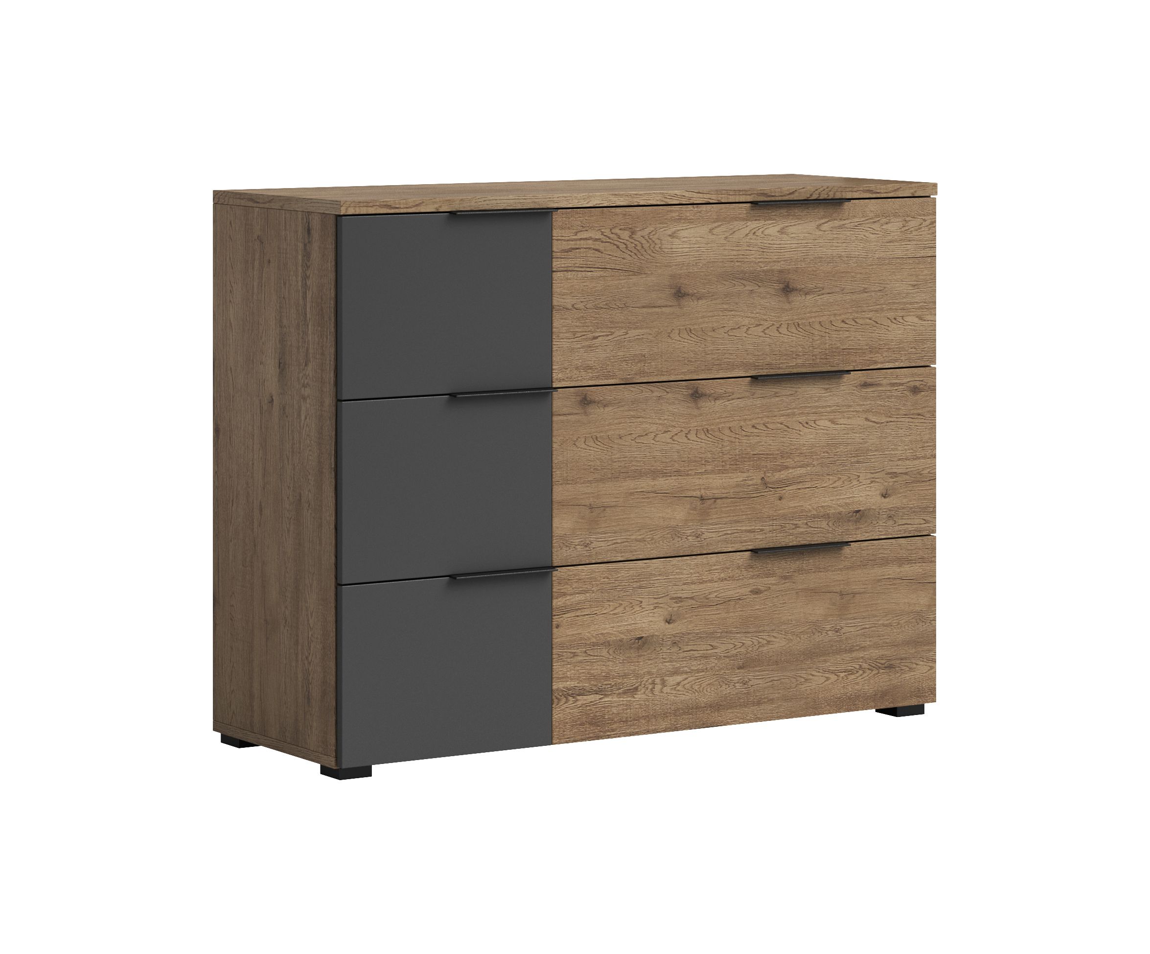 LINEA Moderne Schlafzimmer Kommode in Bartex Eiche Optik, Graphit - stilvolles & ausdrucksstarkes Sideboard für Ihr Schlafzimmer - 120 x 89 x 40 cm (B/H/T)