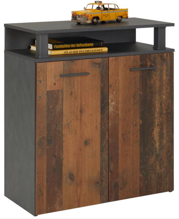 - Viel Stauraum durch zwei Türen, zwei Einlegeböden und offenes Fach