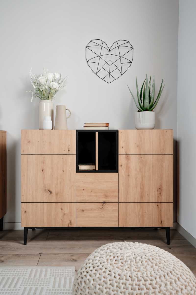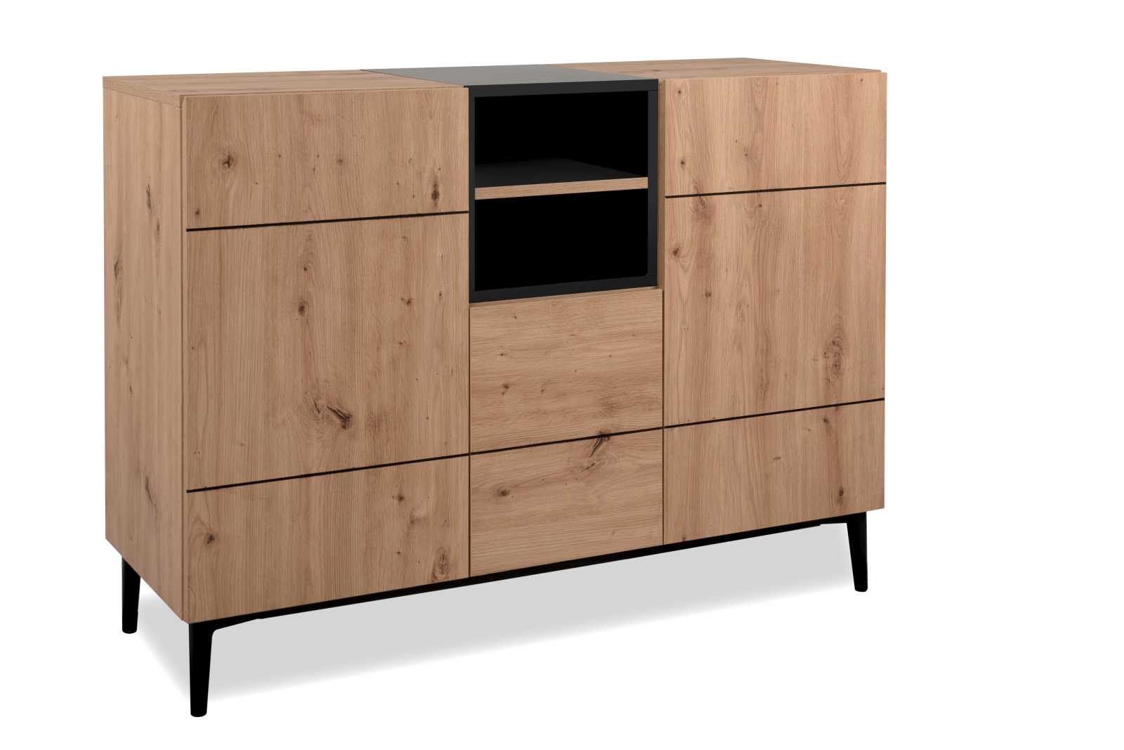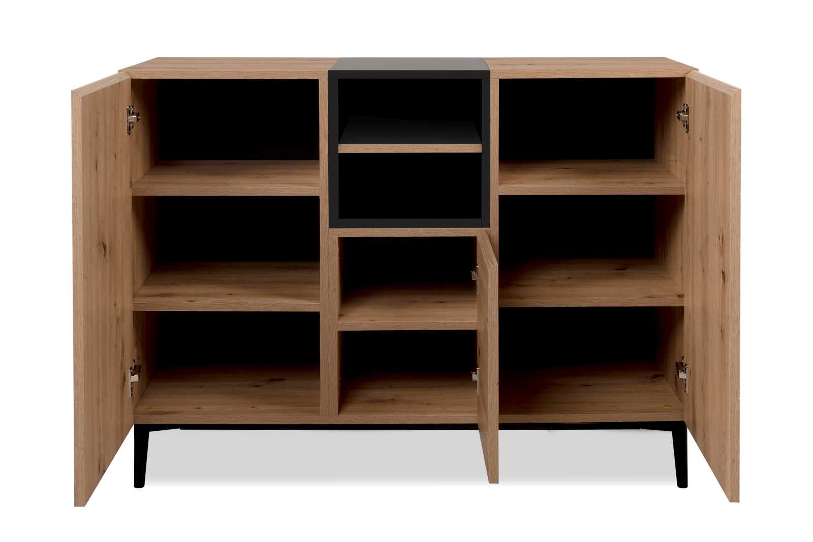 - 2 große Türen, 1 kleine Tür und 1 offenes Fach mit Unterteilung