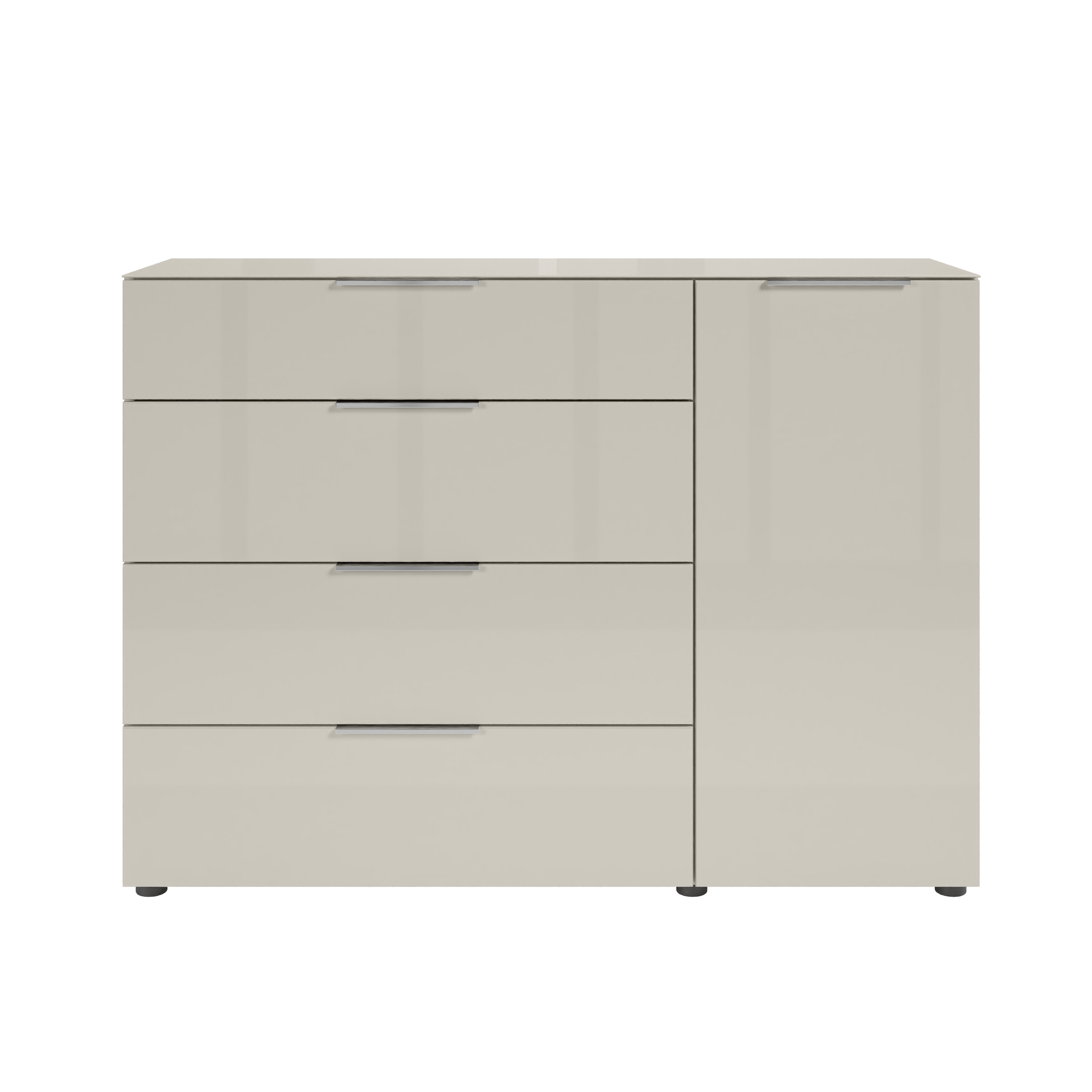 Front: Kaschmir, Spanplatte Melaminbeschichtung, Glasfronten glatt