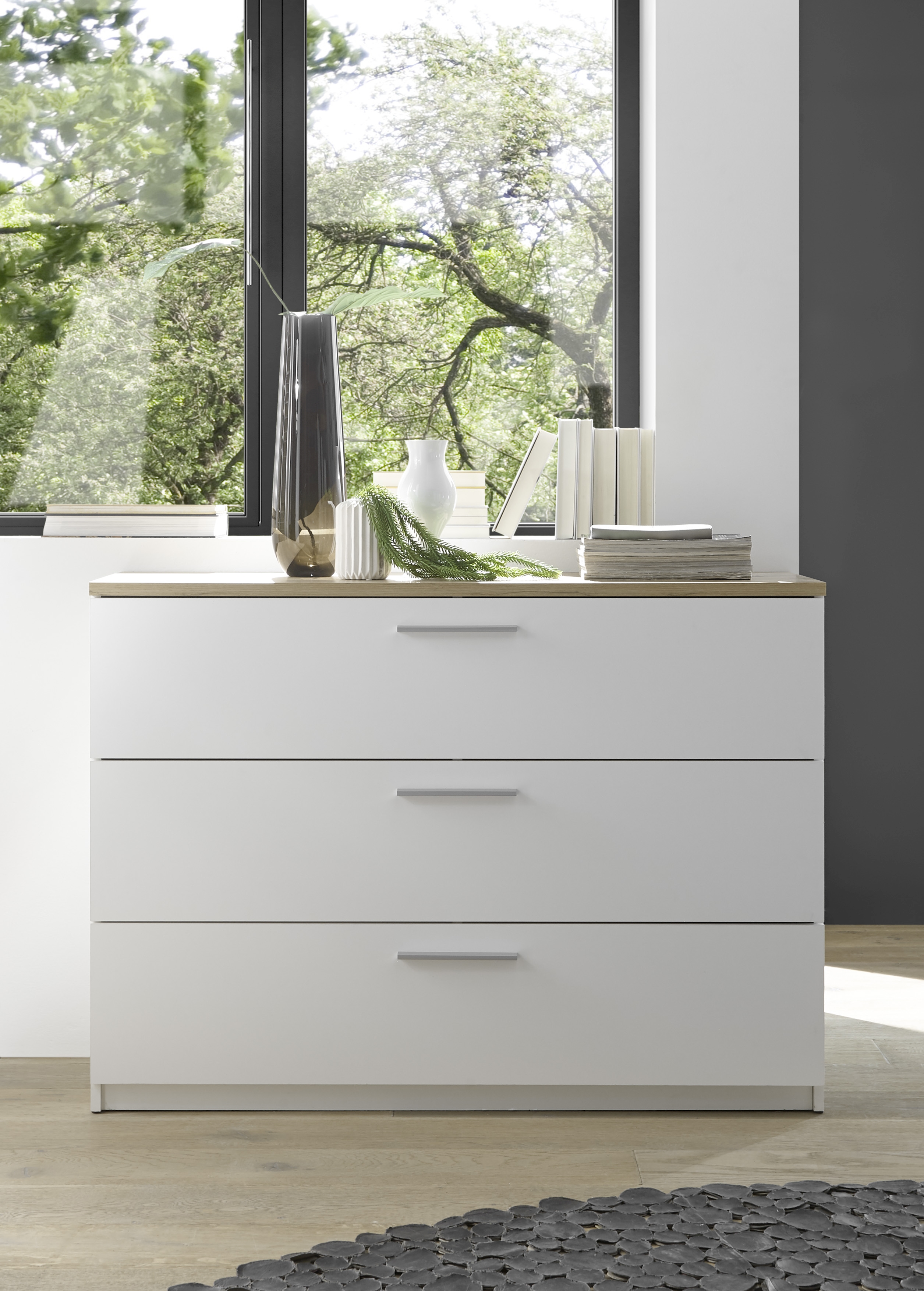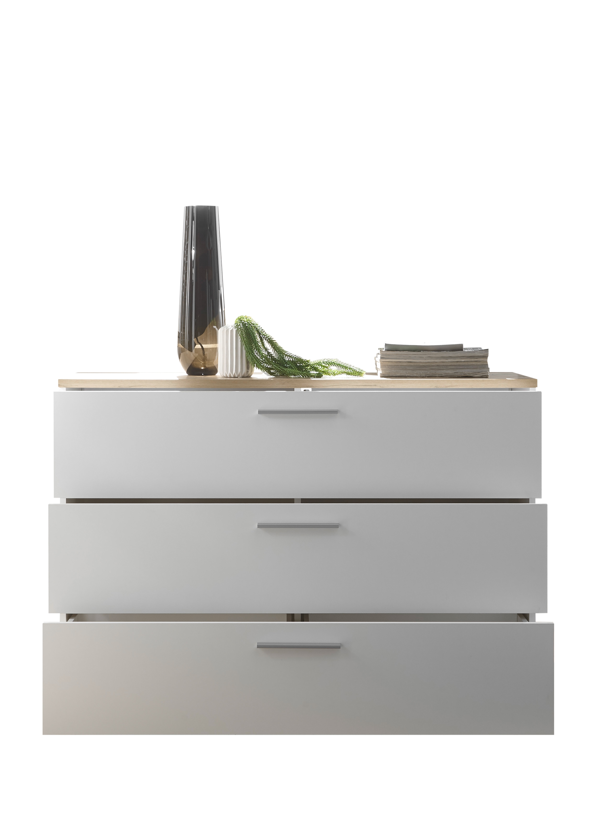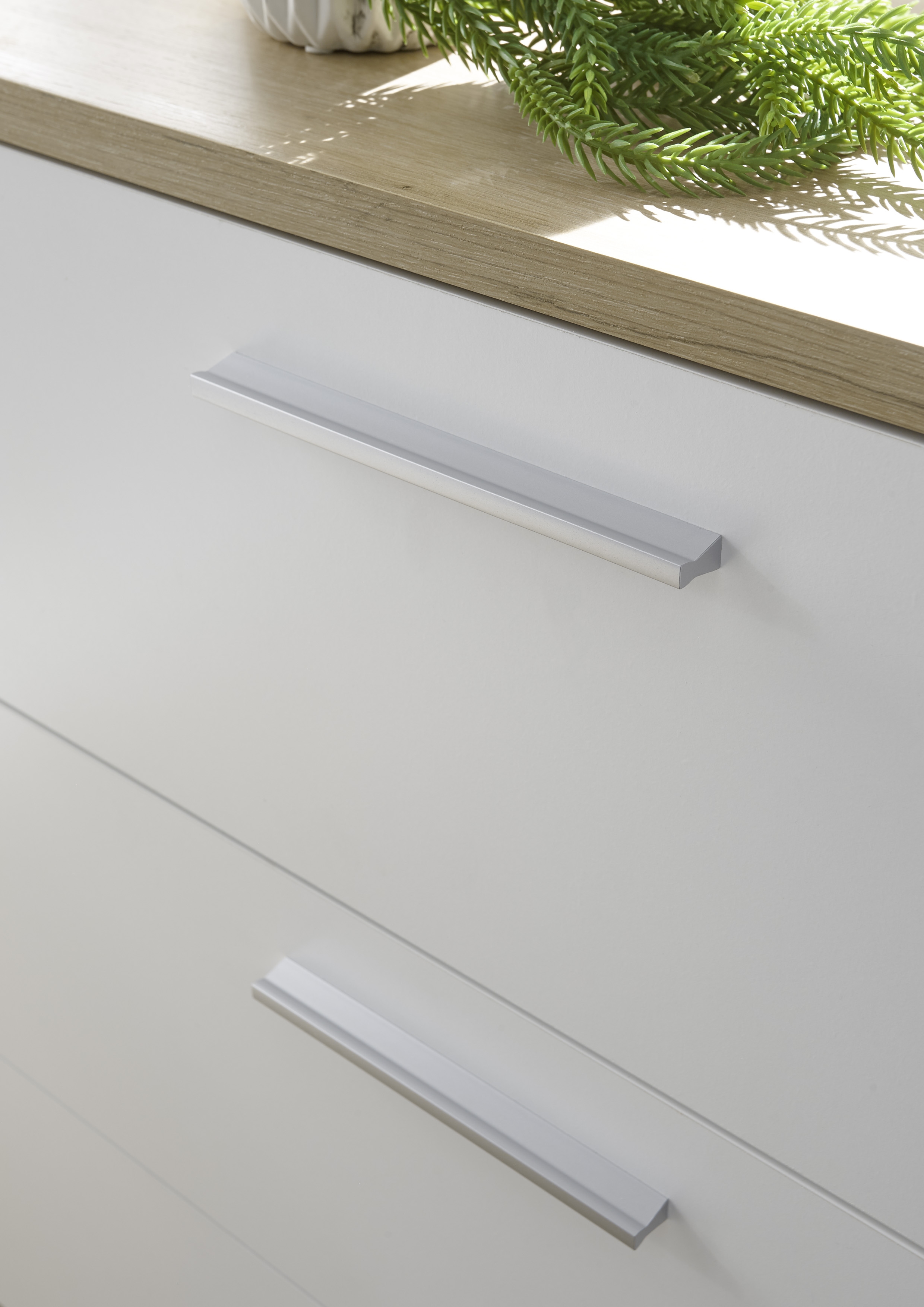 Weiß kombiniert mit einer Deckplatte in Artisan Eiche Holznachbildung