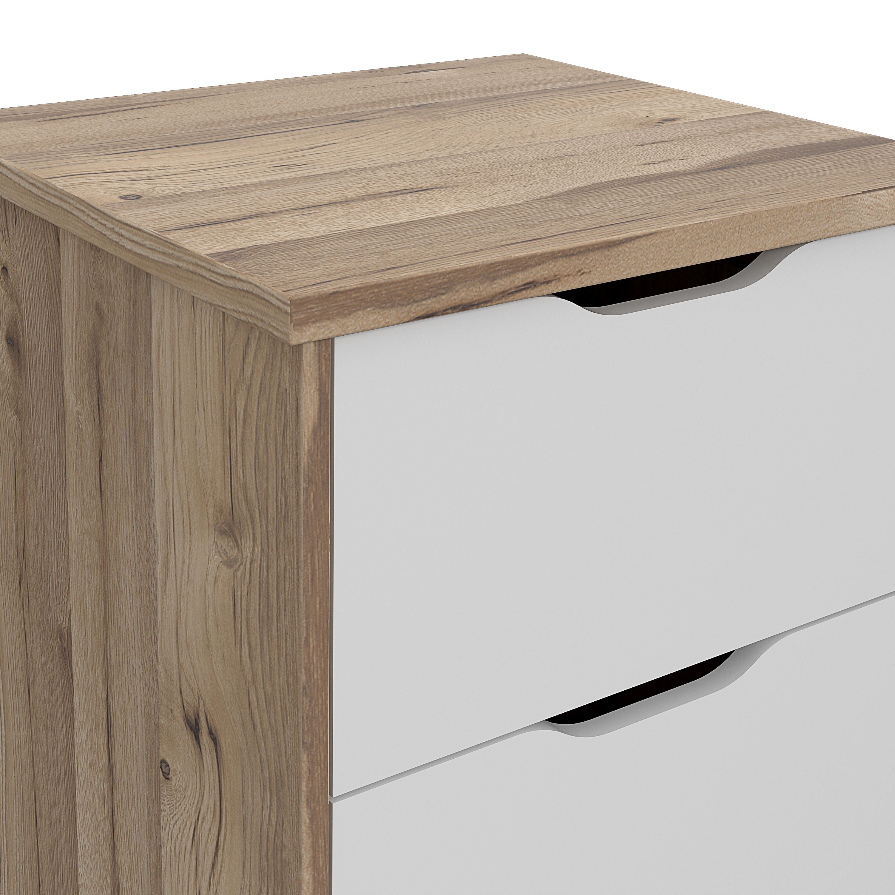 Planked Eiche Holznachbildung kombiniert mit Schubkastenfronten in Weiß