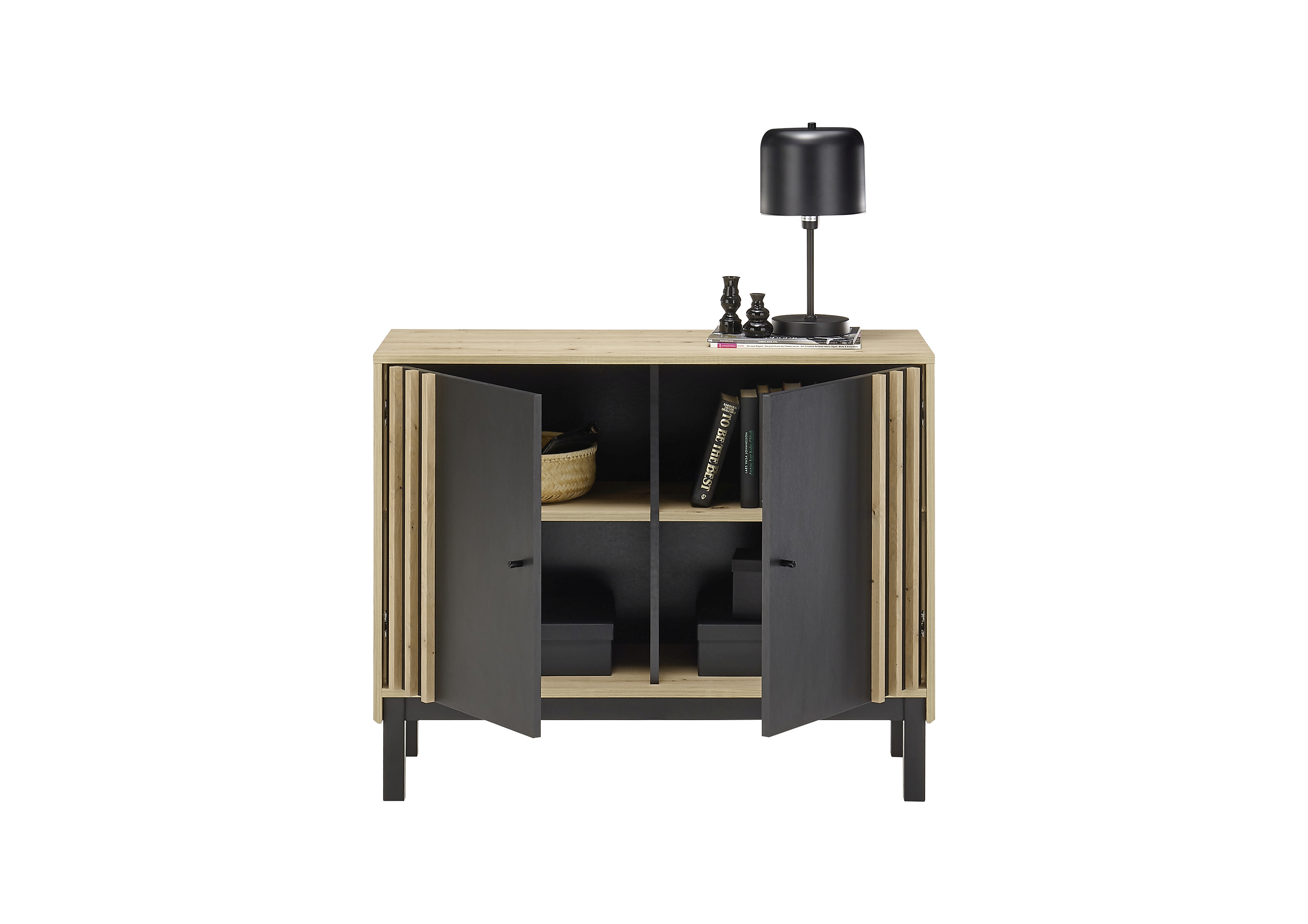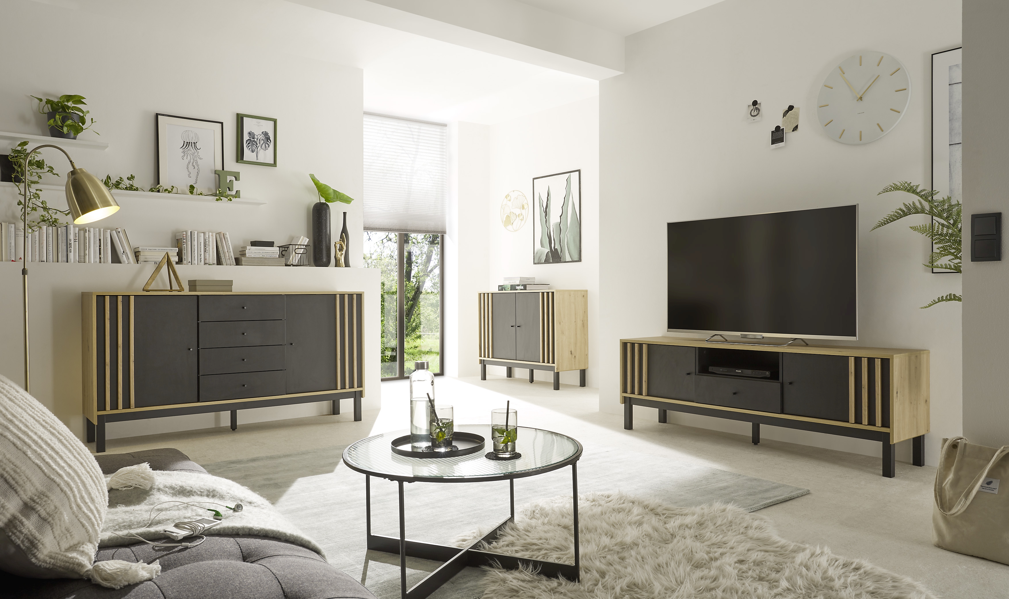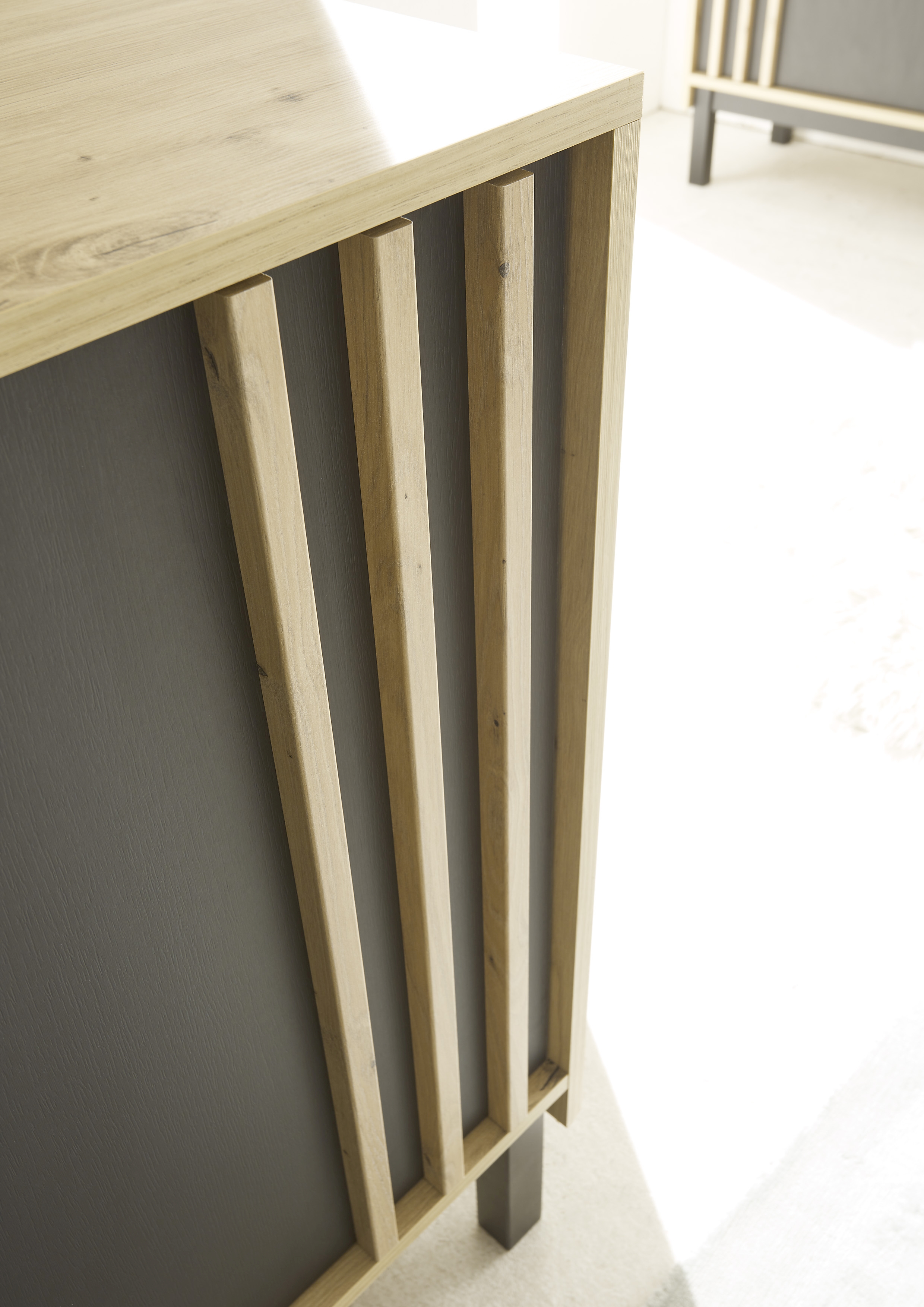 Front: Schwarz kombiniert mit Absetzungen in Artisan Holznachbildung